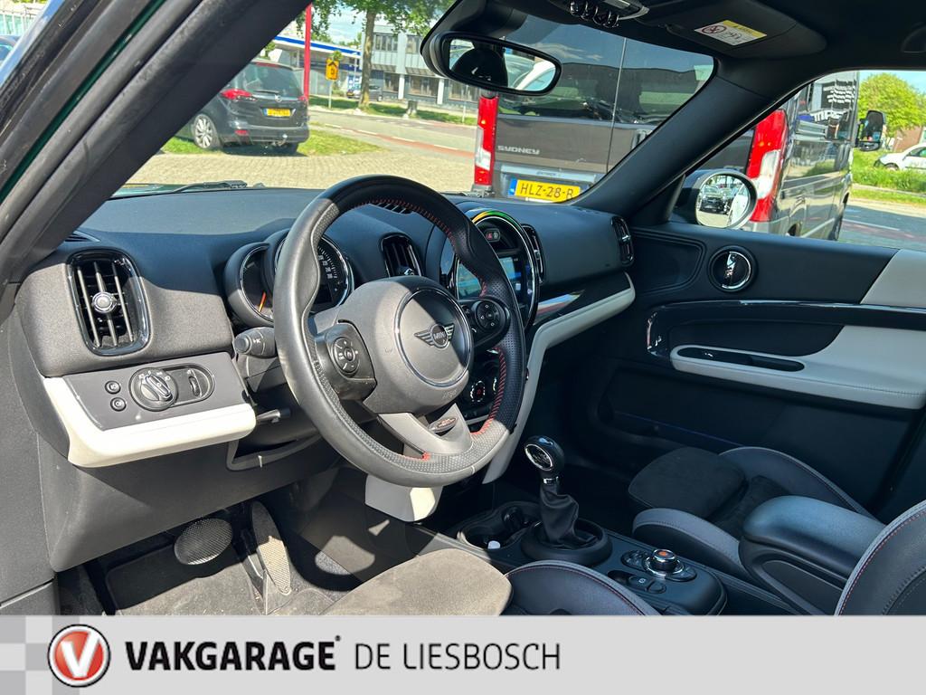 "Lichtmetalen velgen 18""", Achterbank in delen neerklapbaar, Achteropkomend verkeer waarschuwing, Achterspoiler, Afwijkende dakkleur, Airbag(s) hoofd achter, Airbag(s) hoofd voor, Airbag(s) side voor, Airbag bestuurder, Airbag passagier, Airco automatisch, Anti Blokkeer Systeem (ABS), Armsteun voor, Audio installatie, Audio installatie premium, Autotelefoonvoorbereiding met Bluetooth, Bandenspanningscontrolesysteem, Bestuurdersstoel in hoogte verstelbaar, Boordcomputer, Buitenspiegels elektrisch verstelbaar, Buitenspiegels in carrosseriekleur, Buitenspiegels verwarmbaar, Centrale deurvergrendeling met afstandsbediening, Cruise control, DAB-ontvanger, Dakrails, Dakspoiler, Dimlichten automatisch, Electronic Brake Distribution (EBD), Electronic Stability Program (ESP), Elektrische ramen voor, Hill hold-functie, John Cooper Works Package, Keyless entry, Koplampen adaptief, LED achterlichten, LED koplampen, LED mistlampen, Lederen bekleding, Lederen stuurwiel, Metallic lak, Multimedia-voorbereiding, Navigatie full map, Oplaadmogelijkheid, Parkeersensor achter, Parkeersensor voor, Pianolak interieur afwerking, Regensensor, Ruitensproeiers verwarmbaar, Sportstuur, Startblokkering, Stof/kunstlederen bekleding, Stuurwiel multifunctioneel, Telefoonintegratie premium, Vermoeidheids herkenning, Verwarmde voorstoelen, Volledig digitaal instrumentenpaneel