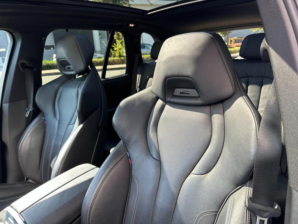 "Lichtmetalen velgen 5-spaaks 21""", Accident Avoidance System, Achterbank in delen neerklapbaar, Achterbank verwarmd, Achteropkomend verkeer waarschuwing, Achterruit apart te openen, Achteruitrij assistent, Achteruitrijcamera, Adaptief Demping Systeem (ADS), Afdaal assistent, Airbag(s) hoofd achter, Airbag(s) hoofd voor, Airbag(s) knie, Airbag(s) side voor, Airbag bestuurder, Airbag passagier, Airco automatisch, Airco separaat achter, Alarm klasse 3, Aluminium delen exterieur, Aluminium interieur afwerking, Anti Blokkeer Systeem (ABS), Armsteun achter, Armsteun voor, Audio installatie, Autotelefoonvoorbereiding met Bluetooth, Bandenspanningscontrolesysteem, Binnenspiegel automatisch dimmend, Boordcomputer, Bots waarschuwing systeem, Buitenspiegel(s) automatisch dimmend, Buitenspiegels elektrisch inklapbaar, Buitenspiegels elektrisch verstelbaar, Buitenspiegels verwarmbaar, Centrale deurvergrendeling met afstandsbediening, Comfortstoel(en), Connected services, Cruise control, DAB-ontvanger, Dakrails, Dimlichten automatisch, Dodehoek detector, Electronic Stability Program (ESP), Elektrisch bedienbare achterklep, Elektrisch glazen panorama-dak, Elektrisch verstelbare bestuurdersstoel met geheugen, Entertainment system, Extra getint glas, Grootlicht-assistent, Head-up display, Hill hold-functie, Keyless entry, Keyless start, Koplampen adaptief, LED achterlichten, LED koplampen, LED mistlampen, Lederen bekleding, Lederen interieurdelen, Lederen stuurwiel, Lendesteunen (verstelbaar), Luchtvering, M Aerodynamica, M Sportpakket, Metallic lak, Multimedia-voorbereiding, Navigatie-systeem full map + hard disk, Oplaadmogelijkheid, Parkeer-assistent, Parkeersensor achter, Parkeersensor voor, Radio, Regensensor, Rijstrooksensor, Rijstrooksensor met correctie, Rondomzicht camera, Ruitensproeiers verwarmbaar, Schakelmogelijkheid aan stuurwiel, Sportstoelen, Sportstuur, Spraakbediening, Start/stop systeem, Stuurbekrachtiging snelheidsafhankelijk, Stuur verstelbaar, Stuurwiel multifunctioneel, Stuurwiel verwarmd, Telefoonintegratie premium, Tractie Controle Systeem (TCS), Trekhaak elektrisch uitklapbaar, Verkeersbord detectie, Vermoeidheids herkenning, Verwarmde voorstoelen, Volledig digitaal instrumentenpaneel, Zonnescherm zijruiten