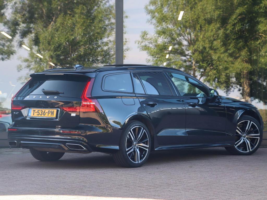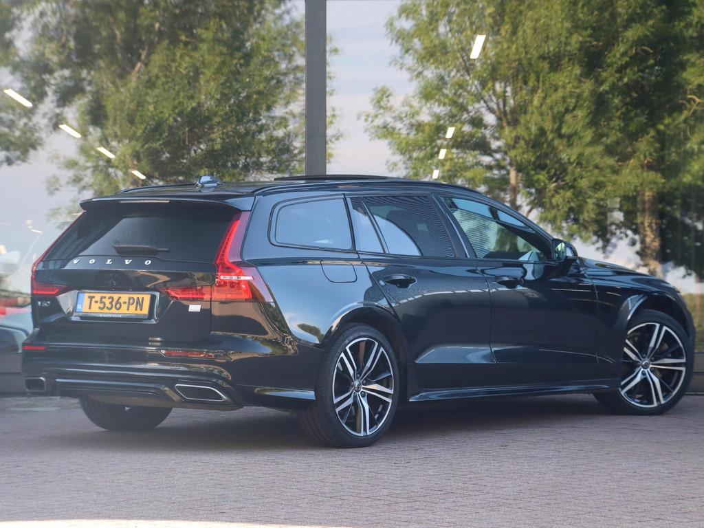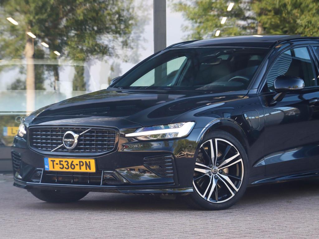 19" 5-V Spaaks Tinted Silver velgen met 235/40 R19 banden (1040), Anti Blokkeer Systeem, Anti doorSlip Regeling, Apple Carplay/Android Auto, Audio & Park Assist Pack, Autonomous Emergency Braking, Bluetooth telefoonvoorbereiding, Brake Assist System, Climate Pro Pack, DAB ontvanger, Electrisch bedienbare bestuurdersstoel (047), Elektrisch bedienbaar glazen panoramisch schuif-/kanteldak met elektrisch bedienbaar zonnescherm (030), Elektronisch Stabiliteits Programma, Grafisch Head-up Display voor weergave van de ingestelde snelheid van de adaptieve cruise control, verkeersbordenherkenning en navigatie aanwijzingen (117), LED achterlichten, LED dagrijverlichting, LED koplampen, Lighting Pack, Lounge Pack, Onyx Black metallic (717), R-Design exterieur, Trekhaak met semi elektrisch inklapbare kogel, 13-polig (1028), Volvo Guard Alarm Klasse 3 (140), WiFi voorbereiding, achterbank in delen neerklapbaar, achterbank verwarmd, achteropkomend verkeer waarschuwing, achteruitrij assistent, achteruitrijcamera, aluminium interieur afwerking, armsteun achter, armsteun voor, audio installatie premium, bagage-scheidingsnet, bagagedek, bandenspanningscontrolesysteem, bestuurdersairbag, bestuurdersstoel in hoogte verstelbaar, binnenspiegel automatisch dimmend, boordcomputer, bots herkenning en activatie, bots waarschuwing systeem, buitenspiegel(s) automatisch dimmend, buitenspiegels elektrisch inklapbaar, buitenspiegels elektrisch verstel- en verwarmbaar, connected services, cruise control adaptief met Stop&Go en stuurhulp, dakrails, dimlichten automatisch, dodehoekdetectie met correctie, electronic climate controle, elektrisch bedienbare achterklep met sensorsturing, elektrische ramen achter, elektrische ramen voor, elektronische remkrachtverdeling, grootlichtassistent, hill hold functie, hoofd airbag(s) achter, hoofd airbag(s) voor, hoofdsteunen actief, interieur voorverwarmingsinstallatie, keyless entry, keyless start, koplampen adaptief, koplampreiniging, kruisend verkeer detectie, lederen/stof bekleding, lederen stuurwiel, lederen versnellingspook, lendesteunen (verstelbaar), multimedia-voorbereiding, navigatiesysteem full map + hard disk, oplaadmogelijkheid, parkeersensor achter, parkeersensor voor, passagiersairbag, passagiersstoel in hoogte verstelbaar, regensensor, rijstrooksensor met correctie, rondomzicht camera, spraakbediening, start/stop systeem, stuurwiel multifunctioneel, stuurwiel verwarmd, verkeersbord detectie, vermoeidheids herkenning, volledig digitaal instrumentenpaneel, voorstoelen verwarmd, zij airbag(s) voor