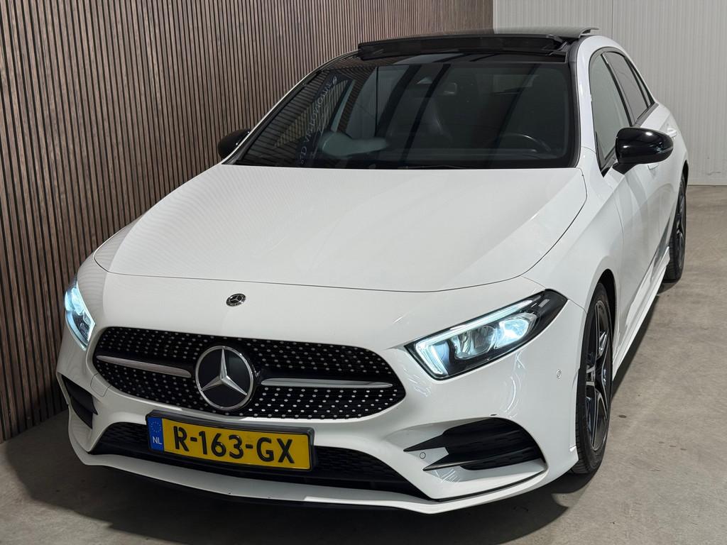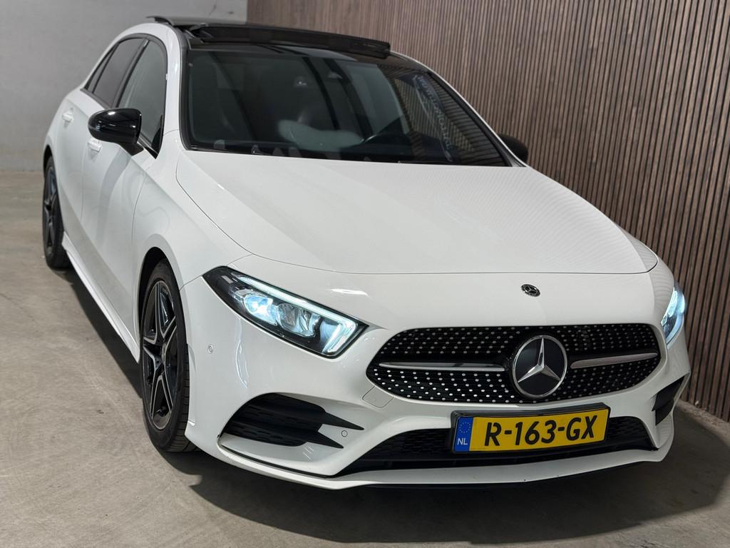 "Lichtmetalen velgen 18""", AMG-styling, Accident Avoidance System, Achterbank in delen neerklapbaar, Achteruitrijcamera, Airbag(s) hoofd achter, Airbag(s) knie, Airbag(s) side voor, Airbag bestuurder, Airbag passagier, Airco automatisch, Anti Blokkeer Systeem (ABS), Armsteun voor, Bandenspanningscontrolesysteem, Brake Assist System, Buitenspiegel(s) automatisch dimmend, Buitenspiegels elektrisch inklapbaar, Chroom delen exterieur, Comfortstoel(en), Connected services, Cruise control, Dimlichten automatisch, Elektrisch glazen panorama-dak, Keyless start, Kunstlederen bekleding, LED dagrijverlichting, LED koplampen, Lederen stuurwiel, Lendesteunen (verstelbaar), Multimedia-voorbereiding, Navigatie-systeem full map + hard disk, Panorama dak, Panoramadak, Parkeer-assistent, Parkeersensor achter, Parkeersensor voor, Radio, Regensensor, Rijstrooksensor met correctie, Side skirts, Sportstoelen, Sportstuur, Spraakbediening, Start/stop systeem, Startblokkering, Stuurwiel multifunctioneel, Variabele stuuroverbrenging, Verkeersbord detectie, Verwarmde voorstoelen, Volledig digitaal instrumentenpaneel, WiFi voorbereiding