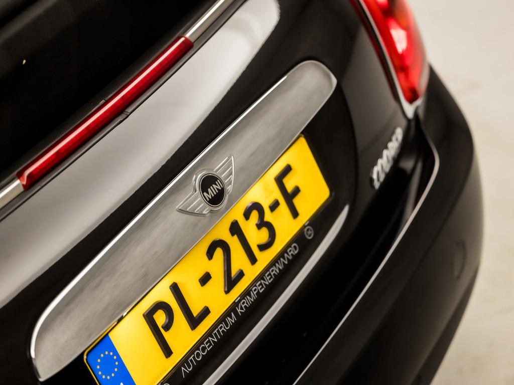 12Volt aansluiting, Achterbank in delen neerklapbaar, Achterspoiler, Afdekhoes, Airbag(s) gordijn, Airbag(s) hoofd voor, Airbag(s) side voor, Airbag(s) window, Airbag bestuurder, Airbag passagier, Airco, Airco (automatisch), Airco met elektronische regeling, Airconditioning, handbediend (530), Alarm klasse 1(startblokkering), Alarm klasse 3, Alarmsysteem, Anti Blokkeer Systeem, Anti doorSlip Regeling, Armsteun, Armsteun voor, Audio installatie, Bandenspanningscontrolesysteem, Bestuurdersstoel in hoogte verstelbaar, Bluetooth, Bluetooth handsfree kit met USB audio interface (6ND), Bluetooth telefoonvoorbereiding, Boordcomputer, Boordcomputer met verbruiksberekening (550), Buitenspiegels elektrisch verstel- en verwarmbaar, Buitenspiegels elektrisch verstelbaar, Bumpers in carrosseriekleur, Centrale deurvergrendeling, Centrale deurvergrendeling met afstandsbediening, Chrome Line Exterieur (346), Chroom delen exterieur, Climate Control, Climatic, Comfort Access (322), Comfortstoel(en), Cruise control, Cruisecontrol, Derde remlicht, Diefstalalarmsysteem (302), Dimlichten automatisch, Elek pakket, Elektrisch bedienbare kap, Elektrische ramen voor, Elektronisch Stabiliteits Programma, Elektronische remkrachtverdeling, Hill hold functie, Hoofdsteunen achter, Isofix bevestiging voor kinderzitjes, Keyless entry, LED- mistlampen (5A1), LED Koplampen, LED achterlichten, LED dagrijverlichting, LED koplampen, LED koplampen (5A2), LED koplampen adaptief, LED mistlampen, Lederen stuurwiel, Lederen versnellingspook, Lichtmetalen velgen, Lichtmetalen velgen 15", MP3 aansluiting, Metaalkleur, Midnight Black metaallak (A94), Multifunctioneel stuurwiel met cruise control (249), Multimedia-voorbereiding, Multimedia systeem, Navigatie, Navigatie Voorbereiding, Navigatiesysteem, Navigatiesysteem (6UM), Navigatiesysteem full map, Navigatiesysteem full map + hard disk, Open dak, Park Distance Control achter (507), Parkeersensor achter, Parkeersensoren achter, Passagiersstoel in hoogte verstelbaar, Radio MINI Visual Boost (6FP), Radiovoorbereiding, Regensensor, Ruimtebesparend reservewiel, Speciale kleur, Sportstoelen, Sportstuur, Start/stop systeem, Stuurbekrachtiging, Stuur verstelbaar, Stuurwiel multifunctioneel, Voorstoelen in hoogte verstelbaar, Windscherm, Windscherm (387), Xenon verlichting, Zwarte hemelbekleding, ruitensproeiers/wisserbladen verwarmbaar, stuur leder, stuur multifunctioneel