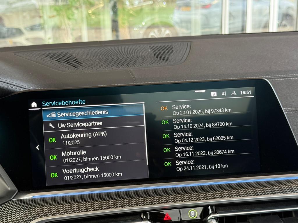 "Lichtmetalen velgen 19""", "Lichtmetalen velgen 22""", 360 graden camera, Accident Avoidance System, Achterbank in delen neerklapbaar, Achterbank verwarmd, Achteropkomend verkeer waarschuwing, Achterruit apart te openen, Achteruitrij assistent, Achteruitrijcamera, Adaptief Cruise Controle, Adaptief Demping Systeem (ADS), Afdaal assistent, Airbag(s) hoofd achter, Airbag(s) hoofd voor, Airbag(s) knie, Airbag(s) side voor, Airbag bestuurder, Airbag passagier, Airco automatisch, Alarm klasse 3, Aluminium delen exterieur, Aluminium interieur afwerking, Anti Blokkeer Systeem (ABS), Apple carplay, Armsteun achter, Armsteun voor, Autotelefoonvoorbereiding met Bluetooth, Bandenspanningscontrolesysteem, Binnenspiegel automatisch dimmend, Boordcomputer, Bots herkenning en activatie, Bots waarschuwing systeem, Buitenspiegel(s) automatisch dimmend, Buitenspiegels elektrisch inklapbaar, Buitenspiegels elektrisch verstelbaar, Buitenspiegels verwarmbaar, Centrale deurvergrendeling met afstandsbediening, CoPilot Pack, Comfort Access pakket, Comfortstoel(en), Connected services, Cruise control, Cruise control adaptief met Stop&Go, DAB-ontvanger, DEALER ONDERHOUDEN, Dakrails, Dimlichten automatisch, Dodehoek assist, Dodehoekdetectie met correctie, Dodehoek detector, Draadloop opladen telefonie, Driving Assistant Plus, Electronic Stability Program (ESP), Elektrisch bedienbare achterklep, Elektrisch bedienbare achterklep met sensorsturing, Elektrische kofferbakklep, Elektrisch glazen panorama-dak, Elektrisch verstelbare bestuurdersstoel met geheugen, Extra getint glas, Geluidwerend glas, Grootlicht-assistent, Head-up display, Hill hold-functie, Keyless entry, Keyless start, Koplampen adaptief, Kruisend verkeer detectie, LED achterlichten, LED koplampen, LED koplampen met laser, LED mistlampen, Lane assist, Lederen bekleding, Lederen stuurwiel, Lendesteunen (verstelbaar), Luchtvering, Luxe lederen bekleding, M Aerodynamica, M Sportpakket, Memory seats, Memory stoelen elektrisch, Metallic lak, Multimedia-voorbereiding, Navigatie-systeem full map + hard disk, Navigatie via Apple Carplay, Oplaadmogelijkheid, Panoramadak, Parkeer-assistent, Parkeersensor achter, Parkeersensoren, Parkeersensor voor, Privacy glass, Radio, Regensensor, Rijstrooksensor, Rijstrooksensor met correctie, Rondomzicht camera, Ruitensproeiers verwarmbaar, Safety-pack, Schakelmogelijkheid aan stuurwiel, Sfeerverlichting, Sluitbekrachtiging, Softclose, Sportstoelen, Sportstuur, Spraakbediening, Standkachel verwarming, Start/stop systeem, Stoelverwarming, Stuurbekrachtiging snelheidsafhankelijk, Stuur verstelbaar, Stuur verwarming, Stuurwiel multifunctioneel, Stuurwiel verwarmd, Telefoonintegratie premium, Tractie Controle Systeem (TCS), Trekhaak, Trekhaak elektrisch uitklapbaar, Uitwijk assistent, Verkeersbord detectie, Vermoeidheids herkenning, Verwarmde voorstoelen, Virtual cockpit, Volledig digitaal instrumentenpaneel, Warmtecomfort pakket, Zonnescherm zijruiten