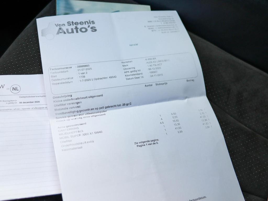 Anti Blokkeer Systeem, Anti doorSlip Regeling, Assistentiepakket (PCE), Audi active lane assist (PCB), Audi adaptive cruise control inclusief Audi pre sense front (PCG), Audi sound system (9VD), Bekleding, leder/alcantara voor S line (N7K), Bestuurdersinformatiesysteem met kleurenscherm (9S6), Brake Assist System, Comfortairconditioning (9AK), Daytonagrijs Pareleffect (6Y6Y), Elektronisch Sper Differentieel, Elektronisch Stabiliteits Programma, Koplampreinigingsinstallatie (8X1), LED-koplampen (PX2), LED koplampen, Lendesteunen, elektrisch instelbaar (7P1), Middenarmsteun voor A4 (6E3), Parkeerhulp achter (7X1), Parkeerhulp plus met selectieve weergave (7X2), Privacy Glass (VW1), Sportonderstel (2UC), Telefoonvoorbereiding basis (9ZX), Verwarmbare voorstoelen (4A3), achterbank neerklapbaar, alarm klasse 1(startblokkering), aluminium interieur afwerking, bandenspanningscontrolesysteem, bestuurdersairbag, buitenspiegels elektrisch verstel- en verwarmbaar, centrale deurvergrendeling met afstandsbediening, dimlichten automatisch, elektrische ramen voor en achter, hoofd airbag(s) achter, hoofd airbag(s) voor, koplampen adaptief, lederen stuurwiel, lichtmetalen velgen 17", multimedia-voorbereiding, navigatiesysteem full map, passagiersairbag, radio CD speler, regensensor, stuurbekrachtiging snelheidsafhankelijk, stuur verstelbaar, stuurwiel multifunctioneel, voorstoelen in hoogte verstelbaar, warmtewerend glas, zij airbag(s) voor
