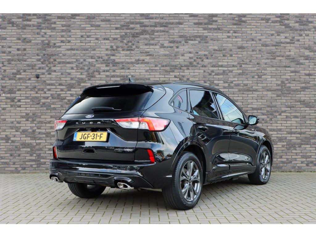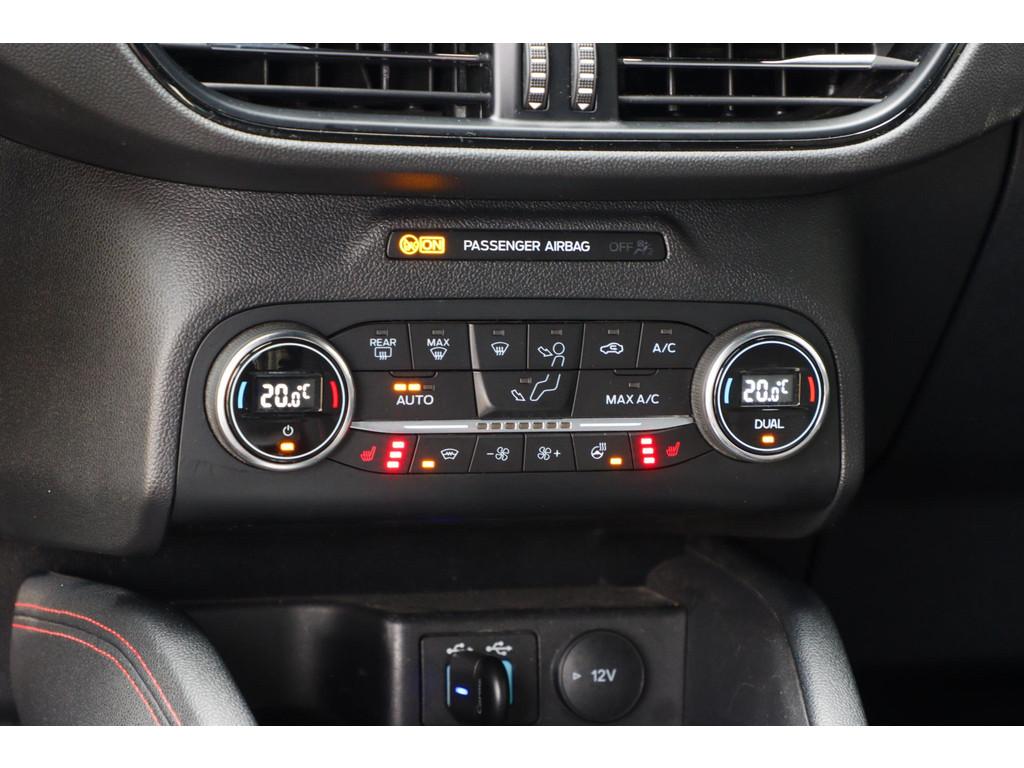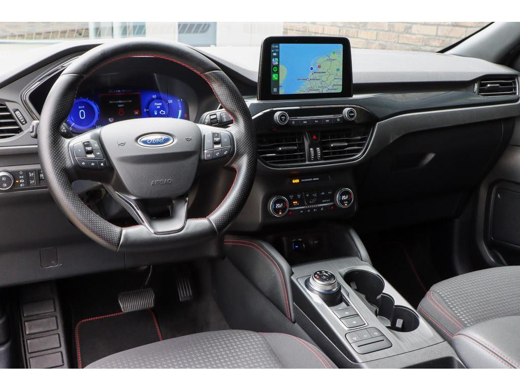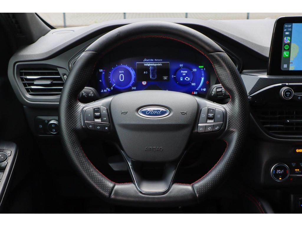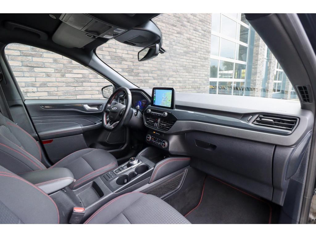 12.3 inch personaliseerbare Digital Cockpit (HCAAV), 18 inch lichtmetalen velgen 5x2-spaaks in Rock Metallic (D2UB3), Achterbank in 2 delen (60/40) neerklapbaar en verschuifbaar in lengte richting (BWGAD), Achterspoiler (BPFAJ), Active Braking/Pre-Collision Assist (voor auto's, voetgangers en fietsers) (FBFAB), Agate Black (PN4GM), Airbags: Voor bestuurder en voorste passagier, zijairbags voorstoelen (CPMAB), Anti Blokkeer Systeem, Anti doorSlip Regeling, Apple Carplay/Android Auto, Automatisch dimmende binnenspiegel (BSBAF), Automatische airco met 3 zones en bediening voor achterpassagiers (AC G), Automatisch inschakelende dimlichten (JEDAC), Bandenspanningscontrole systeem (D19AG), Cruise Control incl. Adjustable Speed Limiting Device (ASLD) (GTDAJ), DAB ontvanger, Dakreling Zwart (BLYAZ), Draadloos laden mobiele telefoon (IEXAB), Dubbele uitlaat achter - Sportief Design (F2AEJ), Elektrisch bedienbare portierramen rondom (B2CAF), Elektrische parkeerrem en Hill Start Assist (FAJAC), Elektrisch verstelbare, verwarmbare en inklapbare buitenspiegels met instapverlichting (BSHCZ), Elektrisch verwarmbare voorstoelen (BY1AB), Elektronisch Stabiliteits Programma, FordKeyless Entry op de voorportieren (incl. motion sensor in de sleutel) (CBGAL), FordPass Connect - Embedded Modem (HKSAD), FordPower startbutton (CBGAJ), In hoogte verstelbare bestuurdersstoel inclusief lendensteunverstelling (BYPAL), In hoogte verstelbare passagiersstoel (BYQAL), Instructieboekjes aanwezig, Isofix, LED achterlichten (JDAAB), LED dagrijverlichting (JBCAB), LED mistlampen voor - uniek design (JBKAN), Lane Departure Warning/Lane Keeping Aid en Road Edge Detection (HLNAC), Lederen stuurwiel in ST-Line design met afgeplatte onderkant (GTACW), Middenconsole met armsteun en 2 USB aansluitpunten op achterzijde (B5WAL), Navigatiesysteem met 8inch touchscreen, SYNC 3 Bluetooth®/Voice Control, DAB+, Navigatiesysteem met 8inch touchscreen, SYNC 3 Bluetooth®/Voice Control, DAB+ (ICFAH), Onderhoudsboekje (digitaal), Oplaadkabel voor laden aan thuisstopcontact 8-10A 1 fase (HTSAJ), Parkeersensoren voor en achter met achteruitrijcamera (J3KAB), Privacy Glass (B2GAE), Regensensor (CFFAN), Reservewiel, Rookvrij, Sportieve unieke ST-Line zijskirts (BMDAG), Sportieve wielophanging: 10mm verlaagd (DWAAC), Sportstoelen voor (11UZH), Trekhaak afneembaar, Uitschakelbare passagiersairbag t.b.v. kinderzitje (CPQAB), Volledige dealeronderhoudshistorie beschikbaar, WiFi voorbereiding, Winter Pack (BY3AB), achterbank verwarmd, alarm klasse 1(startblokkering), boordcomputer, hemelbekleding donker, hoofd airbag(s) achter, hoofd airbag(s) voor, knie airbag(s), koplampreiniging, lederen stuurwiel, multimedia-voorbereiding, parkeersensor achter, parkeersensor voor, radio, stuurbekrachtiging snelheidsafhankelijk, stuur verstelbaar, stuurwiel multifunctioneel, stuurwiel verwarmd, vervolgbotsing preventie, verwarmde voorruit, zij airbag(s) voor