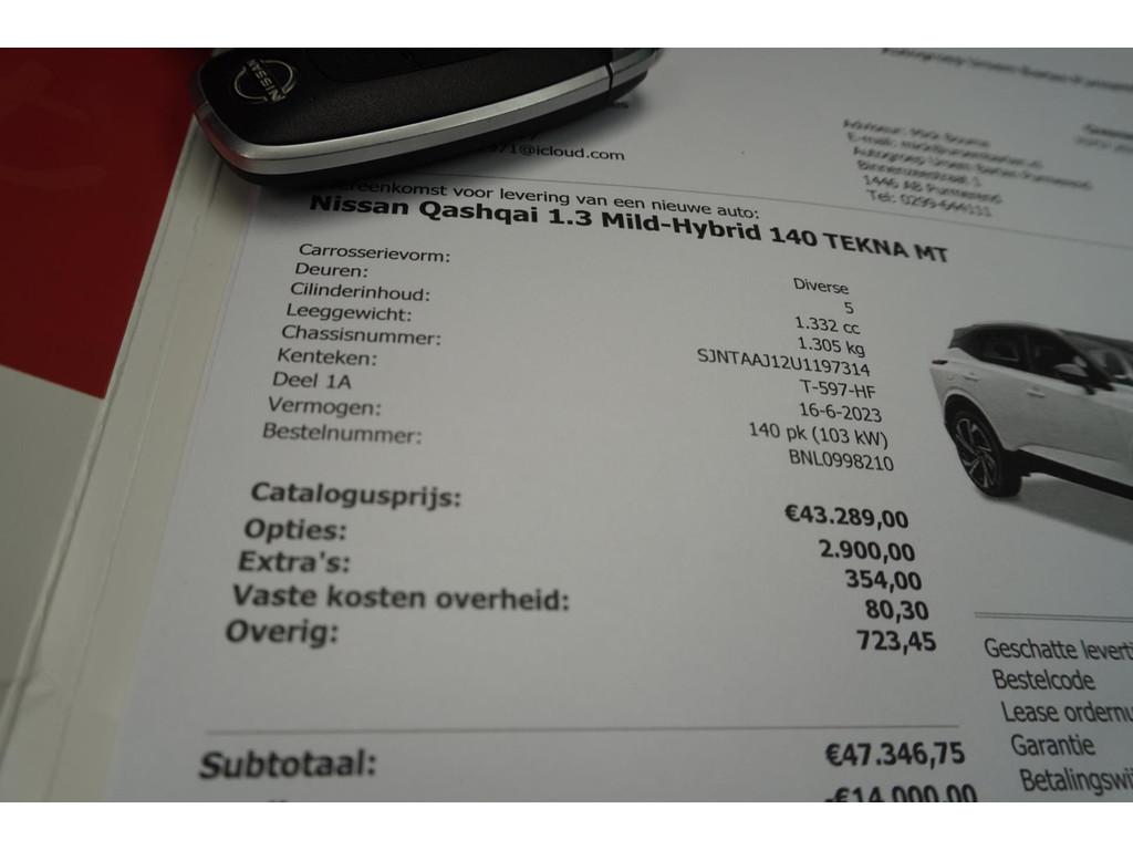 NISSAN Qashqai 1.3 MHEV Tekna+Led+Leder+pano-dak+camera+wifi+stuur&stoel-verw+19"lmvapple-care-play = ORIG/NL+ ZEER LUXE !!