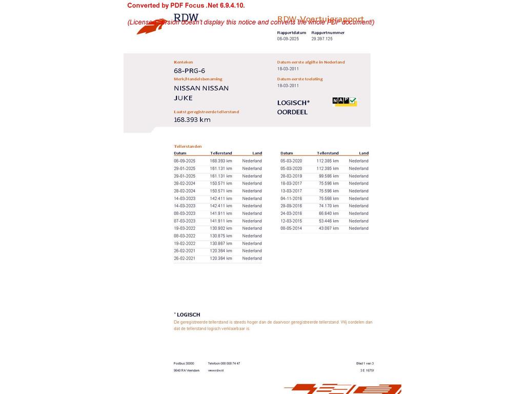Mileage 168.393 NAP checked