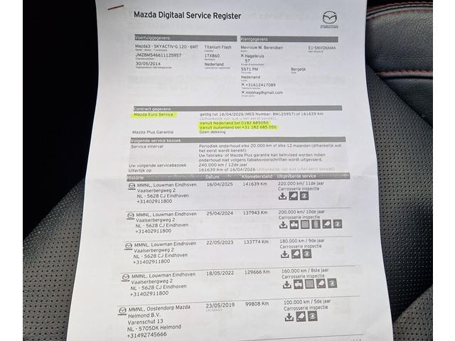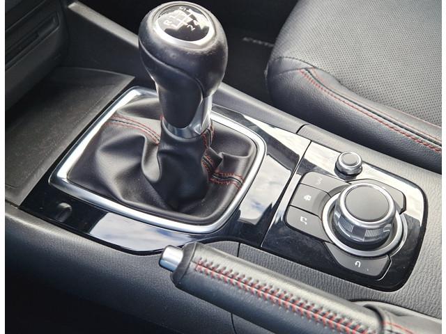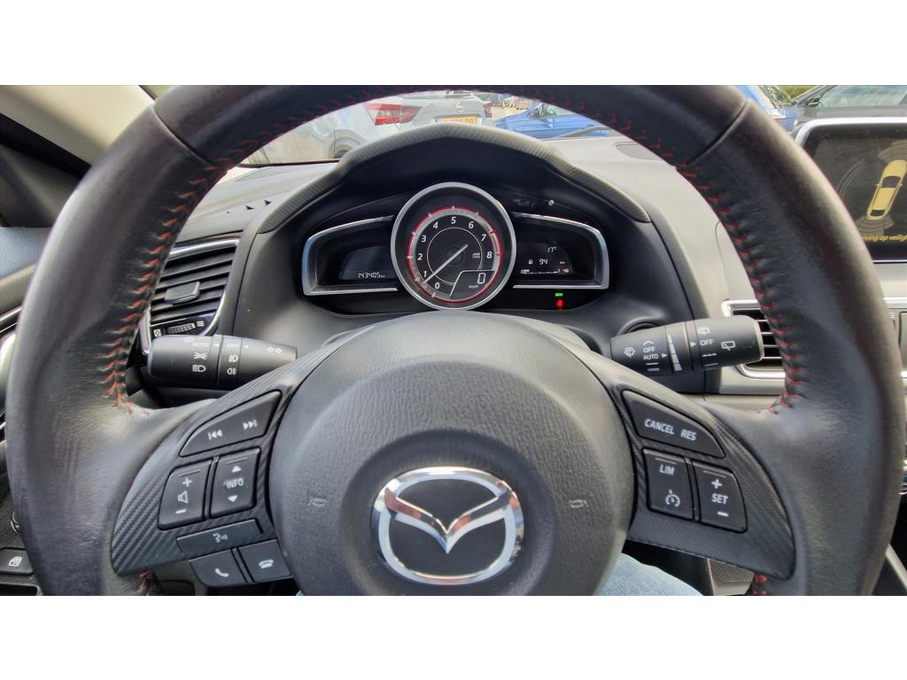 7''kleurenscherm, 18'' lichtmetalen velgen, Achterbank, in delen neerklapbare rugleuningen en zitkussens (60/40), Achterlichten LED-techniek, Afneembare trekhaak, Airbags bestuurder en bijrijder, Antiblokkeer-remsysteem (4W-ABS) met elektronische remkrachtverdeling (EBD) en mechanische remassistent (EBA), Automatisch dimmende binnenspiegel, BOSE premium-audiosysteem met radio/CD-/MP3-/USB-speler met AUX-ingang en 9 speakers, voorzien van Centerpoint en Audiopilot, Bandenreparatieset, Bandenspanningswaarschuwingssysteem, Bestuurdersstoel 6-voudig verstelbaar, met verstelbare lendensteun, Bestuurdersstoel elektrisch verstelbaar, Bluetooth met spraakbesturing, Boordcomputer, Centrale deurvergrendeling met afstandsbediening (met inklapbare sleutel), City Safety Veiligheidssysteem: activeert remmen in noodsituatie tot 30 km/uur, Dakspoiler achter in carrosseriekleur, Dual-zone Climate Control, Dynamic Stability Control (DSC) met tractiecontrole (TCS), Elektrisch bedienbare ramen voor en achter, Elektrisch inklapbare buitenspiegels in carrosseriekleur, GT-M grill (zwarte lak), Geïntegreerd navigatiesysteem, Gordijnairbags voorin en achterin, HMI Commander: gebruiksvriendelijke bediening voor o.a. audio, telefoon (en navigatie - indien beschikbaar), Haaienvinantenne, Head-Up Display, High grade meter-set, Hill Hold Assist (HHA), Hoogwaardig lederen interieur, keuze uit zwart met rood stiksel of Off-White let zwarte inzet (tegen meerprijs), ISOFIX-bevestigingspunten voor kinderzitje, Interieurlamp - voor en achter, Knipperlichten in de spiegels, Koplampen Xenon, LED-dagrijverlichting, Lederen handgreep handrem, Lederen stuurwiel en pookknop, Licht- en regensensor, Mazda Advanced Impact Distribution en Absorption System (MAIDAS), Metallic lak, Middenarmsteun achter, Mistlampen vóór, Noodstopsignalering (ESS), Parkeersensoren voor en achter, Portiergrepen interieur zilverkleurig, Privacy glass, Radio/CD-/MP3-speler met AUX- en USB-aansluiting en zes speakers, Rear Vehicle Monitoring (RVM): dodehoek-detectiesysteem, Remote keyless entry-systeem, Sierlijst zijruiten - chroom, Smart keyless entry, Stoelverwarming, Stuurwielbediening: audio, cruise control, boordcomputer en Bluetooth, Stuurwiel in hoogte verstelbaar, TFT Display in meter-set, Transmissiepaneel - Piano Black, Twee bekerhouders voorin, Verlicht dashboardkastje, Zijairbags voorin, Zilverkleurige ring rond de mistlampen, Zonnekleppen met spiegels, verlichting en zonnebrilhouder, i-stop, brandstofbesparend start-/stopsysteem