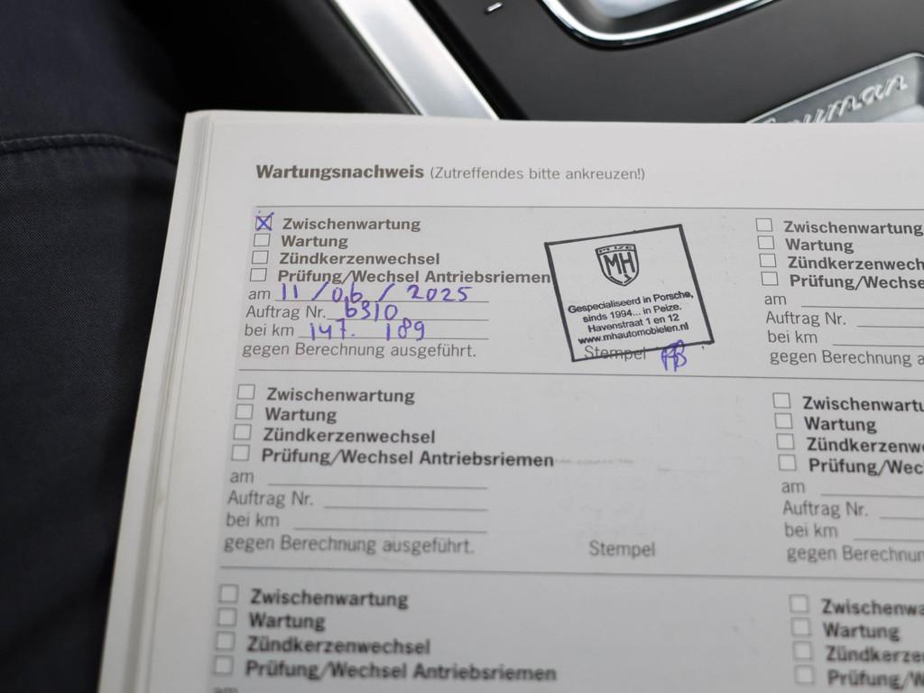 Anti Blokkeer Systeem, Anti doorSlip Regeling, BOSE Sound-system (680), Bi-xenonkoplampen incl. Porsche Dynamic Light System (PDLS) (603), Cruise control (454), LED dagrijverlichting, Leder-pakket, ParkAssistent (636), Porsche Active Suspension PASM (475), Porsche Communication Management (PCM) met uitgebreide navigatiemodule en universele audio-ingang (P23), Sportuitlaat, Stoelverwarming (342), Telefoonvoorbereiding handy Bluetooth (619), airco (automatisch), alarm klasse 3, bestuurdersairbag, bi-xenon koplampen, buitenspiegels elektrisch verstel- en verwarmbaar, centrale deurvergrendeling met afstandsbediening, elektrische ramen voor, elektrisch verstelbare voorstoel(en), elektronische remkrachtverdeling, koplampreiniging, lichtmetalen velgen 19", luxe lederen bekleding, luxe lederen interieur, multimedia-voorbereiding, passagiersairbag, radio-CD/MP3 speler, variabele stuuroverbrenging, zij airbag(s) voor