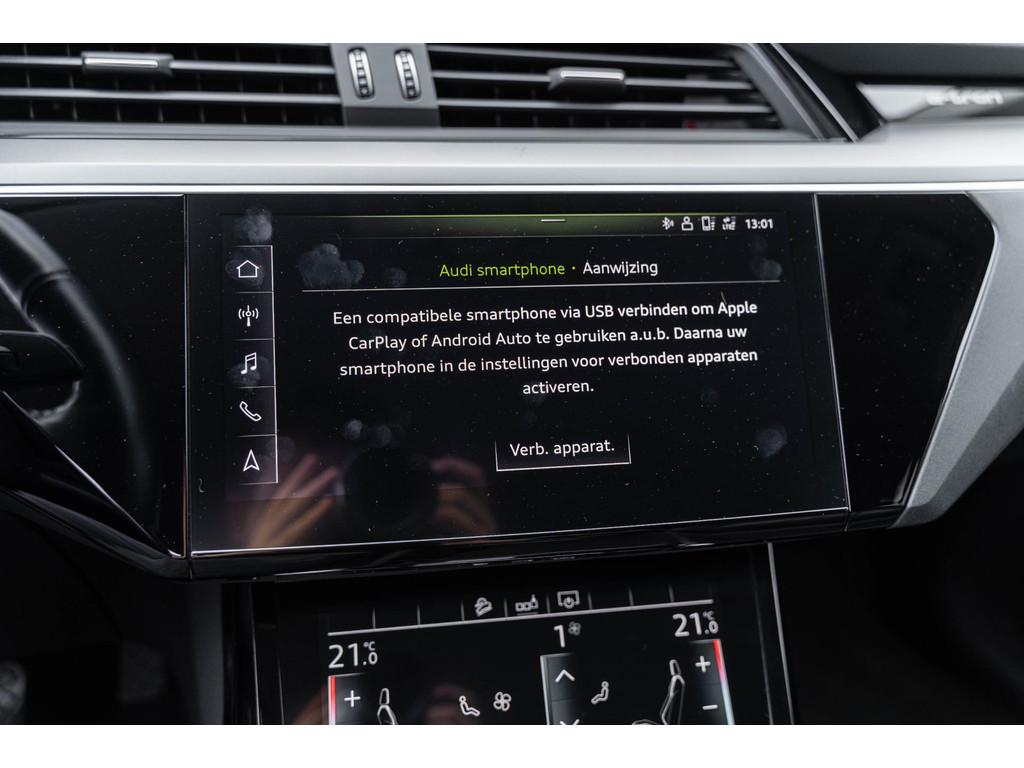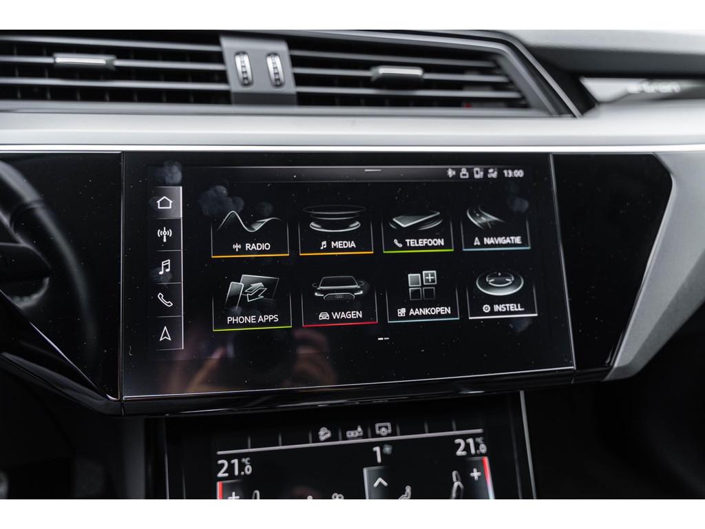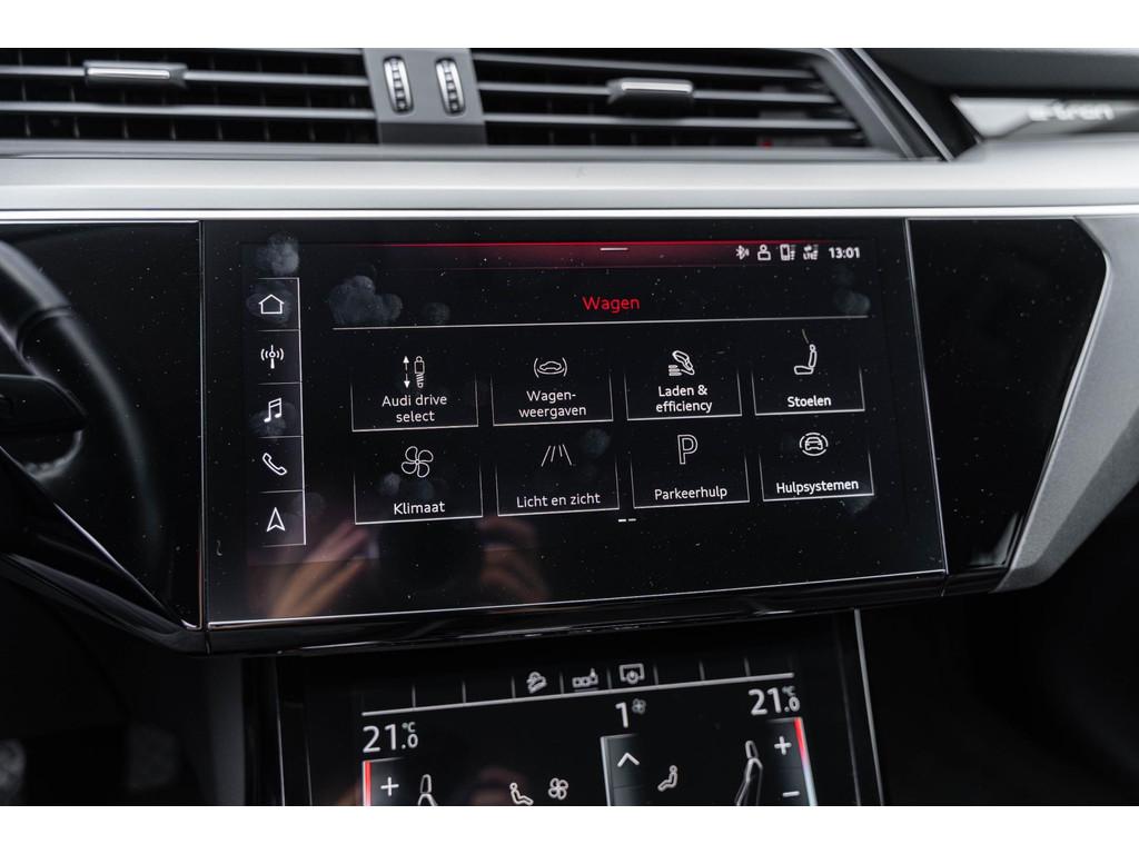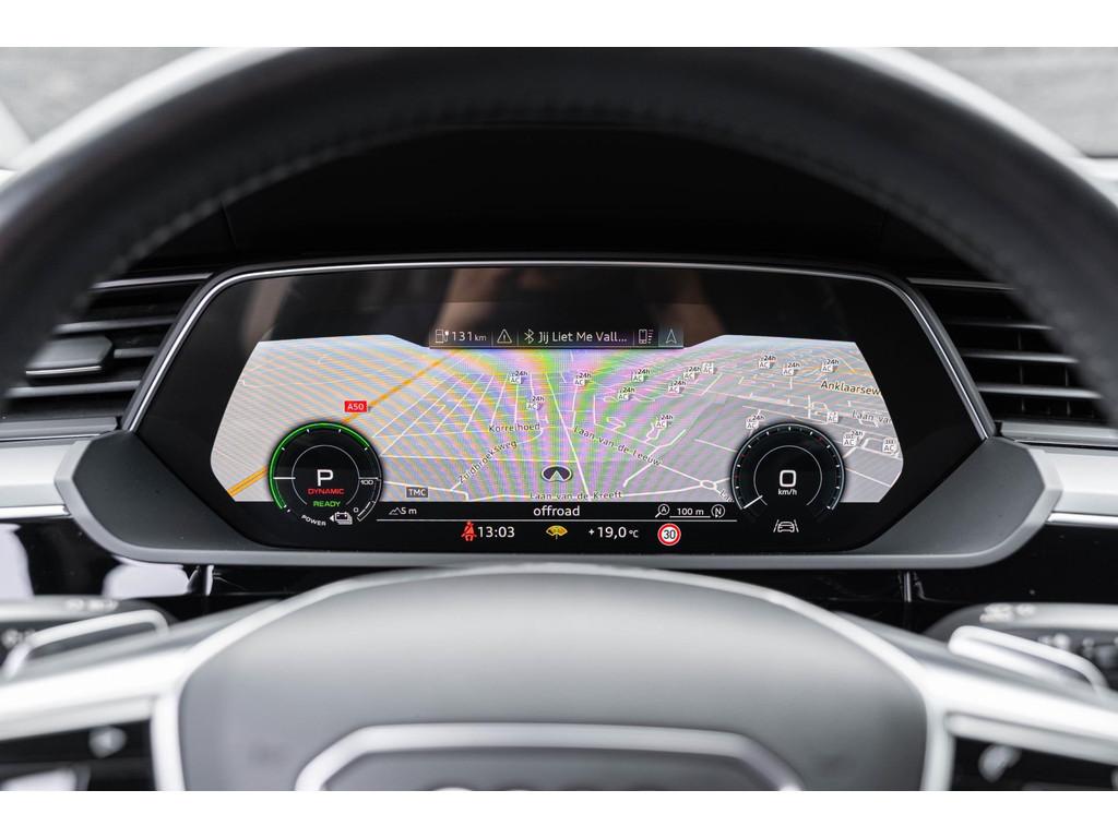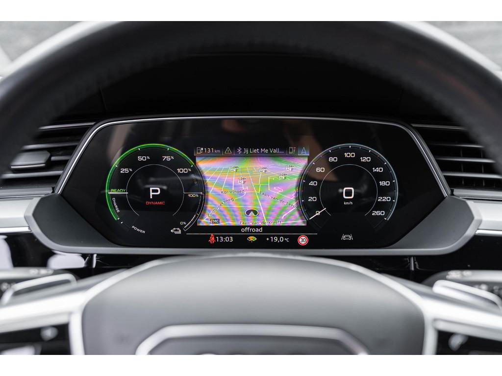 "Lichtmetalen velgen 20""", Accident Avoidance System, Achterbank in delen neerklapbaar, Achteruitrij assistent, Achteruitrijcamera, Airbag(s) hoofd achter, Airbag(s) hoofd voor, Airbag(s) side achter, Airbag(s) side voor, Airbag bestuurder, Airbag passagier, Alarmsysteem, Aluminium delen exterieur, Anti Blokkeer Systeem (ABS), Audio installatie, Audio installatie premium, Bandenspanningscontrolesysteem, Binnenspiegel automatisch dimmend, Bots herkenning en activatie, Bots waarschuwing systeem, Buitenspiegel(s) automatisch dimmend, Buitenspiegels elektrisch inklapbaar, Buitenspiegels elektrisch verstelbaar, Buitenspiegels verwarmbaar, CARPLAY origineel audi E-TRON, Centrale deurvergrendeling met afstandsbediening, Comfortstoel(en), Connected services, Connectivity-pakket, Cruise control, Cruise control adaptief met Stop&Go, DAB-ontvanger, Dakrails, Dimlichten automatisch, Draadloze telefoonlader, Electronic Stability Program (ESP), Electronic climate controle, Elektrisch bedienbare achterklep, Elektrisch verstelbare bestuurdersstoel met geheugen, Elektrisch verstelbare passagiersstoel, Extra getint glas, File-assistent, Geluidsisolerend glas, Geluidwerend glas, Interieur voorverwarmingsinstallatie, LED achterlichten, LED dagrijverlichting, LED koplampen, Lederen bekleding, Lederen interieurdelen, Lederen stuurwiel, Lendesteunen (verstelbaar), Luchtvering, Matrix LED koplampen, Multimedia-voorbereiding, Navigatie full map, Niveauregeling automatisch, Oplaadmogelijkheid, Parkeersensor achter, Parkeersensor voor, Regensensor, Rijstrooksensor, Schakelmogelijkheid aan stuurwiel, Speciale kleur, Spraakbediening, Startblokkering, Stoelen-pakket, Stuurhulp, Stuur verstelbaar, Stuurwiel multifunctioneel, Stuurwiel verwarmd, Telefoonintegratie premium, Trekhaak met afneembare kogel, Uitwijk assistent, Verkeersbord detectie, Verwarmde voorstoelen, Volledig digitaal instrumentenpaneel, Voorstoelen, Warmtewerend glas