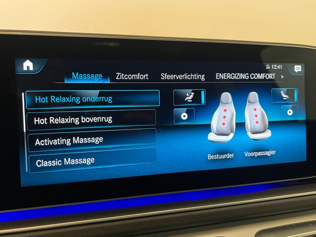 "Lichtmetalen velgen 22""", AMG-styling, Accident Avoidance System, Achterbank in delen neerklapbaar, Achteropkomend verkeer waarschuwing, Achteruitrijcamera, Adaptief Demping Systeem (ADS), Airbag(s) hoofd achter, Airbag(s) hoofd voor, Airbag(s) knie, Airbag(s) side achter, Airbag(s) side voor, Airbag bestuurder, Airbag passagier, Airco separaat achter, Android Auto, Anti Blokkeer Systeem (ABS), Apple Carplay, Armsteun achter, Armsteun voor, Audio installatie premium, Automatische niveauregeling, Autotelefoonvoorbereiding met Bluetooth, Bandenspanningscontrolesysteem, Binnenspiegel automatisch dimmend, Bots herkenning en activatie, Buitenspiegel(s) automatisch dimmend, Buitenspiegels elektrisch inklapbaar, Buitenspiegels elektrisch verstelbaar, Buitenspiegels verwarmbaar, Burmester premium sound systeem, Connected services, Cruise control adaptief met Stop&Go, DAB-ontvanger, Distronic Plus, Dodehoekdetectie met correctie, Draadloze telefoonlader, Electronic Brake Distribution (EBD), Electronic Stability Program (ESP), Electronic climate controle, Elektrisch bedienbare achterklep met sensorsturing, Elektrische ramen achter, Elektrische ramen voor, Elektrisch glazen panorama-dak, Elektrisch verstelbare stoel(en) met geheugen, Extra getint glas, File-assistent, Grootlicht-assistent, Head-up display, Hill hold-functie, Keyless entry, Keyless start, Koplampen adaptief, Kruisend verkeer detectie, LED achterlichten, LED dagrijverlichting, LED koplampen, Lederen bekleding, Lederen stuurwiel, Luchtvering, Multimedia-voorbereiding, Navigatie full map, Night-pakket, Night Edition, Oplaadkabels, Oplaadmogelijkheid, Parkeer-assistent, Regensensor, Rijstrooksensor met correctie, Rondomzicht camera, Sfeerverlichting, Soft close portieren, Sportstoelen, Sportstuur, Spraakbediening, Start/stop systeem, Stoel ventilatie voor, Stoelverwarming achter, Stuurbekrachtiging snelheidsafhankelijk, Stuurhulp, Stuurverwarming, Stuurwiel multifunctioneel, Telefoonintegratie premium, Tractie Controle Systeem (TCS), Treeplanken, Verkeersbord detectie, Vermoeidheids herkenning, Verwarmde voorstoelen, Volledig digitaal instrumentenpaneel, Voorstoel(en) met massagefunctie, Warmtewerend glas, Widescreen