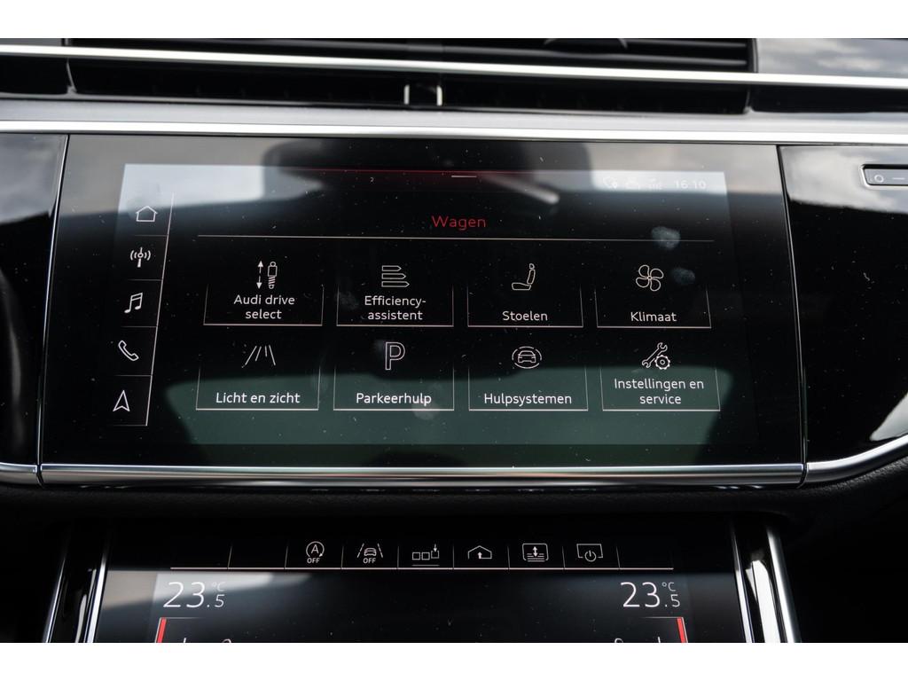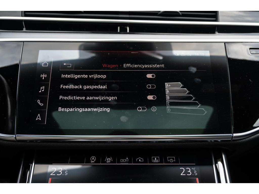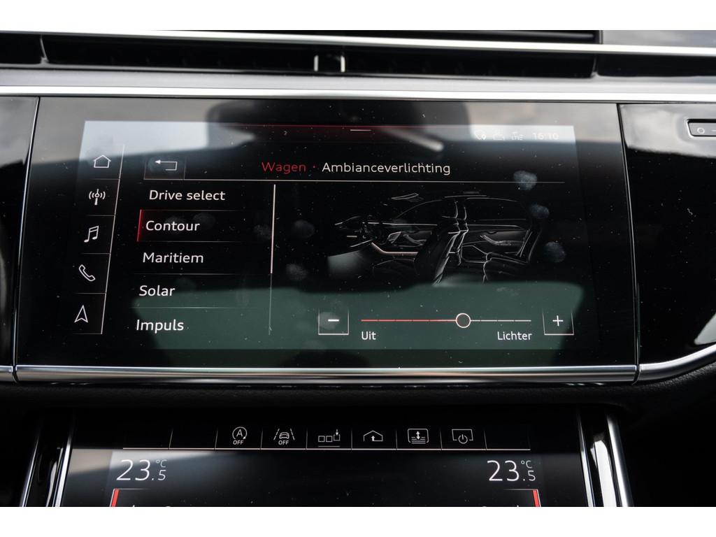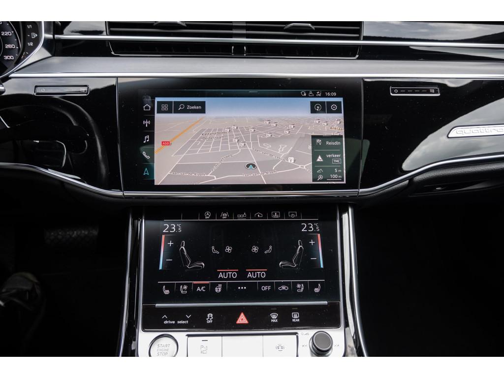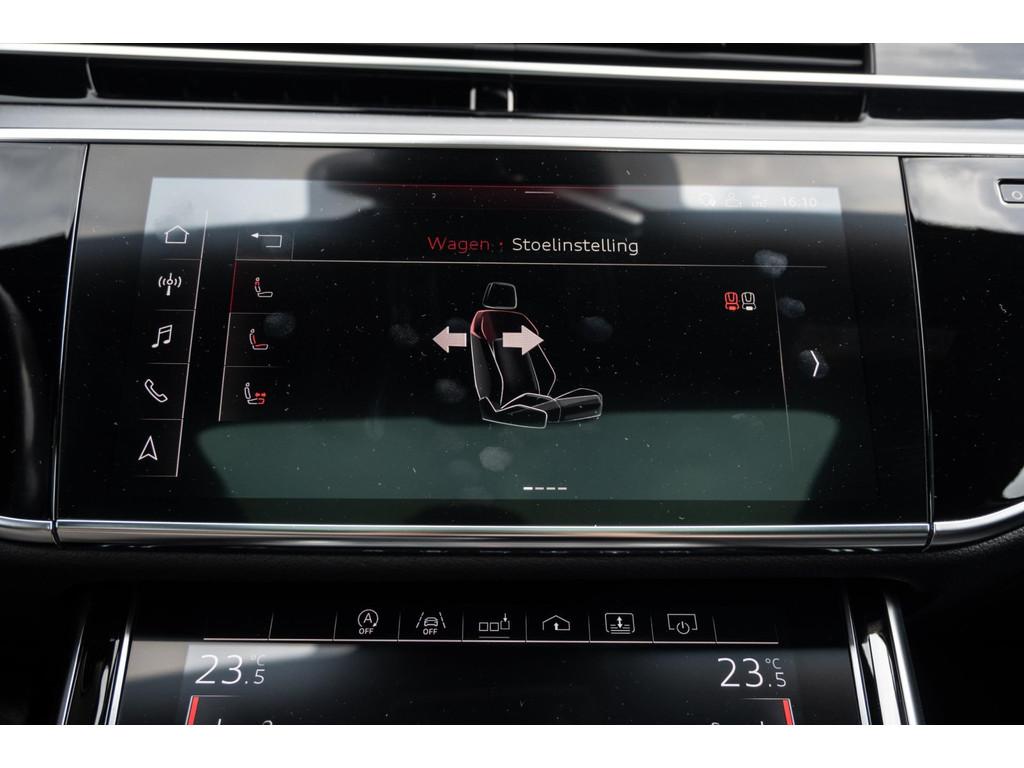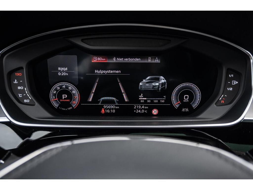 "Lichtmetalen velgen 18""", "Lichtmetalen velgen 19""", 4-wiel besturing, Accident Avoidance System, Achterbank verwarmd, Achteruitrij assistent, Achteruitrijcamera, Adaptief Demping Systeem (ADS), Airbag(s) side achter, Airbag(s) side voor, Airbag bestuurder, Airbag passagier, Airco separaat achter, Alarm klasse 3, Aluminium interieur afwerking, Anti Blokkeer Systeem (ABS), Armsteun voor, Audi Design Selection, Audio installatie, Audio installatie high-end, Audio installatie premium, Automatische niveauregeling, Autotelefoonvoorbereiding met Bluetooth, Bandenspanningscontrolesysteem, Binnenspiegel automatisch dimmend, Bots waarschuwing systeem, Buitenspiegel(s) automatisch dimmend, Buitenspiegels elektrisch inklapbaar, Buitenspiegels elektrisch met geheugen, Buitenspiegels elektrisch verstelbaar, Buitenspiegels verwarmbaar, Chroom delen exterieur, Comfort-pakket, Comfortstoel(en), Connected services, Cruise control, Cruise control adaptief met Stop&Go, Dimlichten automatisch, Dodehoek detector, Electronic climate controle, Elektrisch bedienbare achterklep met sensorsturing, Elektrisch glazen panorama-dak, Elektrisch verstelbare stoel(en) met geheugen, Elektrisch verstelbare stuurkolom, Elektrisch verstelbare stuurkolom met geheugen, Elektrisch verstelbare voorstoel(en), Elektrisch zonnescherm achterruit, Entertainment system, Extra getint glas, File-assistent, Geluidwerend glas, Grootlicht-assistent, Head-up display, Houtafwerking interieur, Keyless entry, Koplampen adaptief, Kruisend verkeer detectie, LED achterlichten, LED dagrijverlichting, LED koplampen, LED koplampen met laser, Lederen bekleding, Lederen stuurwiel, Lederen versnellingspook, Lendesteunen (verstelbaar), Luchtvering, Luxe lederen interieur, Matrix LED koplampen, Metallic lak, Multimedia-voorbereiding, Navigatie-systeem full map + hard disk, Optie-pakket, Parkeer-assistent, Parkeersensor achter, Parkeersensor voor, Premium kleur, Regensensor, Rijstrooksensor, Rijstrooksensor met correctie, Rondomzicht camera, Schakelmogelijkheid aan stuurwiel, Side-skirts, Side skirts, Sportpakket Exterieur, Sportstoelen, Spraakbediening, Stoel ventilatie voor, Stuurwiel multifunctioneel, Stuurwiel verwarmd, Verkeersbord detectie, Verwarmde voorstoelen, Volledig digitaal instrumentenpaneel, Voorstoel(en) met massagefunctie, Warmtewerend glas, WiFi voorbereiding, Zelfstandige rijstrookwissel, Zonnescherm zijruiten