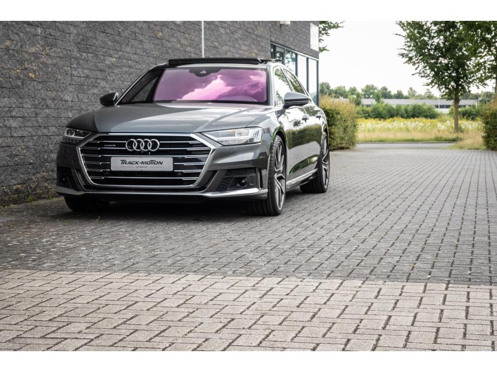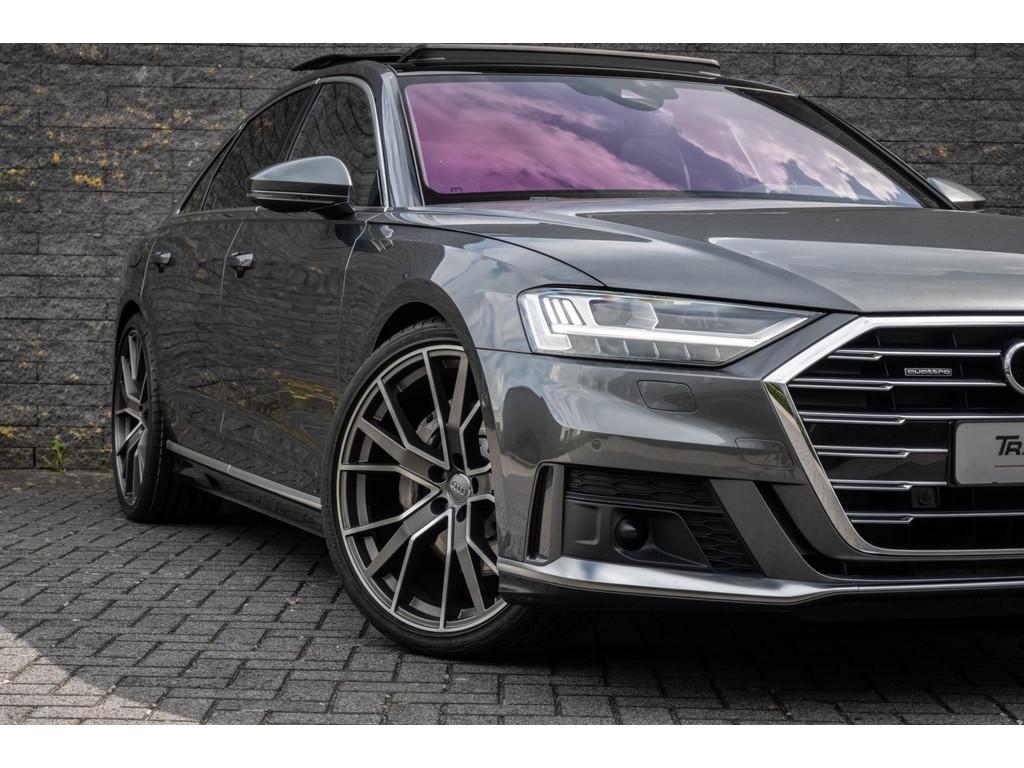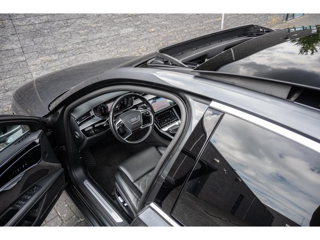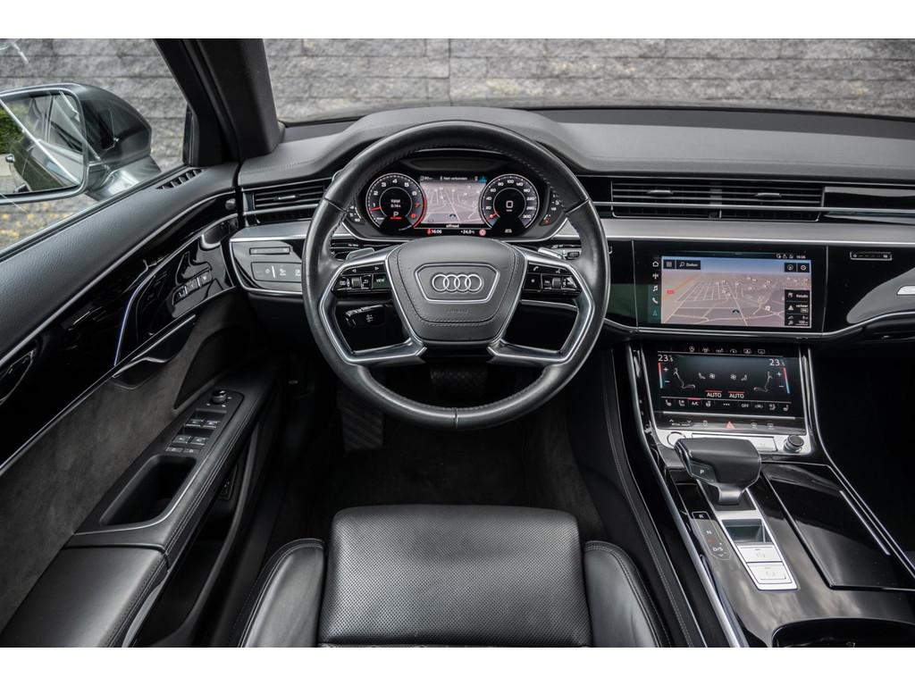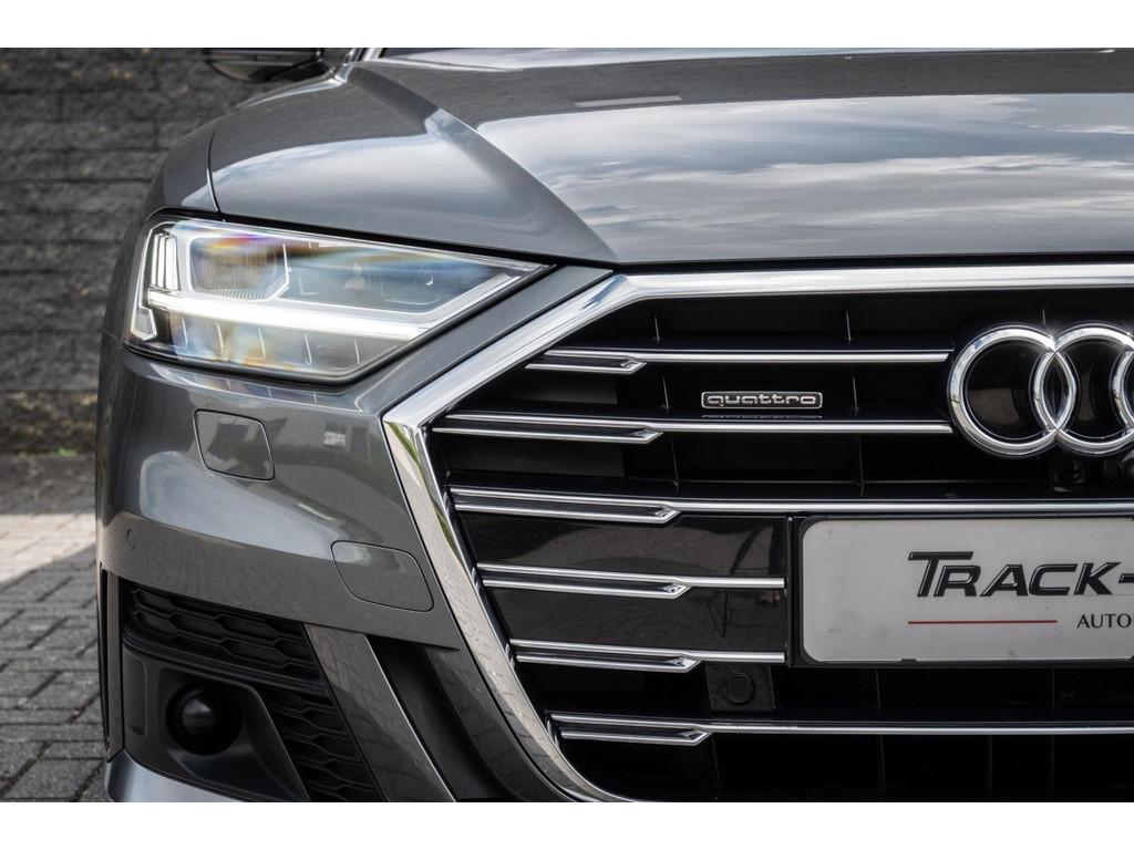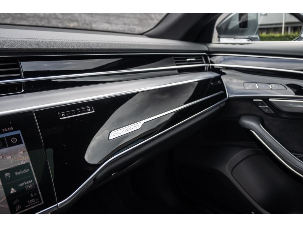"Lichtmetalen velgen 18""", "Lichtmetalen velgen 19""", 4-wiel besturing, Accident Avoidance System, Achterbank verwarmd, Achteruitrij assistent, Achteruitrijcamera, Adaptief Demping Systeem (ADS), Airbag(s) side achter, Airbag(s) side voor, Airbag bestuurder, Airbag passagier, Airco separaat achter, Alarm klasse 3, Aluminium interieur afwerking, Anti Blokkeer Systeem (ABS), Armsteun voor, Audi Design Selection, Audio installatie, Audio installatie high-end, Audio installatie premium, Automatische niveauregeling, Autotelefoonvoorbereiding met Bluetooth, Bandenspanningscontrolesysteem, Binnenspiegel automatisch dimmend, Bots waarschuwing systeem, Buitenspiegel(s) automatisch dimmend, Buitenspiegels elektrisch inklapbaar, Buitenspiegels elektrisch met geheugen, Buitenspiegels elektrisch verstelbaar, Buitenspiegels verwarmbaar, Chroom delen exterieur, Comfort-pakket, Comfortstoel(en), Connected services, Cruise control, Cruise control adaptief met Stop&Go, Dimlichten automatisch, Dodehoek detector, Electronic climate controle, Elektrisch bedienbare achterklep met sensorsturing, Elektrisch glazen panorama-dak, Elektrisch verstelbare stoel(en) met geheugen, Elektrisch verstelbare stuurkolom, Elektrisch verstelbare stuurkolom met geheugen, Elektrisch verstelbare voorstoel(en), Elektrisch zonnescherm achterruit, Entertainment system, Extra getint glas, File-assistent, Geluidwerend glas, Grootlicht-assistent, Head-up display, Houtafwerking interieur, Keyless entry, Koplampen adaptief, Kruisend verkeer detectie, LED achterlichten, LED dagrijverlichting, LED koplampen, LED koplampen met laser, Lederen bekleding, Lederen stuurwiel, Lederen versnellingspook, Lendesteunen (verstelbaar), Luchtvering, Luxe lederen interieur, Matrix LED koplampen, Metallic lak, Multimedia-voorbereiding, Navigatie-systeem full map + hard disk, Optie-pakket, Parkeer-assistent, Parkeersensor achter, Parkeersensor voor, Premium kleur, Regensensor, Rijstrooksensor, Rijstrooksensor met correctie, Rondomzicht camera, Schakelmogelijkheid aan stuurwiel, Side-skirts, Side skirts, Sportpakket Exterieur, Sportstoelen, Spraakbediening, Stoel ventilatie voor, Stuurwiel multifunctioneel, Stuurwiel verwarmd, Verkeersbord detectie, Verwarmde voorstoelen, Volledig digitaal instrumentenpaneel, Voorstoel(en) met massagefunctie, Warmtewerend glas, WiFi voorbereiding, Zelfstandige rijstrookwissel, Zonnescherm zijruiten