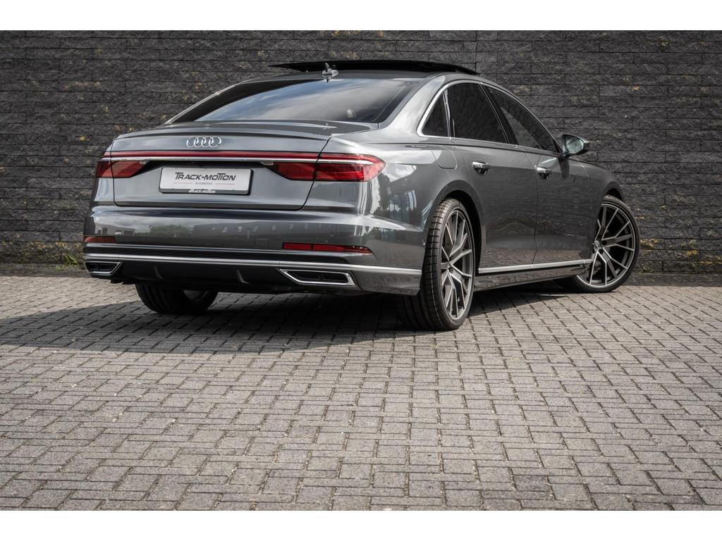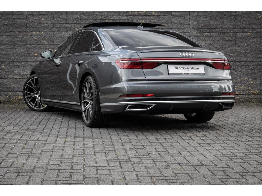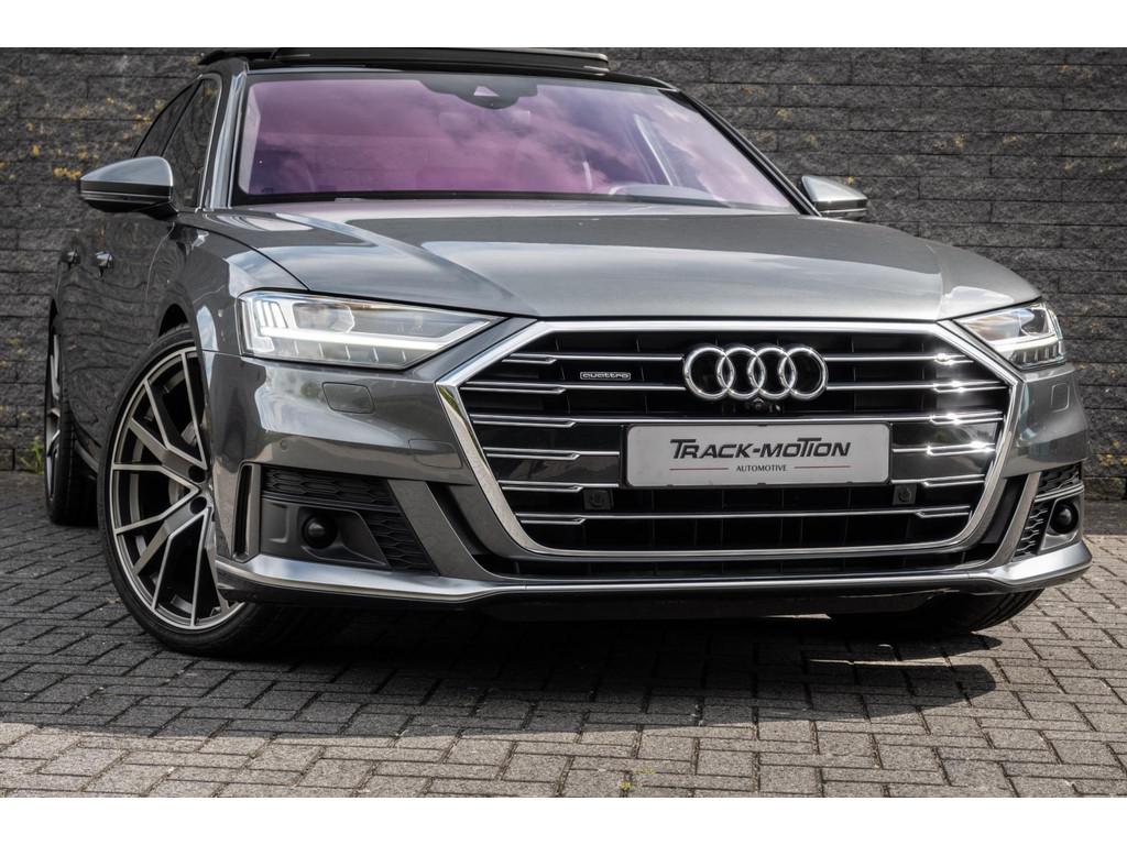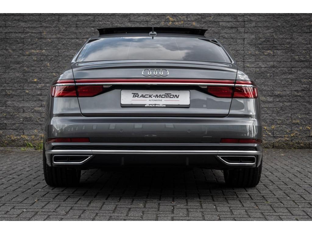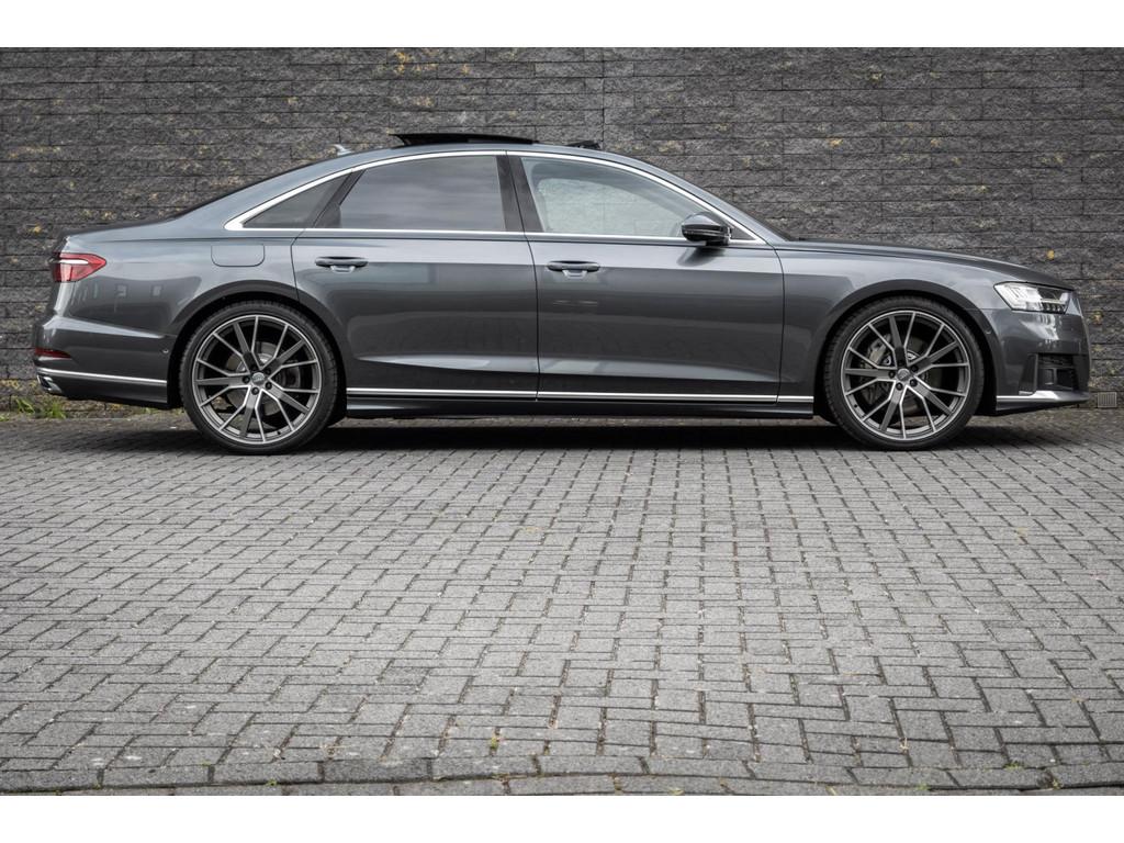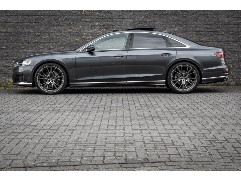 "Lichtmetalen velgen 18""", "Lichtmetalen velgen 19""", 4-wiel besturing, Accident Avoidance System, Achterbank verwarmd, Achteruitrij assistent, Achteruitrijcamera, Adaptief Demping Systeem (ADS), Airbag(s) side achter, Airbag(s) side voor, Airbag bestuurder, Airbag passagier, Airco separaat achter, Alarm klasse 3, Aluminium interieur afwerking, Anti Blokkeer Systeem (ABS), Armsteun voor, Audi Design Selection, Audio installatie, Audio installatie high-end, Audio installatie premium, Automatische niveauregeling, Autotelefoonvoorbereiding met Bluetooth, Bandenspanningscontrolesysteem, Binnenspiegel automatisch dimmend, Bots waarschuwing systeem, Buitenspiegel(s) automatisch dimmend, Buitenspiegels elektrisch inklapbaar, Buitenspiegels elektrisch met geheugen, Buitenspiegels elektrisch verstelbaar, Buitenspiegels verwarmbaar, Chroom delen exterieur, Comfort-pakket, Comfortstoel(en), Connected services, Cruise control, Cruise control adaptief met Stop&Go, Dimlichten automatisch, Dodehoek detector, Electronic climate controle, Elektrisch bedienbare achterklep met sensorsturing, Elektrisch glazen panorama-dak, Elektrisch verstelbare stoel(en) met geheugen, Elektrisch verstelbare stuurkolom, Elektrisch verstelbare stuurkolom met geheugen, Elektrisch verstelbare voorstoel(en), Elektrisch zonnescherm achterruit, Entertainment system, Extra getint glas, File-assistent, Geluidwerend glas, Grootlicht-assistent, Head-up display, Houtafwerking interieur, Keyless entry, Koplampen adaptief, Kruisend verkeer detectie, LED achterlichten, LED dagrijverlichting, LED koplampen, LED koplampen met laser, Lederen bekleding, Lederen stuurwiel, Lederen versnellingspook, Lendesteunen (verstelbaar), Luchtvering, Luxe lederen interieur, Matrix LED koplampen, Metallic lak, Multimedia-voorbereiding, Navigatie-systeem full map + hard disk, Optie-pakket, Parkeer-assistent, Parkeersensor achter, Parkeersensor voor, Premium kleur, Regensensor, Rijstrooksensor, Rijstrooksensor met correctie, Rondomzicht camera, Schakelmogelijkheid aan stuurwiel, Side-skirts, Side skirts, Sportpakket Exterieur, Sportstoelen, Spraakbediening, Stoel ventilatie voor, Stuurwiel multifunctioneel, Stuurwiel verwarmd, Verkeersbord detectie, Verwarmde voorstoelen, Volledig digitaal instrumentenpaneel, Voorstoel(en) met massagefunctie, Warmtewerend glas, WiFi voorbereiding, Zelfstandige rijstrookwissel, Zonnescherm zijruiten