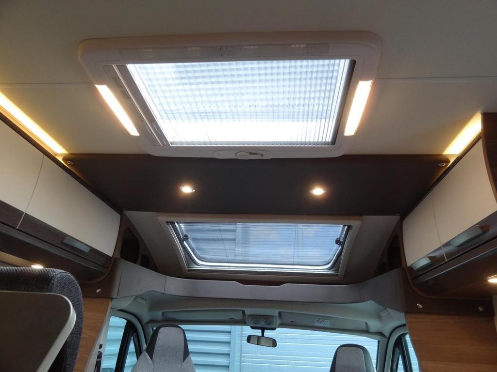 2 enkele bedden, 3 pits gasstel, 16 inch Lichtmetalen velgen, Accessoires accu groot, Achteruitrijcamera, Airbag, Airbag bestuurder, Airco, Alarm, Alle kunstofdelen in kleur gespoten, Anti Blokkeer Systeem (ABS), Armsteun voor, Audioinstallatie met CD-speler, Autotelefoonvoorbereiding, Bearlock op de versnellingsbak, Binnenverlichting laadruimte, Boordcomputer, Buitenspiegels elektrisch verstelbaar, Buitenspiegels met stoeprandfunctie, Centrale deurvergrendeling, Cruise control, Cruisecontrole, Dagrijverlichting, Dakluik 2X, Dakraam “skyroof” boven bestuurderscabine, Dometic cassette-luifel, Douche, Draaibare voorstoelen met armleuningen, beide in hoogte verstelbaar, Dubbele gasflessen, Eettafel met verschuif en inschuifbaar blad, Electronic Stability Program (ESP), Elektrische ramen, Extra slaapplaats te realiseren in het woongedeelte, Extra verlichting, Fullmap Dubbeldin navigatie systeem, Getint glas, Grote Garage met aan twee kanten een deur, Grote Koelkast met vriesvak 140 liter, Hagelbestendig dak, Hoofdsteunen voor, Hordeur bij instap woongedeelte, Keukenblok, Lichtmetalen velgen, Luifel, Multifunctioneel stuur, Navigatiesysteem, Opbergruimte-pakket, Openslaande ramen met hor en verduistering, Ringverwarming, Rondom raamverduistering/ plisse, Rondzit, Schoonwatertank 100 liter, Sfeerverlichting binnen en buitenzijde, Standverwarming, Startblokkering, Stoelen met armleuning en draaibaar, Stuurbekrachtiging, TV voorbereiding, Toilet, Toilet ruimte met kast wastafel en Spiegel, Tractie Controle Systeem (TCS), Verstelbare (in hoogte) bestuurders stoel, Verstelbare stuurkolom, Zenec Navigatie/ full map multimedia/radio etc.., Zonnedak, Zonnenpaneel met omvormer, truma Kachel "Trumatic" met boiler, vuilwatertank
