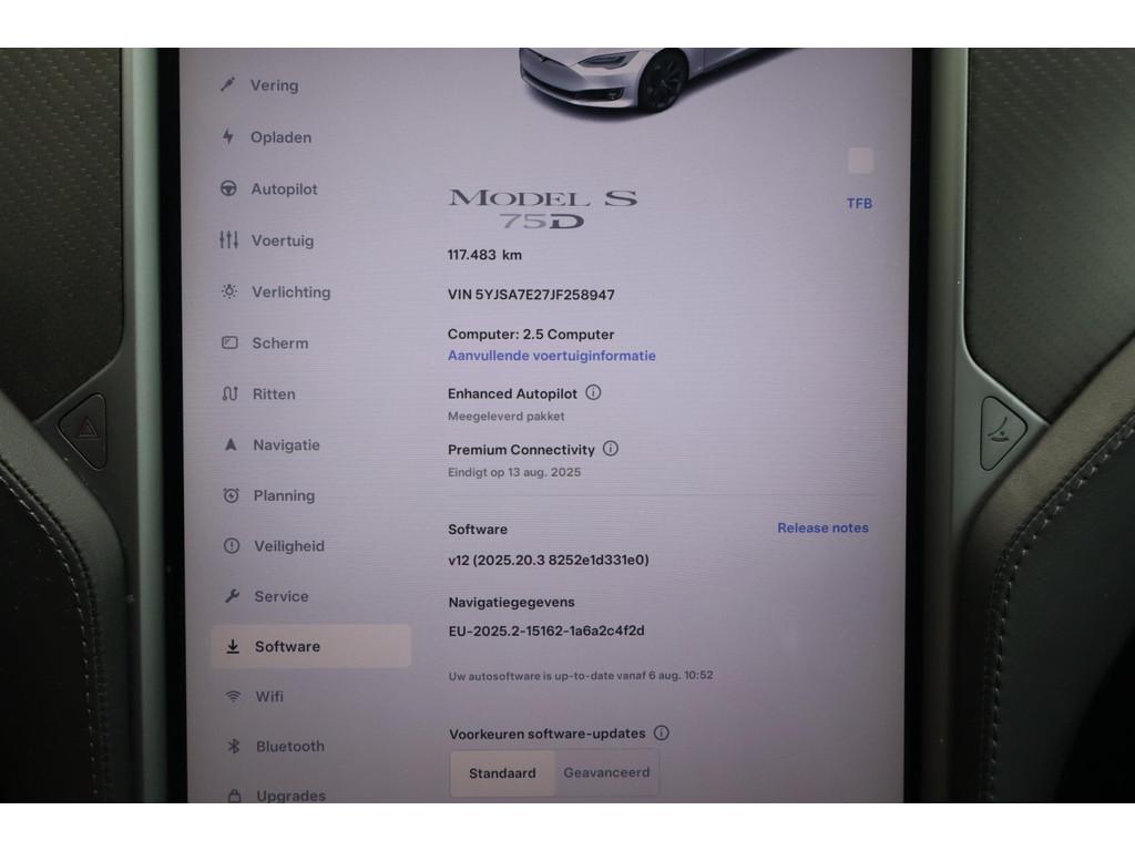 "Lichtmetalen velgen 21""", Accident Avoidance System, Achterbank in delen neerklapbaar, Achterbank verwarmd, Achteruitrijcamera, Airbag(s) hoofd achter, Airbag(s) hoofd voor, Airbag(s) knie, Airbag(s) side voor, Airbag bestuurder, Airbag passagier, Alarmsysteem, Anti Blokkeer Systeem (ABS), Armsteun voor, Audio installatie, Audio installatie premium, Autopilot, Autotelefoonvoorbereiding met Bluetooth, Bandenspanningscontrolesysteem, Binnenspiegel automatisch dimmend, Boordcomputer, Buitenspiegel(s) automatisch dimmend, Buitenspiegels elektrisch inklapbaar, Buitenspiegels elektrisch met geheugen, Buitenspiegels elektrisch verstelbaar, Buitenspiegels verwarmbaar, Carbonafwerking interieur, Cruise control, Dimlichten automatisch, Dodehoek detector, Electronic Stability Program (ESP), Electronic climate controle, Elektrisch bedienbare achterklep, Elektrische ramen voor, Elektrisch glazen panorama-dak, Elektrisch verstelbare stoel(en) met geheugen, Elektrisch verstelbare stuurkolom, Keyless entry, Koplampen adaptief, LED achterlichten, LED dagrijverlichting, LED koplampen, LED mistlampen, Lederen stuurwiel, Luchtvering, Luxe lederen bekleding, Metaalkleur parelmoer, Metallic lak, Multimedia-voorbereiding, Navigatie full map, Oplaadmogelijkheid, Panoramadak, Parkeersensor achter, Parkeersensor voor, Premium Upgrade Package, Regensensor, Rijstrooksensor, Ruitensproeiers verwarmbaar, Spraakbediening, Startblokkering, Stuurbekrachtiging snelheidsafhankelijk, Stuurwiel multifunctioneel, Stuurwiel verwarmd, Tractie Controle Systeem (TCS), Verkeersbord detectie, Verwarmde voorstoelen, WiFi voorbereiding