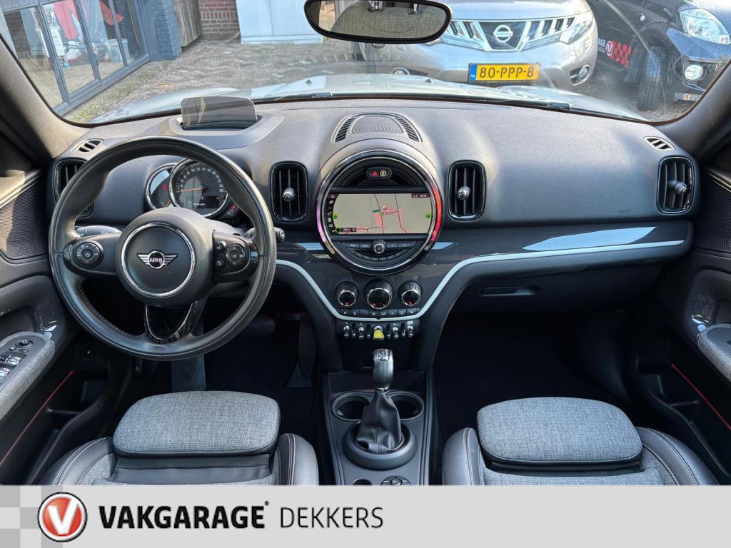 "Lichtmetalen velgen 18""", Achterbank in delen neerklapbaar, Achteropkomend verkeer waarschuwing, Achteruitrijcamera, Afwijkende dakkleur, Airbag(s) hoofd achter, Airbag(s) hoofd voor, Airbag(s) side voor, Airbag bestuurder, Airbag passagier, Airco automatisch, Alarm klasse 3, Anti Blokkeer Systeem (ABS), Apple Carplay, Armsteun voor, Audio installatie, Audio installatie premium, Autotelefoonvoorbereiding met Bluetooth, Bandenspanningscontrolesysteem, Bestuurdersstoel in hoogte verstelbaar, Binnenspiegel automatisch dimmend, Blow-By verwarmer, Boordcomputer, Buitenspiegel(s) automatisch dimmend, Buitenspiegels elektrisch inklapbaar, Buitenspiegels elektrisch verstelbaar, Buitenspiegels in carrosseriekleur, Buitenspiegels verwarmbaar, Business Plus-pakket, Chroom delen exterieur, Colour line Carbon Black, Connected services, Cruise control, Dakrails, Dakspoiler, Dimlichten automatisch, Draadloze telefoonlader, Electronic Brake Distribution (EBD), Electronic Stability Program (ESP), Elektrische ramen voor, Elektrisch glazen panorama-dak, Head-up display, Hill hold-functie, Hoogteverstelling bijrijdersstoel, Interieuroppervlak Hazy Grey, Keyless entry, Koplampen adaptief, LED koplampen, LED mistlampen, Lederen/stoffen bekleding, Lederen stuurwiel, Luxe kentekenplaten met opgelegde letters., MINI Excitement-pakket, Metallic lak, Mini Driving Modes, Multimedia-voorbereiding, Navigatie-systeem full map, Navigatie full map, Parkeer-assistent, Parkeersensor achter, Parkeersensor voor, Regensensor, Ruitensproeiers verwarmbaar, Sportstuur, Startblokkering, Stuurwiel multifunctioneel, Telefoonintegratie premium, Vermoeidheids herkenning, Verwarmde voorstoelen, sportstoelen