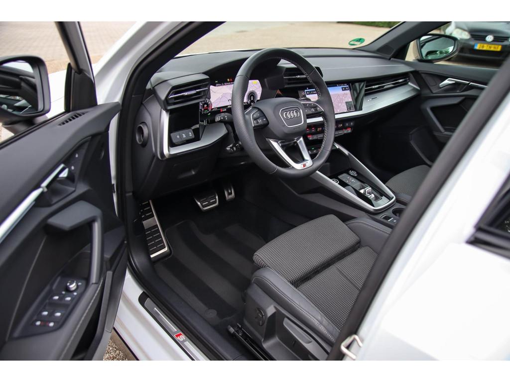3D knipperlichten, 8 inch Navigatiesysteem, 17inch lichtmetalen velgen, 18inch S-Line velgen, 18inch lichtmetalen velgen, ACC (Adaptive Cruise Control), Accident Avoidance System, Achterbank in delen neerklapbaar, Achteruitrijcamera, Achteruitrijcamera (Rear View), Active Info Display, Adaptieve verlichting, Agility Select, Airbag(s) hoofd achter, Airbag(s) hoofd voor, Airbag(s) side voor, Airbag bestuurder, Airbag passagier, Airconditioning, Aluminium interieur afwerking, Ambiance verlichting, Android Auto, Anti Blokkeer Systeem (ABS), App connect, Apple CarPlay, Armsteun voor, Attention Assist, Audi Drive Select, Audi Soundsystem, Audi active lane assist, Audio installatie, Audi pre sense, Automaat, Automatisch dimmende binnenspiegel, Automatische airconditioning, Bandenspanningscontrolesysteem, Bestuurdersstoel in hoogte verstelbaar, Binnenspiegel automatisch dimmend, Bluetooth, Bots herkenning en activatie, Brake Assist System, Buitenspiegel(s) automatisch dimmend, Buitenspiegels elektrisch inklapbaar, Buitenspiegels elektrisch verstelbaar, Buitenspiegels verwarmbaar, Camera achterzijde, Centrale deurvergrendeling met afstandsbediening, City Safe Drive, Climate Control, Climate Control Dual-Zone, Coming- / Leaving Home functie, Connected services, Cruise control, Cruise control adaptief met Stop&Go, DAB+, DAB-ontvanger, DSG F1 schakelflippers, Dakspoiler, Dealeronderhouden, Digitaal instrumentenpaneel, Dimlichten automatisch, Discover Media navigatiesysteem, Discover Pro navigatie, Draadloze telefoonlader, Driving Mode Selection, Driving Profiles, Driving Select, Dynamic Light Assist, Dynamic Select, Dynamische knipperlichten, Electronic Brake Distribution (EBD), Electronic Stability Program (ESP), Electronic climate controle, Elektrische achterklep, Elektrische ramen, Elektrische ramen voor- & achterzijde, Elektrisch glazen panorama-dak, Elektrisch panoramisch schuif-/kanteldak, Elektrisch schuif-/kanteldak, Extra getint glas, F1 schakelpaddles, Filehulp, Front Assist (Pre-Crash), Geluidwerend glas, Grootlicht-assistent, Grootlicht Assistent, Halflederen S-Line sportstoelen, Hill hold-functie, Inductief opladen telefoon QI, Keyless Entry & Keyless GO, Keyless Go, Keyless entry, Keyless start, Klein lederpakket, Kleur wit, Koplampen adaptief, Koplampreiniging, Kuipstoelen, LED-lichtpakket, LED Matrix koplampen, LED achterlichten, LED dagrijverlichting, LED koplampen, LED koplampverlichting, LED mistlampen, LED verlichting interieur & exterieur, Lane Assist (Rijstrookbegeleiding), Lederen bekleding, Lederen interieur, Lederen stuur, Lederen stuurwiel, Lendesteunen (verstelbaar), Licht- & Regensensor, Lichtmetalen velgen, Lichtmetalen velgen 17", Metallic lak, Middenarmsteun, Multibeam LED verlichting, Multimedia-voorbereiding, Navigatie full map, Navigatiesysteem, Night pakket, Oplaadmogelijkheid, Panoramadak, Parkeer-assistent, Parkeer pakket, Parkeersensor achter, Parkeersensoren achterzijde, Parkeersensor voor, Passagiersstoel in hoogte verstelbaar, Performance schaalstoelen, Premium kleur, Privacy glas, RVS Instaplijsten, Radio, Radio-/CD-/USB-speler, Recaro kuipstoelen, Regensensor, Remassistent, Rijprofiel instellingen, Rijstrooksensor, Ruitensproeiers verwarmbaar, S-Line interieur & S-Line exterieur, S3 Kuipstoelen, Schaalstoelen, Schalensitze, Sfeerverlichting interieur, Soundsystem, Spiegelpakket - Elektrisch inklapbaar, Sportstoelen, Sportstuur, Standkachel, Standkachel fabrieksaf, Start/stop systeem, Startblokkering, Stoelverwarming, Stuurbekrachtiging, Stuurhulp, Stuurwielbediening, Stuurwiel multifunctioneel, Supersport kuipstoelen, Telefoonintegratie premium, Tractie Controle Systeem (TCS), Uitwijk assistent, Variabele stuuroverbrenging, Verkeersbord detectie, Verkeersborden herkenning, Verkeersbordenherkenning, Verwarmde voorstoelen, Virtual Cockpit, Warmtewerende voorruit, Widescreen Cockpit, Xenon verlichting, Zwarte hemelbekleding, parkeer sensoren v+a