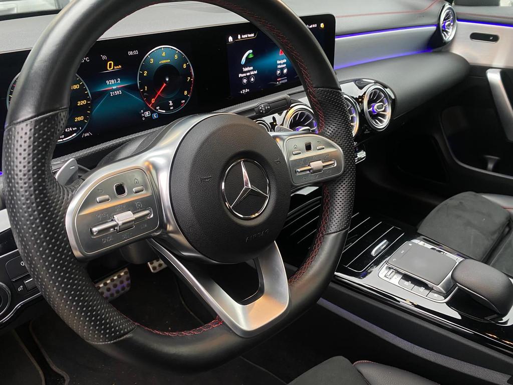 "Lichtmetalen velgen 5-spaaks 18""", AMG-styling, Accident Avoidance System, Achteruitrijcamera, Airbag(s) hoofd achter, Airbag(s) hoofd voor, Airbag(s) knie, Airbag(s) side voor, Airbag bestuurder, Airbag passagier, Aluminium interieur afwerking, Anti Blokkeer Systeem (ABS), Armsteun achter, Armsteun voor, Audio installatie, Bandenspanningscontrolesysteem, Bestuurdersstoel in hoogte verstelbaar, Binnenspiegel automatisch dimmend, Bots herkenning en activatie, Bots waarschuwing systeem, Buitenspiegel(s) automatisch dimmend, Buitenspiegels elektrisch inklapbaar, Buitenspiegels elektrisch verstelbaar, Buitenspiegels met verlichting, Buitenspiegels verwarmbaar, Chroom delen exterieur, Connected services, Cruise control, DAB-ontvanger, Dimlichten automatisch, Dodehoekdetectie met correctie, Electronic Stability Program (ESP), Electronic climate controle, Elektrisch bedienbare achterklep, Elektrisch bedienbare achterklep met sensorsturing, Elektrisch glazen panorama-dak, Extra getint glas, Keyless entry, Keyless start, LED achterlichten, LED dagrijverlichting, LED koplampen, Lederen stuurwiel, Lendesteunen (verstelbaar), Metallic lak, Multifunctioneel stuurwiel, Multimedia-voorbereiding, Navigatie-systeem full map + hard disk, Panorama schuif/kanteldak, Parkeer-assistent, Parkeersensor achter, Parkeersensor voor, Passagiersstoel in hoogte verstelbaar, Plus-pakket, Radio, Regensensor, Rijassistentiepakket, Rijstrooksensor met correctie, Schakelmogelijkheid aan stuurwiel, Sportstoelen, Sportstuur, Spraakbediening, Start/stop systeem, Startblokkering, Stof/kunstlederen bekleding, Stuurwiel multifunctioneel, Telefoonintegratie premium, Tractie Controle Systeem (TCS), Uitwijk assistent, Variabele stuuroverbrenging, Verkeersbord detectie, Verlaagde carrosserie, Verwarmde voorstoelen, Virtual cockpit, Volledig digitaal instrumentenpaneel, Voorstoelen verwarmd