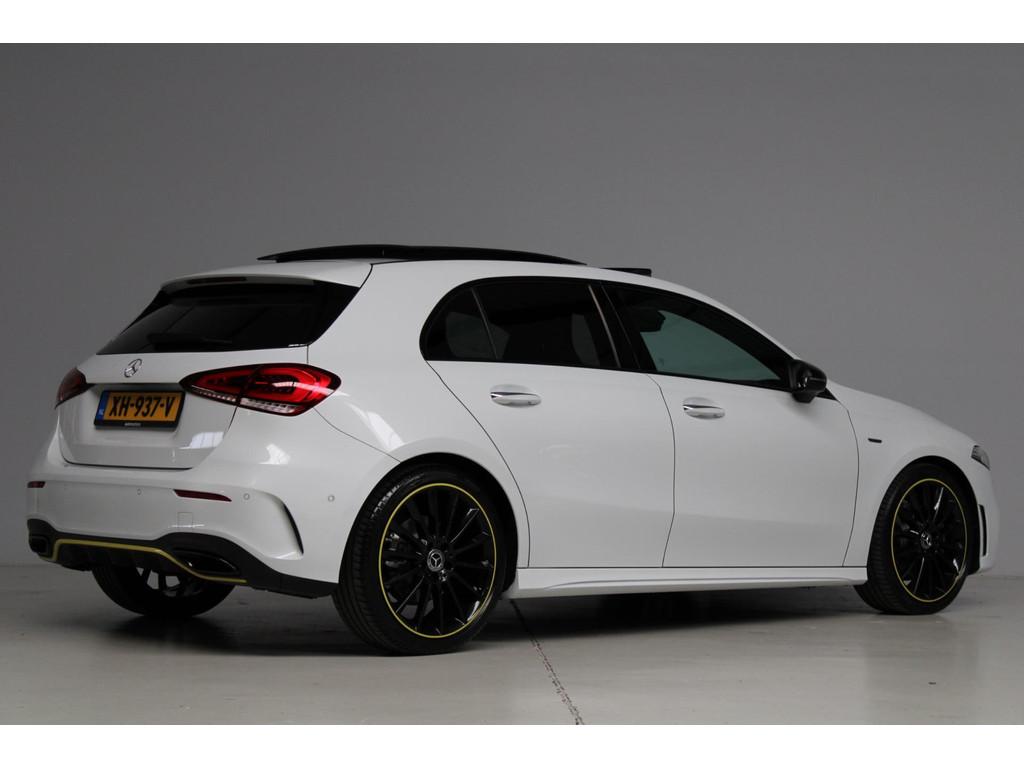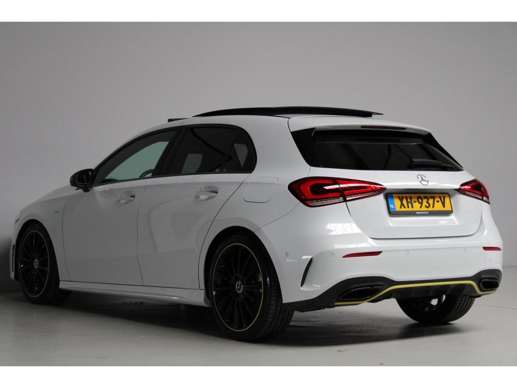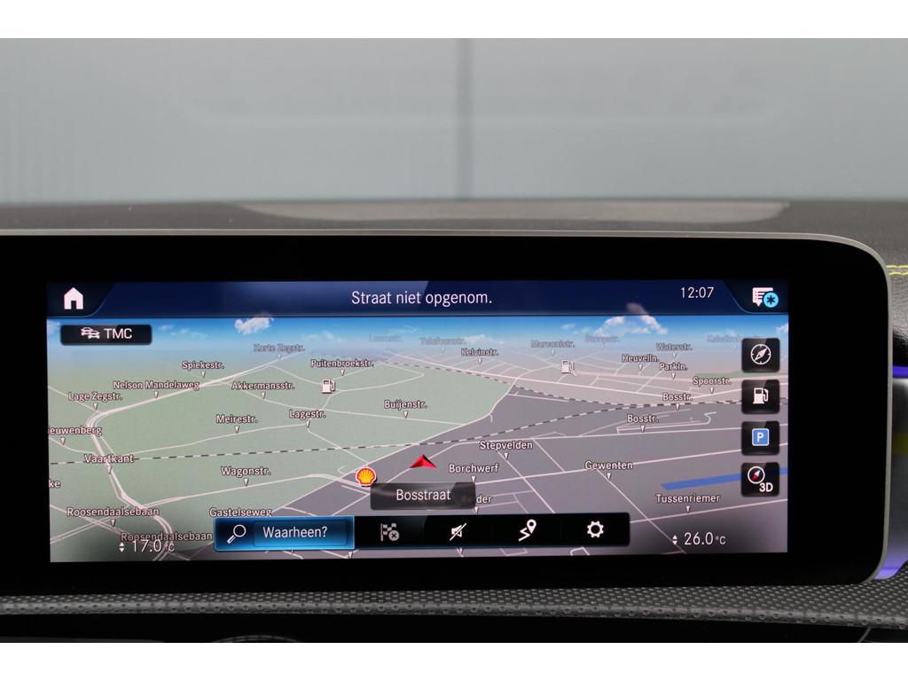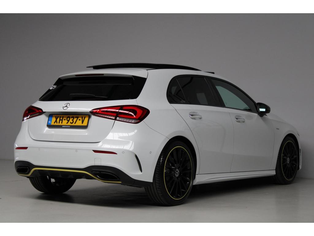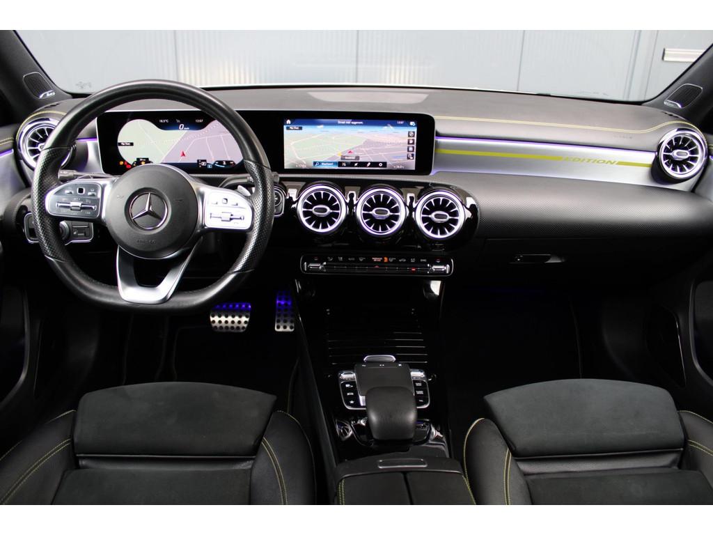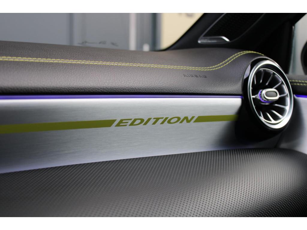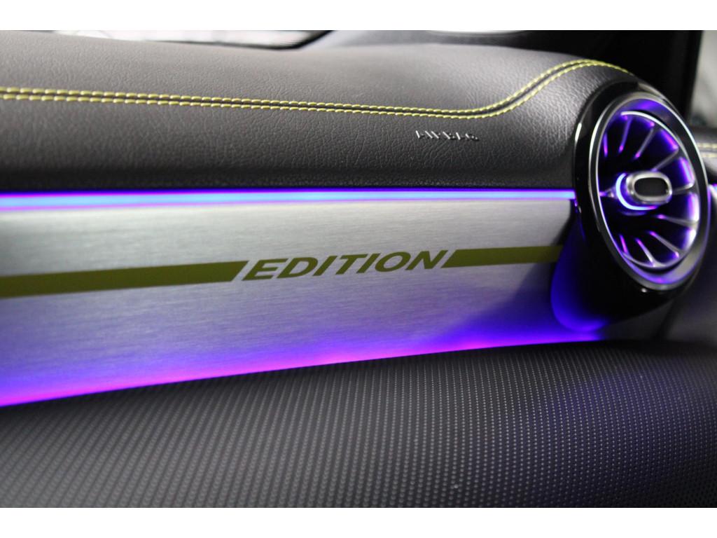 AMG-styling, AMG Line, Accident Avoidance System, Achterbank in delen neerklapbaar, Achteruitrijcamera, Airbag(s) hoofd achter, Airbag(s) hoofd voor, Airbag(s) knie, Airbag(s) side voor, Airbag bestuurder, Airbag passagier, Airco automatisch, Aluminium interieur afwerking, Anti Blokkeer Systeem (ABS), Armsteun achter, Armsteun voor, Audio installatie, Audio installatie premium, Bandenspanningscontrolesysteem, Binnenspiegel automatisch dimmend, Bots waarschuwing systeem, Brake Assist System, Buitenspiegel(s) automatisch dimmend, Buitenspiegels elektrisch inklapbaar, Chroom delen exterieur, Comfortstoel(en), Connected services, Cruise control, Dimlichten automatisch, Edition 1 pakket, Electronic Stability Program (ESP), Electronic climate controle, Elektrisch glazen panorama-dak, Extra getint glas, Getint warmtewerend glas, Keyless entry, Keyless start, LED dagrijverlichting, LED koplampen, Lederen stuurwiel, Metallic lak, Multimedia-voorbereiding, Navigatie-systeem full map + hard disk, Night-pakket, Parkeer-assistent, Parkeersensor achter, Parkeersensor voor, Regensensor, Rijstrooksensor met correctie, Side skirts, Sportstoelen, Sportstuur, Spraakbediening, Start/stop systeem, Startblokkering, Stof/kunstlederen bekleding, Stuurwiel multifunctioneel, Telefoonintegratie premium, Variabele stuuroverbrenging, Verkeersbord detectie, Verwarmde voorstoelen, Volledig digitaal instrumentenpaneel, WiFi voorbereiding
