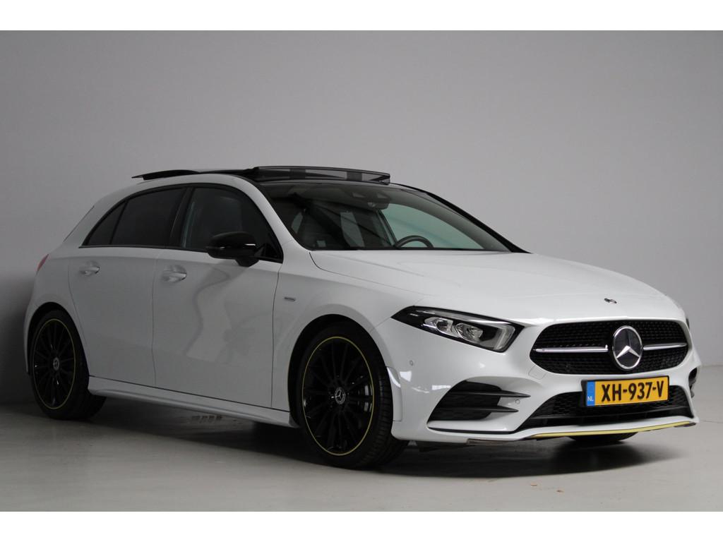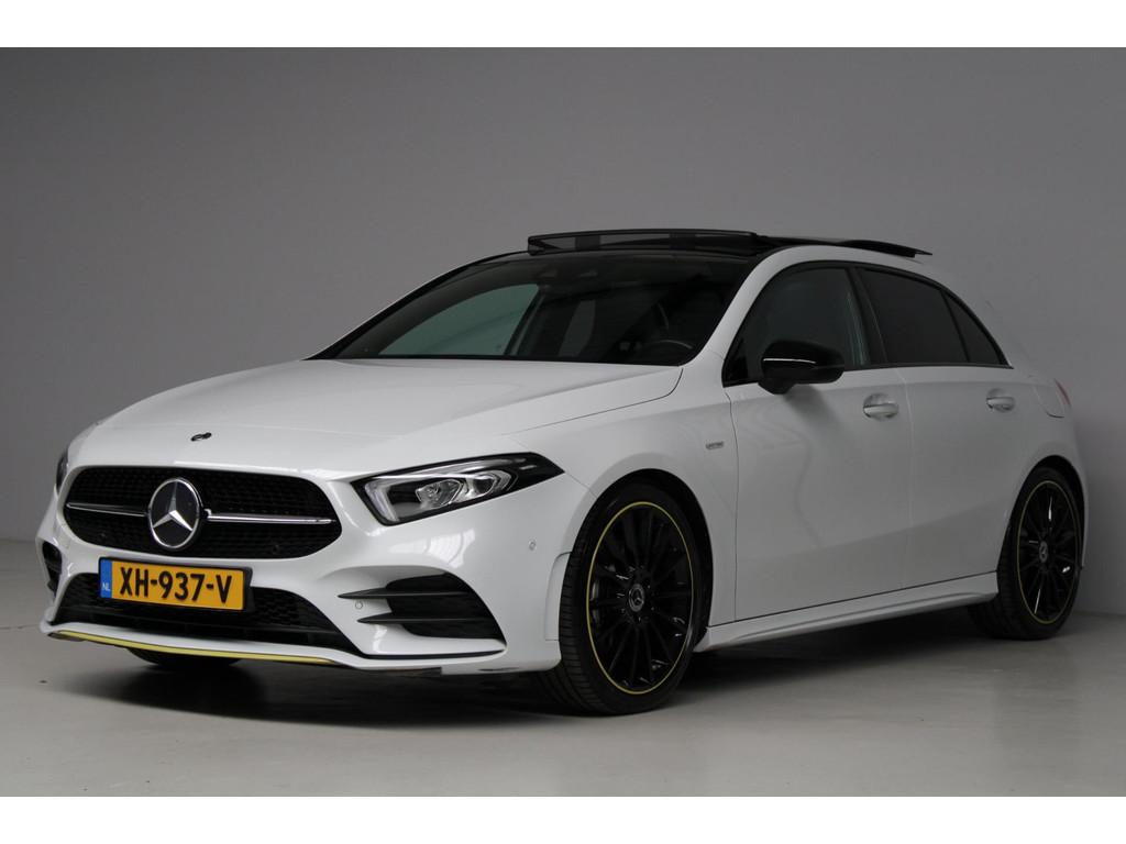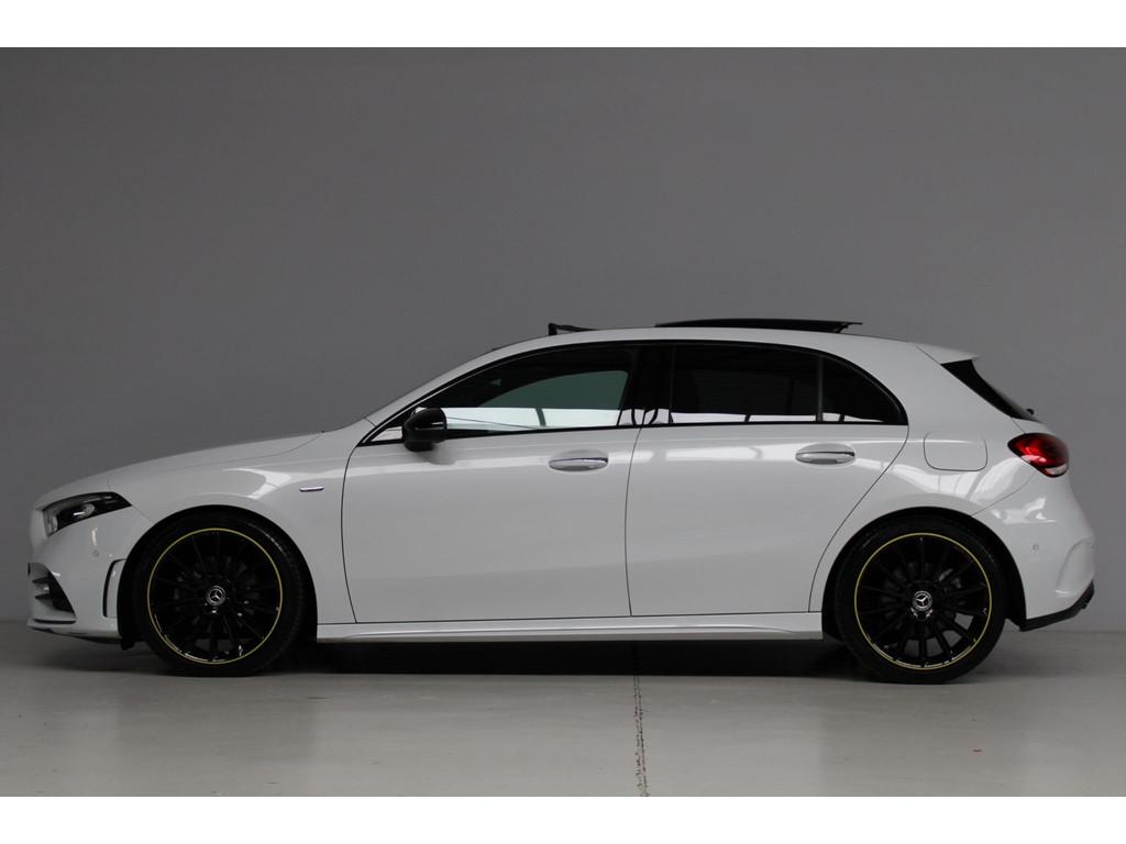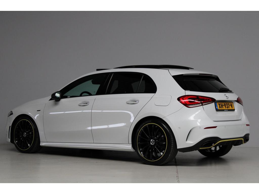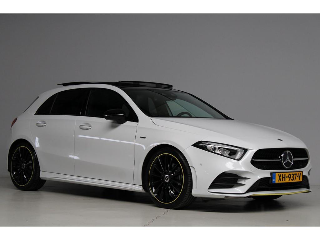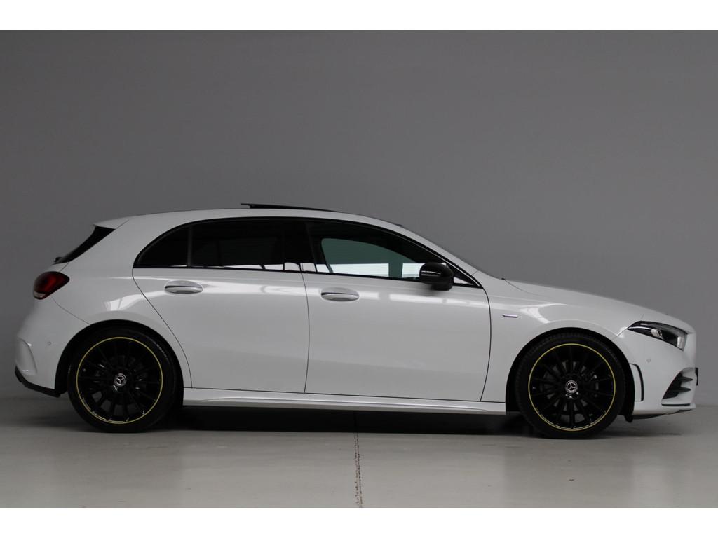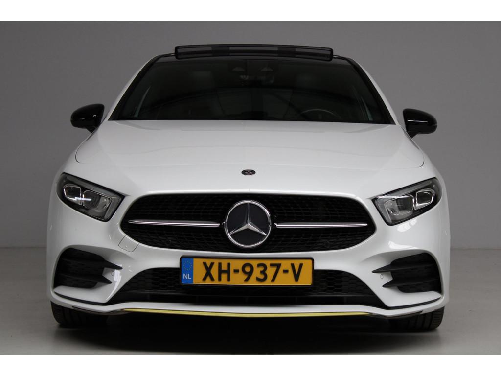 AMG-styling, AMG Line, Accident Avoidance System, Achterbank in delen neerklapbaar, Achteruitrijcamera, Airbag(s) hoofd achter, Airbag(s) hoofd voor, Airbag(s) knie, Airbag(s) side voor, Airbag bestuurder, Airbag passagier, Airco automatisch, Aluminium interieur afwerking, Anti Blokkeer Systeem (ABS), Armsteun achter, Armsteun voor, Audio installatie, Audio installatie premium, Bandenspanningscontrolesysteem, Binnenspiegel automatisch dimmend, Bots waarschuwing systeem, Brake Assist System, Buitenspiegel(s) automatisch dimmend, Buitenspiegels elektrisch inklapbaar, Chroom delen exterieur, Comfortstoel(en), Connected services, Cruise control, Dimlichten automatisch, Edition 1 pakket, Electronic Stability Program (ESP), Electronic climate controle, Elektrisch glazen panorama-dak, Extra getint glas, Getint warmtewerend glas, Keyless entry, Keyless start, LED dagrijverlichting, LED koplampen, Lederen stuurwiel, Metallic lak, Multimedia-voorbereiding, Navigatie-systeem full map + hard disk, Night-pakket, Parkeer-assistent, Parkeersensor achter, Parkeersensor voor, Regensensor, Rijstrooksensor met correctie, Side skirts, Sportstoelen, Sportstuur, Spraakbediening, Start/stop systeem, Startblokkering, Stof/kunstlederen bekleding, Stuurwiel multifunctioneel, Telefoonintegratie premium, Variabele stuuroverbrenging, Verkeersbord detectie, Verwarmde voorstoelen, Volledig digitaal instrumentenpaneel, WiFi voorbereiding