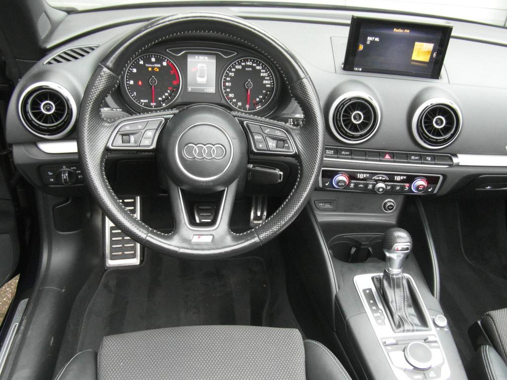 Achterruitverwarming, Airbag(s) hoofd achter, Airbag(s) hoofd voor, Airbag(s) knie, Airbag(s) side voor, Airbag bestuurder, Airbag passagier, Airco (automatisch), Alarm klasse 1(startblokkering), Aluminium interieur afwerking, Anti Blokkeer Systeem, Anti doorSlip Regeling, Armsteun voor, Audio installatie premium, Autotelefoon voorbereiding, Bandenspanningscontrolesysteem, Binnenspiegel automatisch dimmend, Bluetooth telefoonvoorbereiding, Buitenspiegels elektrisch verstel- en verwarmbaar, Bumpers in carrosseriekleur, Comfortstoel(en), Connectivity-pakket, Cruise control, Dimlichten automatisch, Elektrische ramen voor en achter, Elektronisch Sper Differentieel, Elektronisch Stabiliteits Programma, Getint glas, Lederen/stof bekleding, Lederen sportstuur, Lichtmetalen velgen, Lichtmetalen velgen multi-spaaks 17", Metaalkleur, Multimedia systeem, Navigatiesysteem full map, Parkeersensor achter, Regensensor, S Line exterieur, Sportonderstel, Sportstoelen, Start/stop systeem, Stuurbekrachtiging snelheidsafhankelijk, Stuurwiel multifunctioneel, Voorstoelen in hoogte verstelbaar, Voorstoelen verwarmd, Warmtewerend glas, Xenon verlichting, Zwarte hemelbekleding, bi-xenon koplampen, centrale vergrendeling met afstandsbediening, koplampreiniging, smartphone integratie