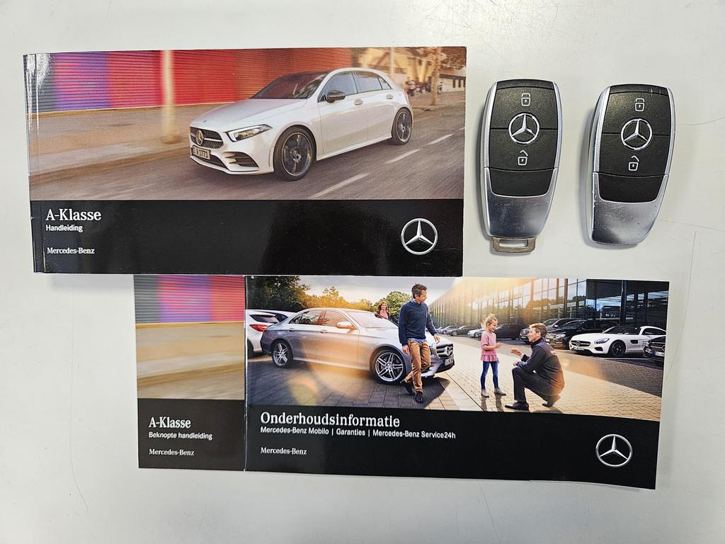 12Volt aansluiting, 16" vijf-dubbelspaaks lichtmetalen velgen (R78), Achterbank in delen neerklapbaar, Achteruitrijcamera, Airbag(s) hoofd achter, Airbag(s) hoofd voor, Airbag(s) knie, Airbag(s) side voor, Airbag bestuurder, Airbag passagier, Airco (automatisch), Alarm klasse 1(startblokkering), Anti Blokkeer Systeem, Apple Carplay/Android Auto, Armsteun voor, Autonomous Emergency Braking, Bandenspanningscontrolesysteem, Binnenspiegel automatisch dimmend, Bluetooth telefoonvoorbereiding, Brake Assist System, Buitenspiegel(s) automatisch dimmend, Buitenspiegels elektrisch inklapbaar, Buitenspiegels elektrisch verstelbaar, Buitenspiegels verwarmbaar, Bumpers in carrosseriekleur, Centrale deurvergrendeling met afstandsbediening, Chroom delen exterieur, Comfortstoel(en), Connected services, Cruise control, Dab, Derde remlicht, Dimlichten automatisch, Elektronisch Stabiliteits Programma, Getint glas, Keyless start, LED dagrijverlichting, Lederen stuurwiel, Lichtmetalen velgen 16", Mercedes-Benz navigatie (365), Metaalkleur, Mojavezilver (859), Multifunctioneel stuur leder (L3E), Multimedia-voorbereiding, Navigatiesysteem full map + hard disk, Parkeer assistent, Parkeersensor voor en achter, Passagiersstoel in hoogte verstelbaar, Radio, Regensensor, Rijstrooksensor met correctie, Side-skirts, Smartphone-integratie (14U), Spraakbediening, Start/stop systeem, Stuurbekrachtiging, Stuur verstelbaar, Stuurwiel multifunctioneel, Style (PYB), Style Pack, Variabele stuuroverbrenging, Verkeersbord detectie, Voorstoelen in hoogte verstelbaar, WiFi voorbereiding, Zwarte hemelbekleding, bots waarschuwing systeem, electronic climate control, kunstlederen/stof bekleding