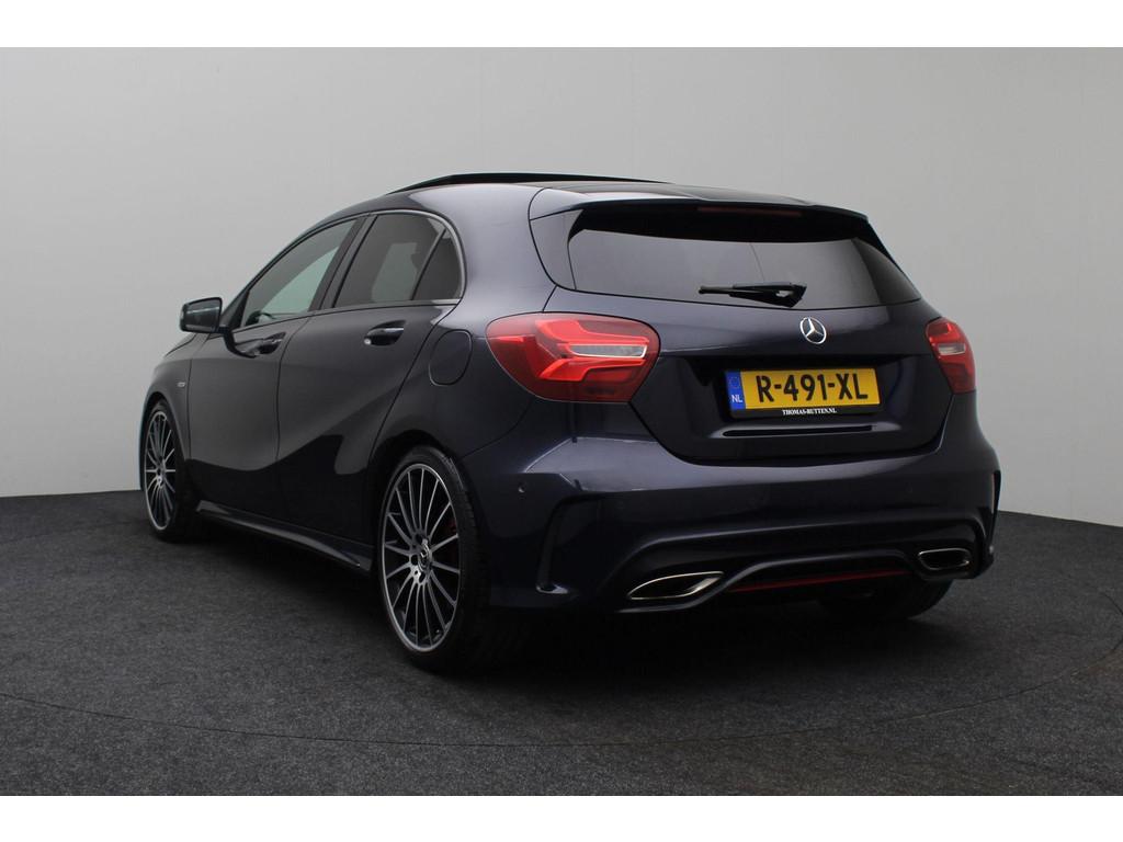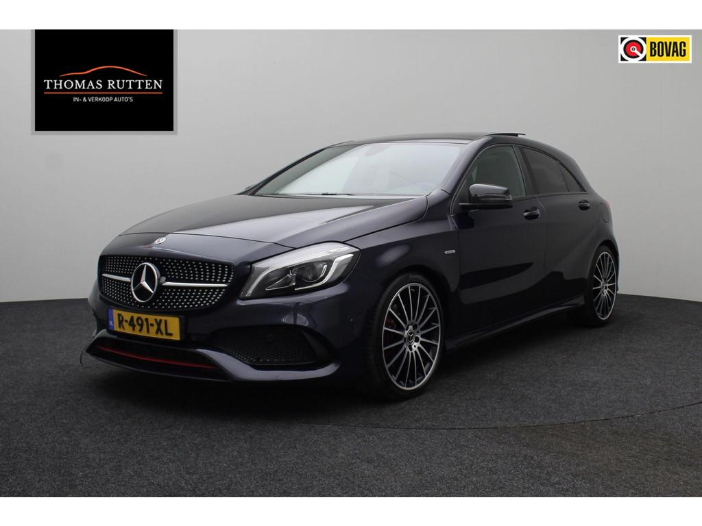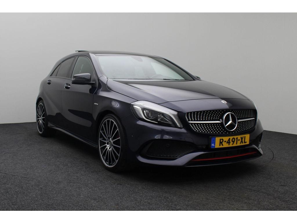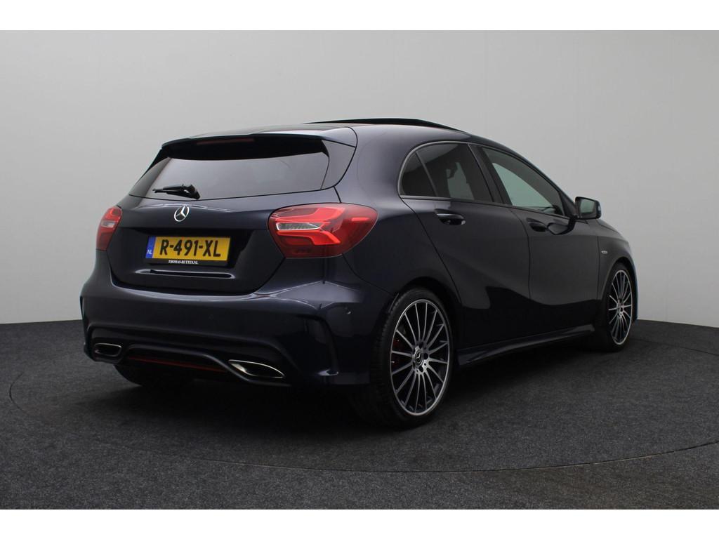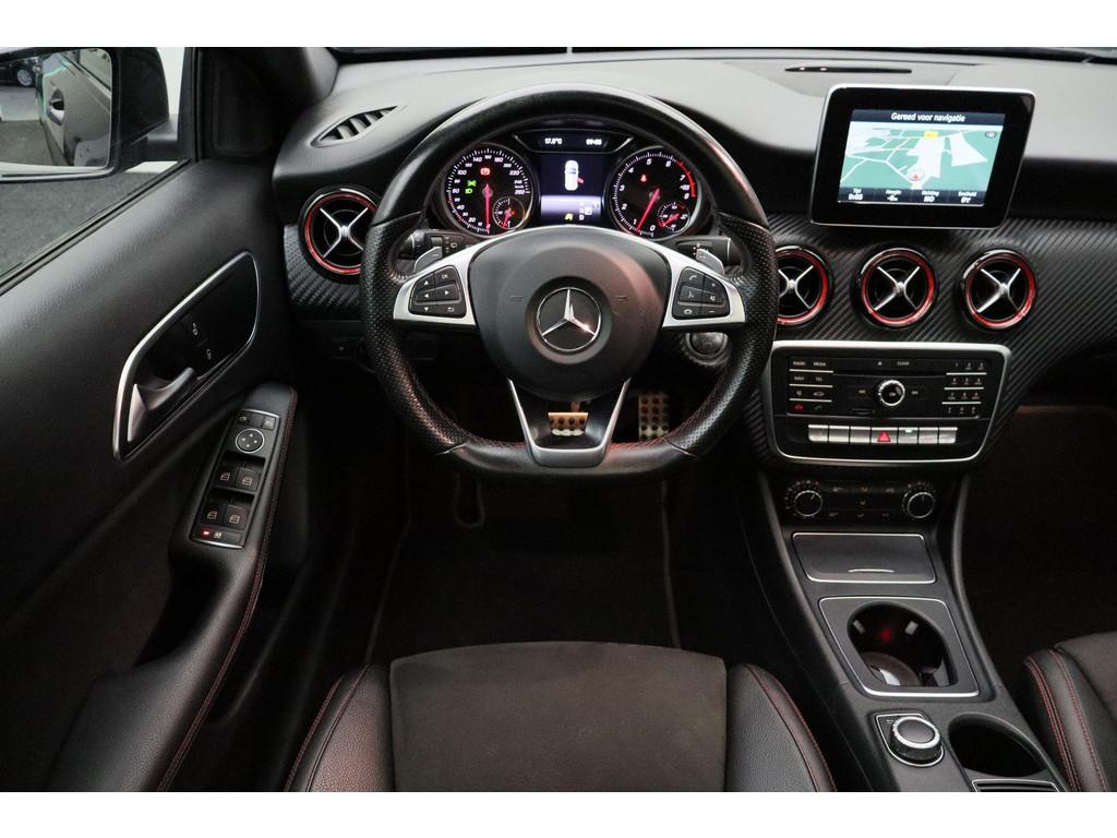 5-gear transmission (428), 7-speed automatic dual-clutch transmission (429), AMG FLOOR MATS (V43), AMG sport package (950), AMG styling package (front spoiler, slide skirts and rear apron) (772), ANDROID AUTO SMARTPHONE INTEGRATION (17U), APPLE CARPLAY SMARTPHONE INTEGRATION (16U), AUTOMATIC TRANSMISSION (GA), Adaptive brake lights (K11), Alternative refrigerant (2U8), Audio 20 radio navigation-capable NTG5 (522), Boekjes, COC DOCUMENT FOR EURO6 TECH. WITH REG. CERT. PART 2 (969), COLLISION WARNING SYSTEM WITH ACTIVE BRAKE APPLICATION FCW-STOP (258), COMMUNICATION MODULE (UMTS) FOR THE USE OF MERCEDES ME CONNECT SERVICES (360), CONTROL CODE FOR RASTATT/MERCOSUL PLANT (J31), CREWBUS (FS), Changeover of roof liner process at Rastatt plant (194), Conti tires for taxi (235), Control code for service interval 25000 km (K13), DISPLACEMENT 2.0 LITER (M20), DRIVE PROGRAM SELECTION SWITCH (AGILITY SELECT) (B59), EASY-PACK LIFTGATE (890U), ECO START/STOP FUNCTION (B03), ENGINE UPRATED (M014), Exhaust treatment, Euro 6 technology (927), FBS 4 (A17), FEDERAL REPUBLIC OF GERMANY (2XXL), Fabric/imitation leather/microfiber (650A), Fabric/imitation leather/microfiber - black/anthracite (651A), GARMIN® MAP PILOT (357), GERMANY (229L), GLEICHLAUFKOERPER sTRENGTHENS (28A), HEADLINER, BLACK FABRIC (51U), Headunit europe/CIS-states/Monoglei (3U1), ILLUMINATED DOOR SILL (U25), INLINE 4-CYLINDER SPARK IGNITION ENGINE M270 (M270), KEYLESS-START (893), KNEEBAG (294), LANGUAGE OF INSTRUMENT CLUSTER/HU - GERMAN (332B), LEFT-HAND STEERING (L), LEFT FRONT AXLE HALF (VL), Live Traffic capability (367), MB-Mobilo with DSB and GGD (255B), MB CONNECT - REMOTE ONLINE (HERMES) (11U), MODEL SERIES 176 (F176), NIGHT PACKAGE (P55), No code designations currently available (G011), OPERATOR'S MANUAL + SERVICE BOOKLET-GERMAN (02B), PANORAMIC SLIDING SUNROOF/GLASS ROOF (413), Pedestrian protection - Active hood (U60), Plant control code (JM6), RADIATOR GRILLE IN DIAMOND LOOK (5U4), REAR AXLE (HA), REFRIGERANT COMPRESSOR WITH MAGNETIC CLUTCH (B09), RIGHT FRONT AXLE HALF (VR), Rear belt status indicator (U01), SAFETY VEST - DRIVER (70B), SALES CONTROL CODE FOR CODE 475 REQUEST (6P5), SMARTPHONE INTEGRATION (14U), SPEED/LOAD INDEX 91Y XL (V94), SPORT EDITION (P84), SUMMER TYRES (R01), Seat Comfort package (U59), Single CD drive (818), Software control for unpowered in position D (K27), THEN (FW), TIRE PRESSURE MONITOR (TPM) (475), VEHICLES WITH 4MATIC/ALL-WHEEL DRIVE (M005), Voltage dip protector for start/stop system (4U7), Windowbags (290), airbag in steering wheel (442), air conditioner (580), automatic antenna and front loudspeaker – without radio set (538), auto pilot system (351), change of model year, the last figure shows the new model year (808), code 481 and 485 (486), code 630 and 634 (632), cruise control (cruise control) (440), cupholder (309), elimination of type sign on trunk lid (260), glass shaded (840), heat-insulating glass all around, band filter grey, rear window pane single-sheet safety glass (693), light and sight package (U62), rain sensor for windshield wipers (345), reading lamp in the rear (877), seat heater (873), steering wheel and gearshift lever in leather trim (280), sun visor with vanity mirror, illuminated (543), wheel cover for AMG wheels (776)