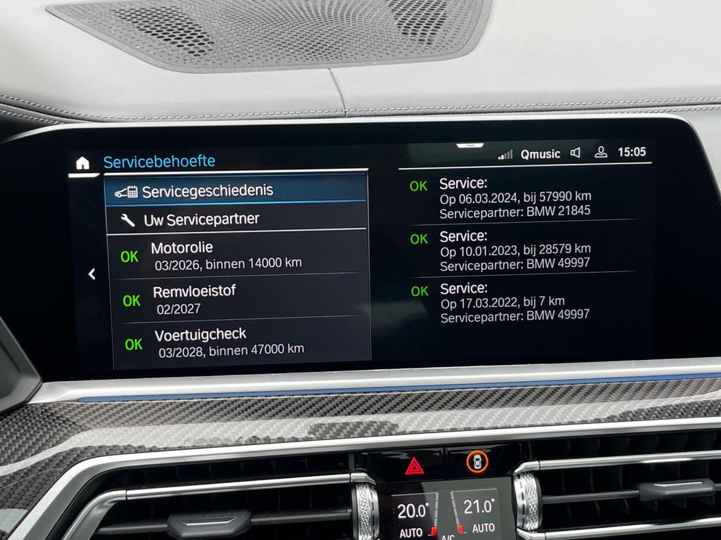 "Lichtmetalen velgen 22""", 360gr camera, Accident Avoidance System, Achterbank in delen neerklapbaar, Achteropkomend verkeer waarschuwing, Achterruit apart te openen, Achteruitrij assistent, Achteruitrijcamera, Adaptief Demping Systeem (ADS), Adaptive Cruise Control, Afdaal assistent, Airbag(s) hoofd achter, Airbag(s) hoofd voor, Airbag(s) knie, Airbag(s) side voor, Airbag bestuurder, Airbag passagier, Airco automatisch, Alarm klasse 3, Aluminium delen exterieur, Aluminium interieur afwerking, Ambiance-verlichting interieur, Android Auto, Anti Blokkeer Systeem (ABS), Apple Carplay, Armsteun achter, Armsteun voor, Audio installatie high-end, Audio installatie premium, Autotelefoonvoorbereiding met Bluetooth, BMW Laserlicht, BMW display sleutel, Bandenspanningscontrolesysteem, Binnenspiegel automatisch dimmend, Boordcomputer, Bots herkenning en activatie, Bots waarschuwing systeem, Buitenspiegel(s) automatisch dimmend, Buitenspiegels elektrisch inklapbaar, Buitenspiegels elektrisch verstelbaar, Buitenspiegels verwarmbaar, Carbon-pakket, Centrale deurvergrendeling met afstandsbediening, CoPilot Pack, Comfort Access pakket, Comfortstoel(en), Connected services, Cruise control, Cruise control adaptief met Stop&Go, DAB-ontvanger, DAB-tuner, Dakrails, Dimlichten automatisch, Dodehoekdetectie met correctie, Dodehoek detector, Driving Assistant, Driving Assistant Plus, Electronic Stability Program (ESP), Elektrisch bedienbare achterklep, Elektrisch bedienbare achterklep met sensorsturing, Elektrisch glazen panorama-dak, Elektrisch verstelbare bestuurdersstoel met geheugen, Extra getint glas, Grootlicht-assistent, Harman Kardon speakers, Head-up display, Hill hold-functie, Keyless entry, Keyless start, Koplampen adaptief, Kruisend verkeer detectie, LED achterlichten, LED koplampen, LED koplampen met laser, LED mistlampen, Lederen bekleding, Lederen sportstuur, Lendesteunen (verstelbaar), Luchtvering, M-pakket exterieur, M Aerodynamica, M Sportpakket, Merino-leder, M pakket interieur, Multimedia-voorbereiding, Navigatie-systeem full map + hard disk, Oplaadmogelijkheid, Parkeer-assistent, Parkeersensor achter, Parkeersensor voor, Radio, Regensensor, Rijstrooksensor, Rijstrooksensor met correctie, Rondomzicht camera, Ruitensproeiers verwarmbaar, Safety-pack, Schakelmogelijkheid aan stuurwiel, SkyLounge, Sluitbekrachtiging, Sportstoelen, Sportstuur, Spraakbediening, Start/stop systeem, Stoel ventilatie voor, Stuurbekrachtiging snelheidsafhankelijk, Stuur verstelbaar, Stuurwiel multifunctioneel, Stuurwiel verwarmd, Swarovski kristal versnellingspook, Telefoonintegratie premium, Tractie Controle Systeem (TCS), Trekhaak elektrisch uitklapbaar, Uitwijk assistent, Verkeersbord detectie, Vermoeidheids herkenning, Verwarmde voorstoelen, Volledig digitaal instrumentenpaneel, Voorstoel(en) met massagefunctie, adaptieve led koplampen, donkere hemelbekleding, elektrisch verstelbare stoel(en) met geheugen, keyless entry, keyless go, massage-functie voorstoelen, panoramadak, softclose portieren, sportstoelen, stoelverwarming, wegklapbare trekhaak