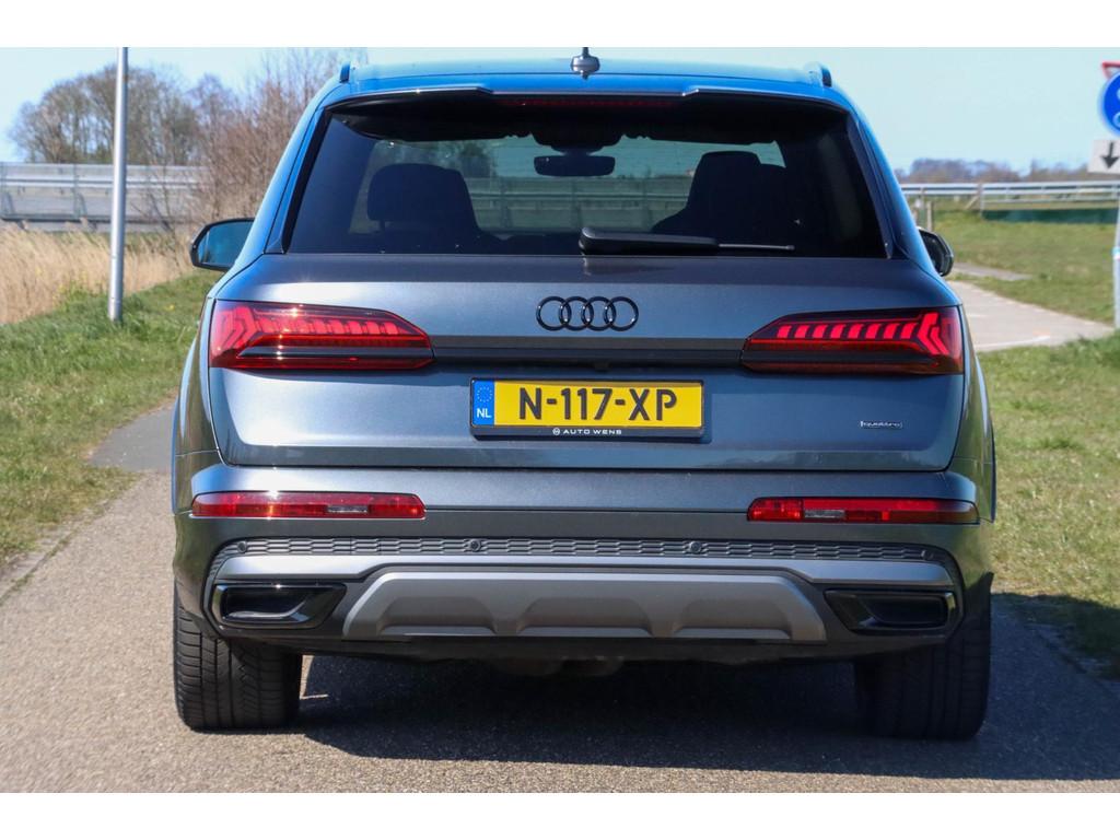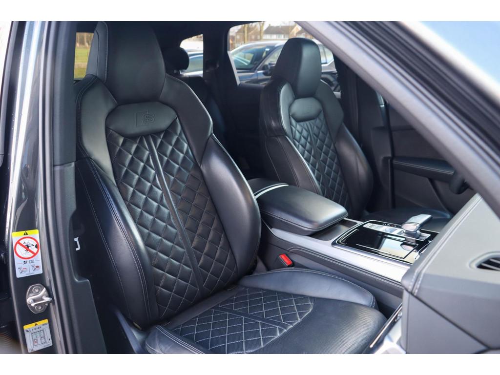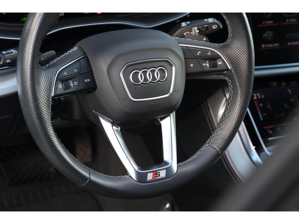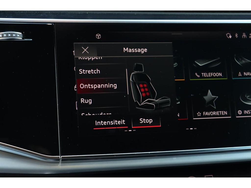 Achterbank plus (5KA), Achteruitrijcamera (KA2), Anti Blokkeer Systeem, Anti doorSlip Regeling, Audi smartphone interface (IU1), Automatische airconditioning met vier zones (9AE), Autonomous Emergency Braking, Bang & Olufsen Advanced Soundsystem (8RF), Bekleding leder "Valcona" met geruit patroon (N0Q), Blanke raamlijsten (4ZB), Buitenspiegelbuizing in carroseriekleur (6FA), Buitenspiegels, elektrisch inklapbaar met geheugenfunctie (6XF), Decorinleg, aluminium spectrum (7TF), Digitale radio ontvangst (QV3), Elektronisch Stabiliteits Programma, HD Matrix LED-koplampen met Audi laserlicht (PXB), Head-up Display (KS1), Interieurvoorverwarming (PK6), LED achterlichten, LED dagrijverlichting, Lederpakket onder (7HJ), Middenarmsteun vóór, comfort (6E6), Parkeerhulp vóór en achter (7X2), Privacy glas (QL5), S Line exterieur, Scheidingsnet (3CX), Stoelen, vóór en achter verwarmbaar (4A4), Stoelen vóór, elektrisch verstelbaar met geheugen voor bestuurder- en bijrijdersstoel (PV6), Stoelventilatie en massagefunctie vóór (4D8), Velgen, gegoten lichtmetaal 9,5J x 21 "10-spaak-rotor"-design (42P), WiFi voorbereiding, Zij-airbags achter (4X4), alarm klasse 3, bagagedek, bandenspanningscontrolesysteem, bestuurdersairbag, binnenspiegel automatisch dimmend, bots herkenning en activatie, buitenspiegels elektrisch inklapbaar, buitenspiegels elektrisch verstel- en verwarmbaar, centrale deurvergrendeling met afstandsbediening, connected services, cruise control, dakspoiler, dimlichten automatisch, electronic climate controle, elektrisch bedienbare achterklep, elektrische ramen voor en achter, elektrisch verstelbare bestuurdersstoel, elektrisch verstelbare passagiersstoel, hill hold functie, hoofd airbag(s) achter, hoofd airbag(s) voor, hoofdsteunen actief, lederen stuurwiel en versnellingspook, lendesteunen (verstelbaar), luchtvering, metallic, multimedia-voorbereiding, navigatiesysteem full map, oplaadmogelijkheid, parkeersensor achter, passagiersairbag, regensensor, rijstrooksensor, ruitensproeiers verwarmbaar, schakelmogelijkheid aan stuurwiel, sportstoelen, start/stop systeem, stuurbekrachtiging, stuur verstelbaar, stuurwiel multifunctioneel, verkeersbord detectie, volledig digitaal instrumentenpaneel, voorstoelen verwarmd, warmtewerend glas, zij airbag(s) voor