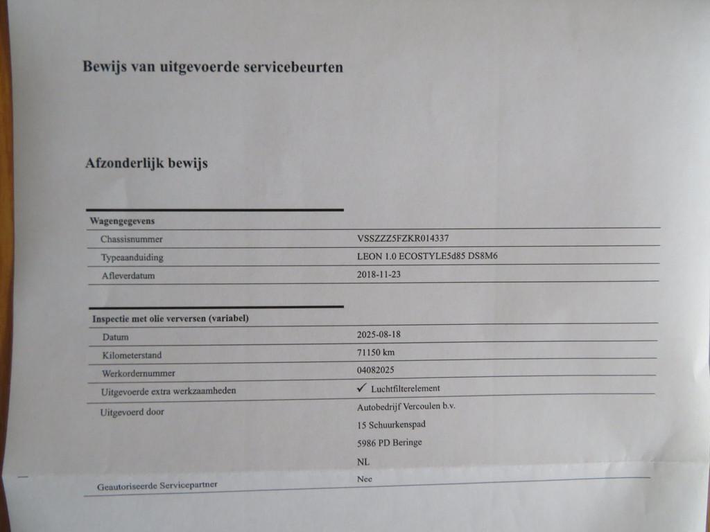 1e eigenaar, 12 volts aansluiting, APK: tm 23 november 2026 (zonder adviespunten), Achterbank in delen neerklapbaar, Achteruitrijcamera, Airbag(s) hoofd achter, Airbag(s) hoofd voor, Airbag(s) knie, Airbag(s) side voor, Airbag bestuurder, Airbag passagier, Airco automatisch, Anti Blokkeer Systeem (ABS), Apple Carplay / Android Auto, Armsteun voor, Audio installatie, Autotelefoonvoorbereiding met Bluetooth, Bandenspanningscontrolesysteem, Bestuurdersstoel in hoogte verstelbaar, Binnenspiegel automatisch dimmend, Boordcomputer, Buitenspiegels elektrisch verstelbaar, Buitenspiegels verwarmbaar, Bumpers in carrosseriekleur, Centrale deurvergrendeling met afstandsbediening, Cruise control, DAB-ontvanger, Dimlichten automatisch, Electronic Stability Program (ESP), Elektrische ramen achter, Elektrische ramen voor, Extra getint glas, Hill hold-functie, ISO-Fix, LED dagrijverlichting, LED koplampen, Lederen stuurwiel, Lederen versnellingspook, Lendesteunen (verstelbaar), Mistlampen voor, Multimedia-voorbereiding, NIET-rokersauto, Navigatie-systeem full map, Navigatie full map, Parkeersensor achter, Parkeersensor voor, Passagiersstoel in hoogte verstelbaar, Radio, Recent onderhoudsbeurt gehad, Regensensor, Sportonderstel, Spraakbediening, Startblokkering, Stuurwiel multifunctioneel, Telefoonintegratie premium, Tractie Controle Systeem (TCS), Upgrade Professional, Vervolgbotsing preventie, blue tooth (Telefoon en muziekstreamen), multimedia-ondersteuning USB-MP3, nationale autopas, onderhoudshistorie aanwezig, privacy glass, stuurwiel multifunctioneel