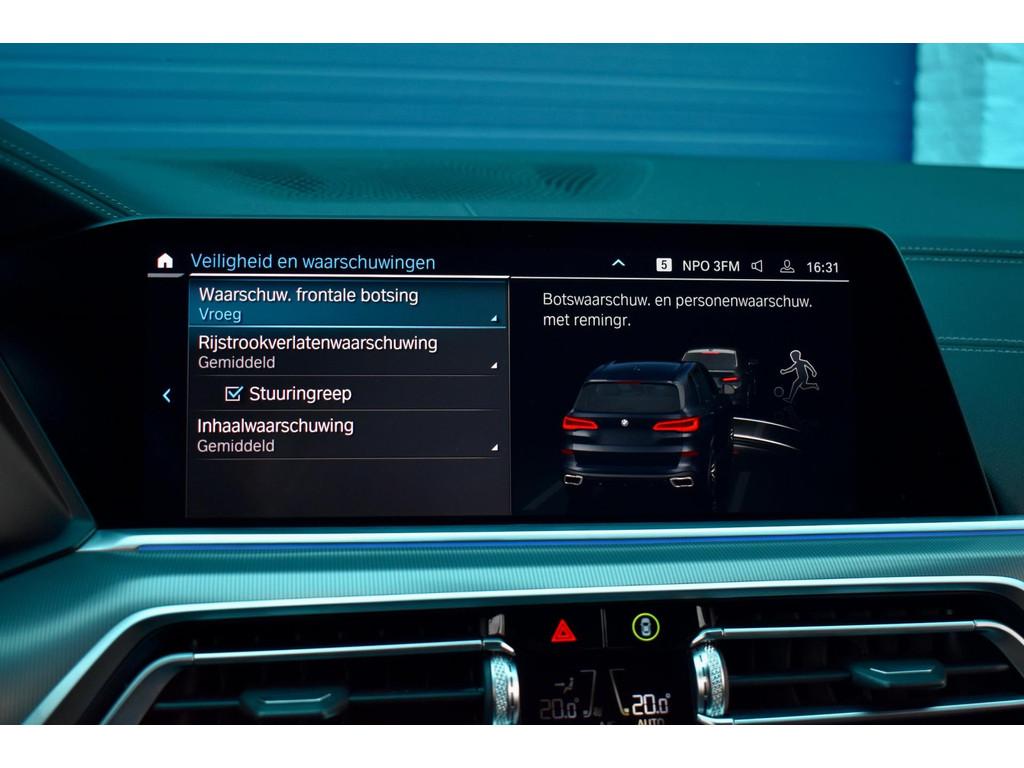 "Lichtmetalen velgen 5-spaaks 21""", 360° Camera, Accident Avoidance System, Achterbank in delen neerklapbaar, Achteropkomend verkeer waarschuwing, Achterruit apart te openen, Achteruitrij assistent, Achteruitrijcamera, Active Guard Plus, Active protection, Adaptief Demping Systeem (ADS), Adaptive cruise control, Afdaal assistent, Airbag(s) hoofd achter, Airbag(s) hoofd voor, Airbag(s) knie, Airbag(s) side voor, Airbag bestuurder, Airbag passagier, Airco automatisch, Alarm klasse 3, Aluminium interieur afwerking, Anti Blokkeer Systeem (ABS), Armsteun achter, Armsteun voor, Audio Media Pack, Audio installatie high-end, Autotelefoonvoorbereiding met Bluetooth, BMW Live cockpit plus, Bandenspanningscontrolesysteem, Binnenspiegel automatisch dimmend, Boordcomputer, Bots herkenning en activatie, Bots waarschuwing systeem, Buitenspiegel(s) automatisch dimmend, Buitenspiegels elektrisch inklapbaar, Buitenspiegels elektrisch verstelbaar, Buitenspiegels verwarmbaar, Carplay, Centrale deurvergrendeling met afstandsbediening, CoPilot Pack, Comfort Access pakket, Comfortstoel(en), Comforttoegang, Connected services, Cruise control, Cruise control adaptief met Stop&Go, DAB-ontvanger, Dakrails, Dimlichten automatisch, Dodehoekdetectie met correctie, Dodehoek detector, Draadloze telefoonlader, Driving Assistant, Driving Assistant Plus, Driving assistant plus, Electronic Stability Program (ESP), Elektrisch bedienbare achterklep, Elektrisch bedienbare achterklep met sensorsturing, Elektrisch glazen panorama-dak, Elektrisch verstelbare bestuurdersstoel met geheugen, Entertainment system, Extra getint glas, Geluidwerend glas, Harman Kardon Audio, Head-up display, Hill hold-functie, Keyless entry, Keyless start, Koplampen adaptief, Kristalpakket, Kruisend verkeer detectie, LED achterlichten, LED koplampen, LED mistlampen, Lane assist, Lederen bekleding, Lederen interieurdelen, Lederen stuurwiel, Led verlichting, Lendesteunen (verstelbaar), Luchtvering, Luxe lederen bekleding, M-Sport Exterieur, M-Sport Interieur, M Aerodynamica, M Dakreling Shadow line, M Sportpakket, Metallic lak, M koplampen Shadow line, Multimedia-voorbereiding, Navigatie-systeem full map + hard disk, Oplaadmogelijkheid, Panoramadak, Panoramadak Skylounge, Parkeer-assistent, Parkeersensor achter, Parkeersensor voor, Radio, Regensensor, Rijstrooksensor, Rijstrooksensor met correctie, Rondomzicht camera, Ruitensproeiers verwarmbaar, Safety-pack, Schakelmogelijkheid aan stuurwiel, Schuif Kanteldak, Schuifdak, Sfeerverlichting, Sportstoelen, Sportstuur, Spraakbediening, Start/stop systeem, Stuurbekrachtiging snelheidsafhankelijk, Stuurhulp, Stuur verstelbaar, Stuurwiel multifunctioneel, Telefoonintegratie premium, Tractie Controle Systeem (TCS), Uitwijk assistent, Verkeersbord detectie, Vermoeidheids herkenning, Verwarmde voorstoelen, Virtual cockpit, Volledig digitaal instrumentenpaneel, WiFi voorbereiding, Zonnescherm zijruiten, Zwarte hemel