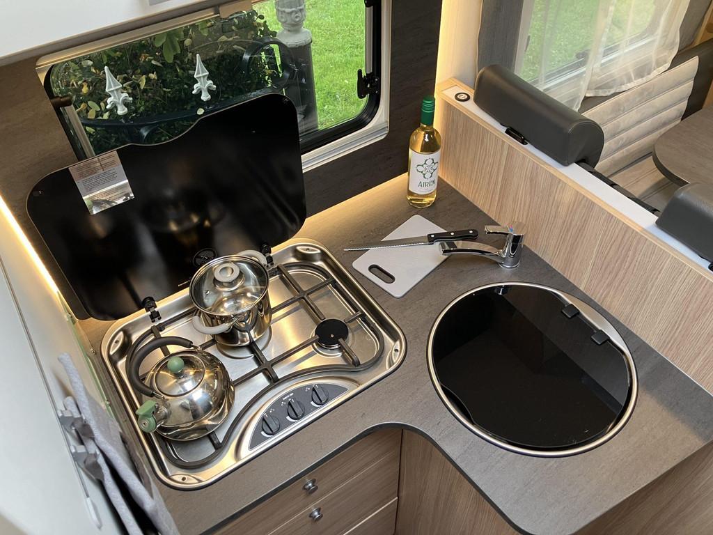 Achteruitrijd camera, Airbag, Airbag bestuurder, Airco, Anti Blokkeer Systeem (ABS), Audioinstallatie met CD-speler, Autotelefoonvoorbereiding, Boordcomputer, Buitenspiegels elektrisch verstelbaar, Centrale deurvergrendeling, Cruise control, DAB Radio, Douche, Electronic Stability Program (ESP), Elektrische ramen, Elektronische climate control, Extra verlichting, Hoofdsteunen voor, Keukenblok, Lederen bekleding, Lederen stuurwiel, Lichtmetalen velgen, Luifel, Mistlampen, Navigatiesysteem, Radio CD-speler, Stuurbekrachtiging, Toilet, Tractie Controle Systeem (TCS), Verstelbare (in hoogte) bestuurders stoel, Verstelbare stuurkolom, Zonnedak