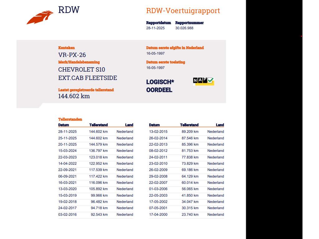 Chevrolet S10 2.2 1SB Extended Cab Apk 25-11-2026