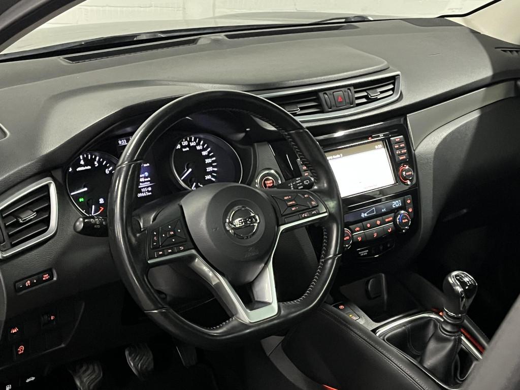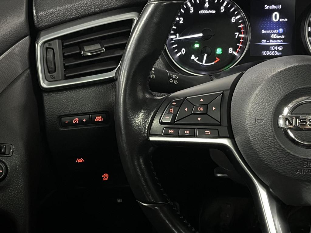 360 graden Camera, Achteruitrij camera, Airco, Anti Blokkeer Systeem, Autonomous Emergency Braking, BOVAG garantie, Bluetooth telefoonvoorbereiding, Brake Assist System, Camera, Climate control, Comfort Pack (--C--), Cruise control, DAB, DAB ontvanger, Design Pack (D----), Elektronisch Stabiliteits Programma, Keyless Start & Entry, Lane Assist, Navigatie, Nissan Safety Shield Plus (-S---), Panoramadak, Panoramisch glazen dak (-G---), Parkeersensoren voor en achter, Stoelverwarming, Trekhaak, achterbank in delen neerklapbaar, achteruitrij assistent, airco (automatisch), alarm klasse 1(startblokkering), armsteun achter, armsteun voor, audioinstallatie met CD-speler, bandenspanningscontrolesysteem, bestuurdersairbag, bestuurdersstoel in hoogte verstelbaar, binnenspiegel automatisch dimmend, buitenspiegels elektrisch inklapbaar, buitenspiegels in carrosseriekleur, chroom delen exterieur, cruise control, dakrails, dimlichten automatisch, dodehoek detectie, elektrische ramen achter, elektrische ramen voor, elektrisch verstelbare bestuurdersstoel, elektronische remkrachtverdeling, extra getint glas, grootlichtassistent, hill hold functie, hoofd airbag(s) achter, keyless entry, keyless start, lederen/stof bekleding, lederen stuurwiel en versnellingspook, lendesteunen (verstelbaar), lichtmetalen velgen 18", mistlampen voor, navigatiesysteem full map, parkeer assistent, parkeersensor voor en achter, passagiersairbag, passagiersstoel in hoogte verstelbaar, regensensor, rijstrooksensor, rondomzicht camera, spraakbediening, stuurbekrachtiging snelheidsafhankelijk, stuur verstelbaar, stuurwiel multifunctioneel, verkeersbord detectie, vermoeidheids herkenning, verwarmde voorruit, voorstoelen verwarmd, zij airbag(s) voor