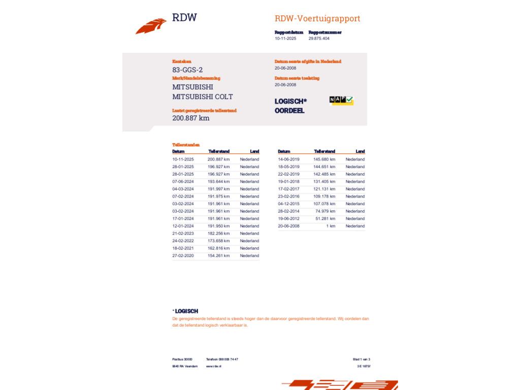 Mileage 200.916 NAP checked