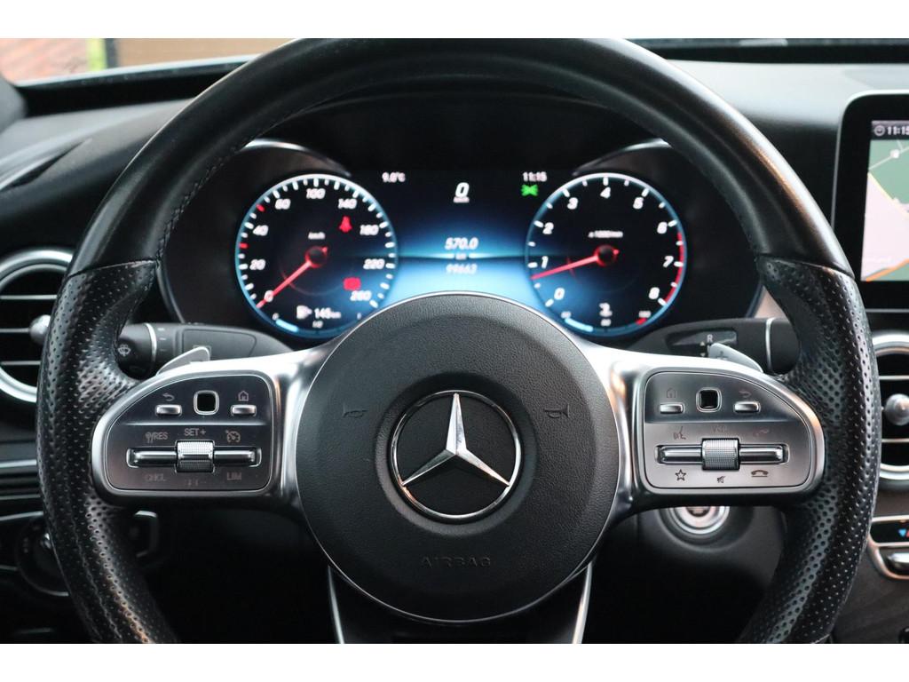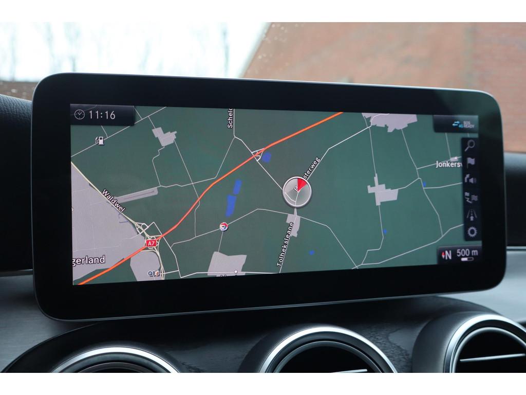 "Lichtmetalen velgen 18""", AMG-styling, Accident Avoidance System, Achterbank in delen neerklapbaar, Achteropkomend verkeer waarschuwing, Achteruitrijcamera, Airbag(s) hoofd achter, Airbag(s) hoofd voor, Airbag(s) knie, Airbag(s) side voor, Airbag bestuurder, Airbag passagier, Airco automatisch, Aluminium delen exterieur, Aluminium interieur afwerking, Anti Blokkeer Systeem (ABS), Armsteun voor, Audioinstallatie met CD-speler, Autotelefoonvoorbereiding met Bluetooth, Bandenspanningscontrolesysteem, Binnenspiegel automatisch dimmend, Buitenspiegel(s) automatisch dimmend, Buitenspiegels elektrisch inklapbaar, Buitenspiegels elektrisch verstelbaar, Buitenspiegels met verlichting, Buitenspiegels verwarmbaar, Centrale deurvergrendeling met afstandsbediening, Connected services, Cruise control, Dimlichten automatisch, Electronic Brake Distribution (EBD), Electronic Stability Program (ESP), Elektrische ramen achter, Elektrische ramen voor, Elektrisch verstelbare voorstoel(en), Extra getint glas, Hill hold-functie, LED achterlichten, LED dagrijverlichting, LED koplampen, Lederen/stoffen bekleding, Lederen stuurwiel, Lendesteunen (verstelbaar), Metallic lak, Multimedia-voorbereiding, Navigatie full map, Parkeer-assistent, Parkeersensor achter, Parkeersensor voor, Premium kleur, Regensensor, Rondomzicht camera, Schakelmogelijkheid aan stuurwiel, Sportonderstel, Sportstoelen, Sportstuur, Spraakbediening, Start/stop systeem, Startblokkering, Stuurbekrachtiging snelheidsafhankelijk, Stuurwiel multifunctioneel, Telefoonintegratie premium, Tractie Controle Systeem (TCS), Trekhaak, Vermoeidheids herkenning, Verwarmde voorstoelen, Volledig digitaal instrumentenpaneel, Warmtewerend glas
