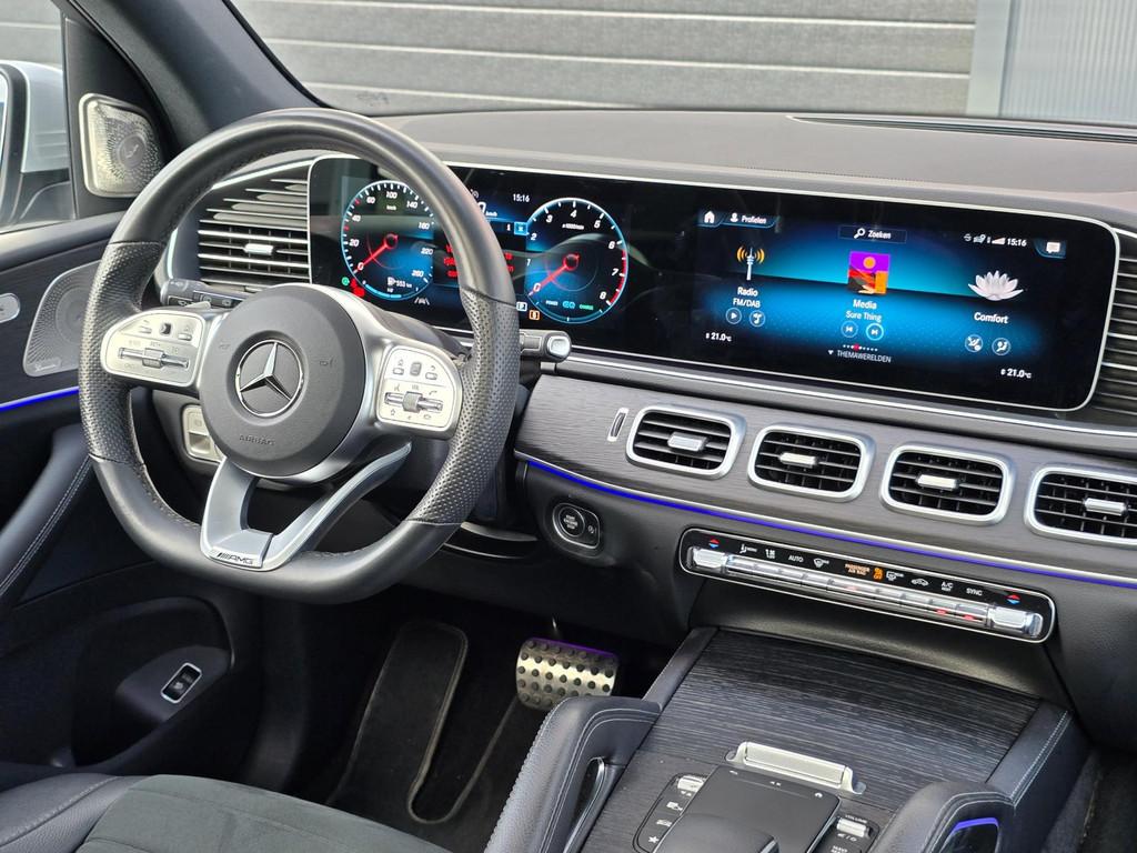 "Lichtmetalen velgen 5-spaaks 21""", "Lichtmetalen velgen 19""", "Lichtmetalen velgen 21""", 2 stoelen op derde rij, 24 maanden Mercedes Garantie, AMG-styling, AMG Line Exterieur, AMG Line Interieur, Accident Avoidance System, Achterbank elektrisch verstelbaar, Achterbank in delen neerklapbaar, Achteropkomend verkeer waarschuwing, Adaptive Cruise Control, Afdaal assistent, Airbag(s) hoofd achter, Airbag(s) hoofd voor, Airbag(s) knie, Airbag(s) side achter, Airbag(s) side voor, Airbag bestuurder, Airbag passagier, Alarmsysteem, Aluminium interieur afwerking, Anti Blokkeer Systeem (ABS), Armsteun achter, Armsteun voor, Audio installatie high-end, Audio installatie premium, Automatische niveauregeling, Automatische snelheidsbegrenzing, Autotelefoonvoorbereiding met Bluetooth, Bagagedek, Bandenspanningscontrolesysteem, Binnenspiegel automatisch dimmend, Bots herkenning en activatie, Bots waarschuwing systeem, Buitenspiegel(s) automatisch dimmend, Buitenspiegels elektrisch inklapbaar, Buitenspiegels elektrisch met geheugen, Buitenspiegels elektrisch verstelbaar, Buitenspiegels met verlichting, Buitenspiegels verwarmbaar, Camera binnen, Chroom delen exterieur, Comfortpakket achter, Connected services, Cruise control, DAB-ontvanger, Dakrails, Dodehoekdetectie met correctie, Dodehoek detector, Electronic Brake Distribution (EBD), Electronic Stability Program (ESP), Electronic climate controle, Elektrisch bedienbare achterklep met sensorsturing, Elektrische ramen achter, Elektrische ramen voor, Elektrisch glazen panorama-dak, Elektrisch verstelbare stoel(en) met geheugen, Elektrisch verstelbare stuurkolom met geheugen, Extra getint glas, Geluidwerend glas, Grootlicht-assistent, Hill hold-functie, Houtafwerking interieur, Keyless entry, Keyless start, Klasse 3 alarm, Kruisend verkeer detectie, Kunstlederen bekleding, LED achterlichten, LED dagrijverlichting, LED koplampen, Lane assist, Lederen bekleding, Lederen stuurwiel, Lendesteunen (verstelbaar), Luchtvering, Luxe lederen bekleding, Metallic lak, Multimedia-voorbereiding, Navigatie, Navigatie-systeem full map + hard disk, Night-pakket, Parkeer-assistent, Parkeersensor achter, Parkeersensor voor, Regensensor, Rijassistentiepakket, Rijstrooksensor met correctie, Rondomzicht camera, Sportstoelen, Sportstuur, Spraakbediening, Start/stop systeem, Startblokkering, Stof/kunstlederen bekleding, Stuurbekrachtiging snelheidsafhankelijk, Stuurwiel multifunctioneel, Telefoonintegratie premium, Tractie Controle Systeem (TCS), Trekhaak Wegklapbaar, Trekhaak elektrisch uitklapbaar, Uitwijk assistent, Verkeersbord detectie, Vermoeidheids herkenning, Verwarmde voorstoelen, Volledig digitaal instrumentenpaneel, Warmtewerend glas, Wegklapbare Trekhaak, WiFi voorbereiding, Zelfstandige rijstrookwissel