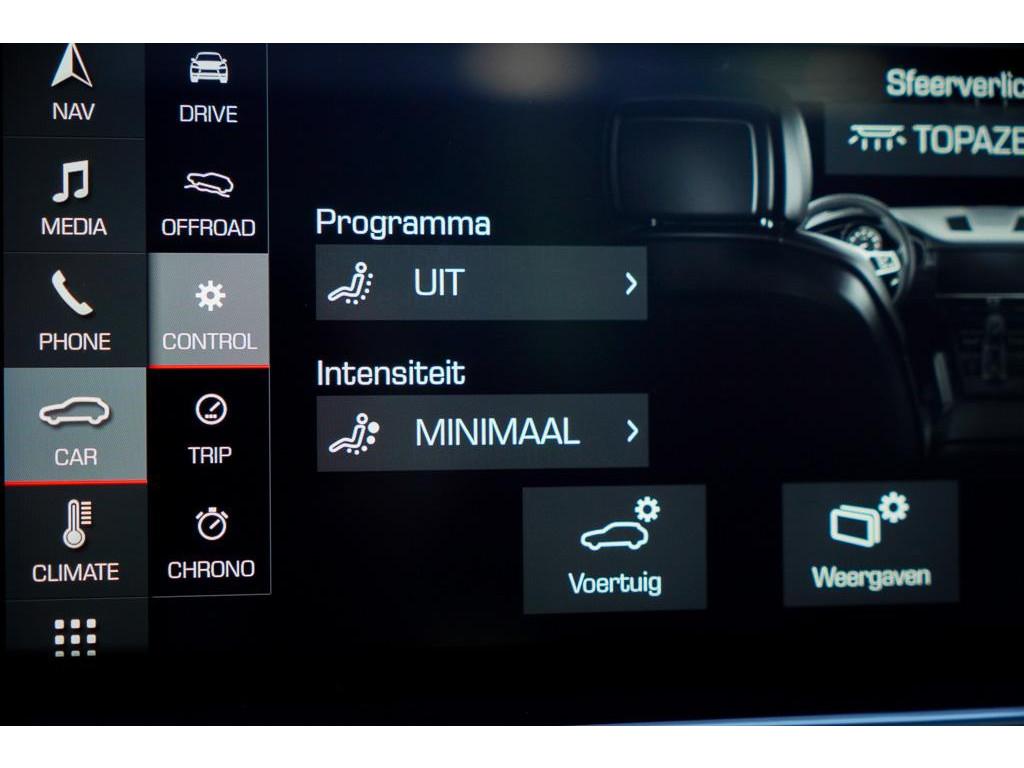 4-zone automatische airconditioning (9AE), 20 inch Cayenne Design wielen (43E), Achterasbesturing (0N5), Adaptieve luchtvering met niveauregeling en hoogteverstelling inclusief Porsche Active Suspension Management (PASM) (1BK), Airbags achter (4X4), Anti Blokkeer Systeem, Anti doorSlip Regeling, Apple Carplay/Android Auto, Autonomous Emergency Braking, BOSE Surround-Sound-System (9VL), Brake Assist System, Comfortstoelen vóór (14-voudig elektrisch verstelbaar) met Memory Pakket (Q2J), Dakrails aluminium zwart (3S2), Elektrische rolgordijnen zijruiten (3Y7), Elektrisch uitklapbare trekhaak (1D3), Elektronisch Stabiliteits Programma, LED achterlichten, LED dagrijverlichting, LED koplampen, Lane Assist inclusief verkeerstekenherkenning (PW1), Nachtzichtassistent (9R1), Panoramadak (3FU), ParkAssistent inclusief Surround View (KA6), Porsche Active Suspension Management (1BH), Privacybeglazing (VW1), Soft-Close portieren (GZ2), Stoelverwarming (4A4), Stuurbekrachtiging Plus (QZ7), Stuurwielverwarming (2ZH), WiFi voorbereiding, aanhanger assistent, achterbank in delen neerklapbaar, afdaal assistent, alarm klasse 1(startblokkering), aluminium delen exterieur, armsteun achter, bandenspanningscontrolesysteem, bestuurdersairbag, bots waarschuwing systeem, buitenspiegels elektrisch inklapbaar, buitenspiegels elektrisch verstel- en verwarmbaar, centrale deurvergrendeling met afstandsbediening, connected services, cruise control, dakspoiler, electronic climate controle, elektrisch bedienbare achterklep, elektrisch verstelbare voorstoel(en), hill hold functie, hoofd airbag(s) achter, hoofd airbag(s) voor, knie airbag(s), multimedia-voorbereiding, navigatiesysteem full map + hard disk, oplaadmogelijkheid, parkeersensor voor en achter, passagiersairbag, regensensor, rijstrooksensor met correctie, schakelmogelijkheid aan stuurwiel, sportstuur, spraakbediening, start/stop systeem, stuurbekrachtiging, stuurwiel multifunctioneel, verkeersbord detectie, vervolgbotsing preventie, voorstoelen in hoogte verstelbaar, warmtewerend glas, zij airbag(s) voor