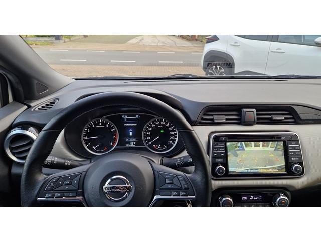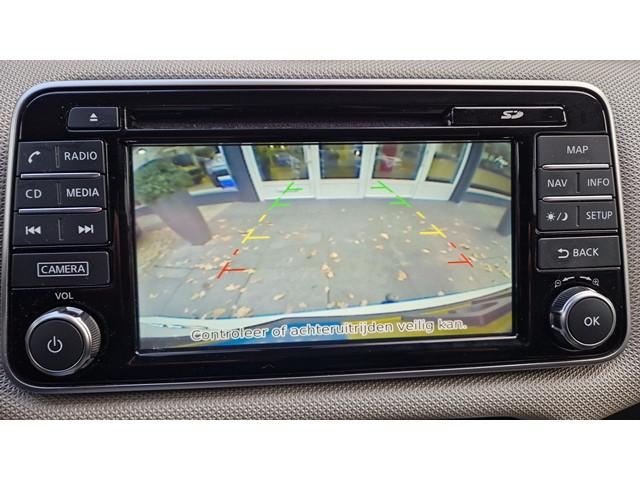 2 hoofdsteunen achter, 3-punts veiligheidsgordels achter (automatische oprolfunctie) (x3), 5'' Kleuren TFT instrumentenpaneel, 12V aansluiting, 16'' Lichtmetalen velgen, 60/40 neerklapbare achterbank, ABS (antiblokkeerremsysteem), Accubeschermingssysteem: automatische uitschakeling van koplampen en binnenverlichting bij vergeten, Achterspoiler, Achteruitrijcamera en parkeersensoren, Armsteun voorportieren met grijze inzetstukken, Automatische airconditioning, Automatische inschakeling van de ruitenwisser achteraan bij het inschakelen van de achteruitversnelling, Automatisch in-/uitschakelende koplampen, Bandenreparatieset, Bekerhouders (2 voor en 1 achter), Bekleding stof 'modern' zwart met grijze inzetstukken en stiksels, Binnendeurengrepen in chroom, Bovenste deel van het dashboard in soft-touch materialen, Buitenspiegels in carrosseriekleur, Buitenspiegels met geïntegreerde LED-richtingaanwijzers, Centrale deurvergrendeling met afstandsbediening, Cruise Control en snelheidsbegrenzer, Deurgrepen achteraan geïntegreerd in de achterstijl, Deurgrepen vooraan carrosseriekleur, EBD (elektronische remkrachtverdeler), ESP (Electronic Stability Program), Elektrische ruiten voor en handbediende achter, Elektrisch verstelbare buitenspiegels, elektrisch inklapbaar, Frontale airbags (uitschakelbare passagiersairbag), Getint glas, Gordelwaarschuwing, Gordijn airbags, Halogeen koplampen met lichtsignatuur, Hill start assist, ISOFIX kinderstoel bevestigingspunten passagierszijde en achter, In hoogte en diepte verstelbaar stuurwiel, In hoogte verstelbare bestuurdersstoel, Intelligente noodremhulp (AEB), Interieurverlichting en verlichting bedieningsknoppen elektrische ruiten, Kindersloten op de achterportieren, LED-verlichting dashboardkastje, LED dagrijverlichting, Lederen stuurwiel met stiksels, Metaalkleur, Mistlampen voor, NBAS (Nissan Brake Assist), NissanConnect navigatie, Opbergbakken in de binnenportieren voor en achter met flessenhouders, Opbergvak op de rugleuning van de passagiersstoel, Regensensor met automatische ruitenwissers, Schakelindicator, Snelheidsafhankelijke stuurbekrachtiging, Start & Stop systeem, Startonderbreking, Stuurwielbedieningen: boordcomputer, audio, telefoon, snelheidsbegrenzer / cruise control, TPMS (bandenspanning controlesysteem), Traction Control System (TCS), Trekhaak, Uitneembare bagage-afdekking, Veiligheidsgordels voor en achter met gordelspanners en spankrachtbegrenzers, Versnellingspookknop met satijnzilveren afwerking, Verstelbare hoofdsteunen voor, Verwarmde buitenspiegels, Zachte kniesteunen met stiksels, Zijdelingse airbags vooraan, Zonneklep voor bestuurder en passagier met make-up spiegeltje, kofferbakverlichting