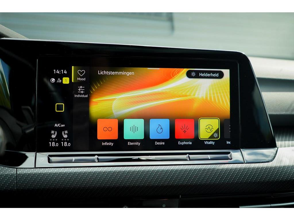 18" lichtmetalen velgen 'Jerez' met banden 225/40 R18, Achteruitrijcamera (KA2), Adaptieve onderstelregeling (Dynamic Chassis Control) (PDD), Airconditioning automatisch, 3-zone (Climatronic) (KH7), Anti Blokkeer Systeem, Anti doorSlip Regeling, Apple Carplay/Android Auto, Autonomous Emergency Braking, Bluetooth telefoonvoorbereiding, DAB ontvanger, Diefstalalarm (7AL), Elektronisch Stabiliteits Programma, Head-up-Display (KS1), In hoogte verstelbare passagierstoel (WA1), Keyless Access (4K5), LED achterlichten, LED dagrijverlichting, LED koplampen, Lederen stuurwiel, Lederpakket "Nappa" Volkswagen R (Blauw/Titaanzwart) (WL4), Middenarmsteun voor, Panorama-schuif-/kanteldak, elektrisch bedienbaar (PS1), R-Performance titanium uitlaatsysteem 'powered by Akrapovic' (0P8), Spraakbediening van media (Natural Voice Control), Winterpakket (WW1), Zijruiten achter en achterruit getint, 65% lichtabsorberend (4KF), achterbank in delen neerklapbaar, achterspoiler, actieve noodgeval assistent, armsteun achter, bandenspanningscontrolesysteem, bestuurdersairbag, bestuurdersstoel in hoogte verstelbaar, binnenspiegel automatisch dimmend, bots waarschuwing systeem, carbonafwerking interieur, centrale airbag voor, centrale deurvergrendeling met afstandsbediening, chroom delen exterieur, connected services, cruise control adaptief met Stop&Go en stuurhulp, dakspoiler, dimlichten automatisch, draadloze telefoonlader, elektrische ramen achter, elektrische ramen voor, elektrisch verstelb. bestuurdersstoel met geheugen, file assistent, hemelbekleding donker, hill hold functie, hoofd airbag(s) voor, keyless start, lederen bekleding, lendesteunen (verstelbaar), multimedia-voorbereiding, navigatiesysteem, parkeersensor achter, parkeersensor voor, passagiersairbag, radio, regensensor, rijstrooksensor met correctie, ruitensproeiers verwarmbaar, schakelmogelijkheid aan stuurwiel, sfeerverlichting, sperdifferentieel, sportonderstel, sportstoelen, sportstuur, start/stop systeem, stoel ventilatie voor, stuur verstelbaar, stuurwiel multifunctioneel, stuurwiel verwarmd, variabele stuuroverbrenging, verkeersbord detectie, vermoeidheids herkenning, vervolgbotsing preventie, volledig digitaal instrumentenpaneel, voorstoelen verwarmd, zij airbag(s) voor
