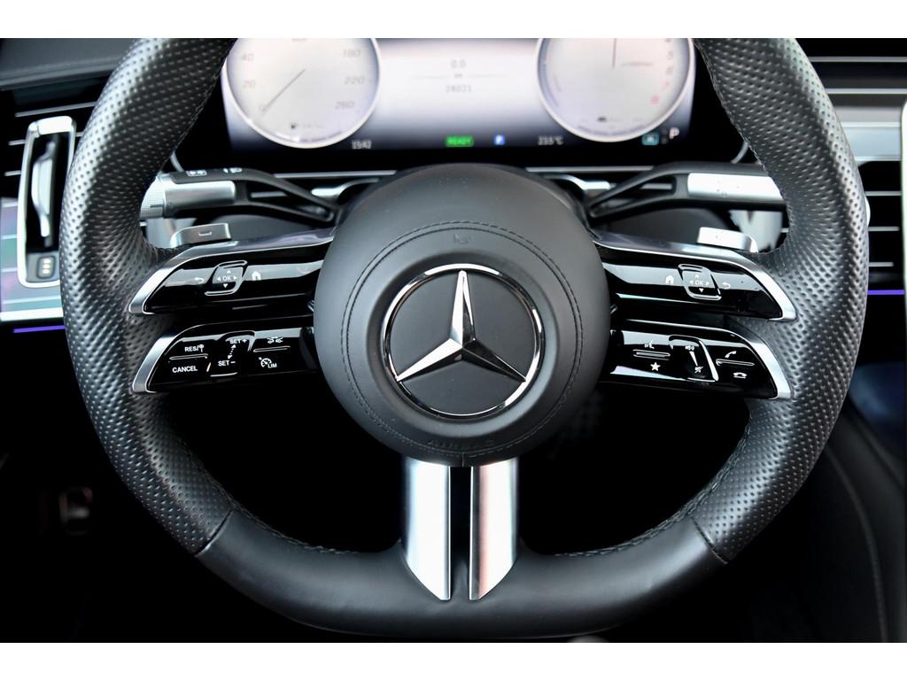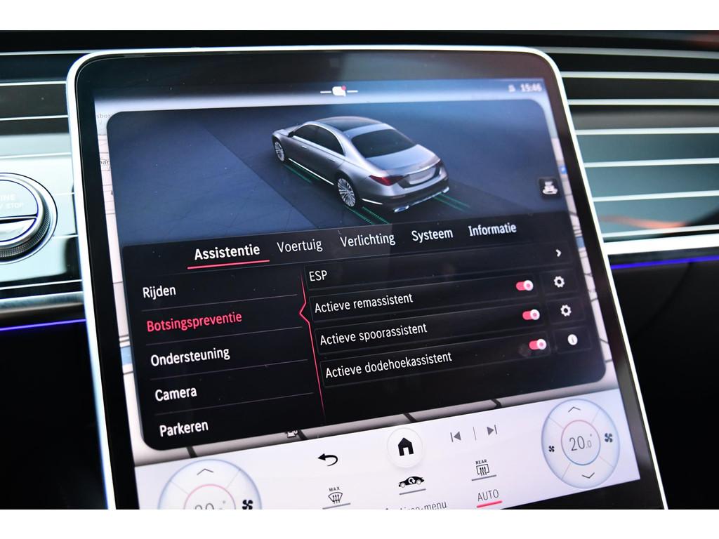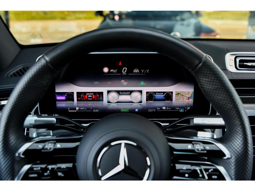 "Lichtmetalen velgen multi-spaaks 20""", 4-wiel besturing, AMG-styling, Accident Avoidance System, Achteropkomend verkeer waarschuwing, Achteruitrij assistent, Adaptief Demping Systeem (ADS), Airbag(s) hoofd achter, Airbag(s) hoofd voor, Airbag(s) side voor, Airbag bestuurder, Airbag passagier, Anti Blokkeer Systeem (ABS), Armsteun achter, Armsteun voor, Audio installatie premium, Autonome parkeerfunctie, Autotelefoonvoorbereiding met Bluetooth, Bandenspanningscontrolesysteem, Binnenspiegel automatisch dimmend, Bots herkenning en activatie, Bots waarschuwing systeem, Buitenspiegel(s) automatisch dimmend, Buitenspiegels elektrisch inklapbaar, Buitenspiegels elektrisch met geheugen, Buitenspiegels elektrisch verstelbaar, Buitenspiegels met verlichting, Buitenspiegels verwarmbaar, Chroom delen exterieur, Connected services, Cruise control adaptief met Stop&Go, DAB-ontvanger, Dodehoekdetectie met correctie, Draadloze telefoonlader, Electronic climate controle, Elektrische ramen achter, Elektrische ramen voor, Elektrisch glazen panorama-dak, Elektrisch verstelbare stoel(en) met geheugen, Elektrisch verstelbare stuurkolom met geheugen, Elektrisch zonnescherm achterruit, Exclusief-pakket, Extra getint glas, File-assistent, Geluidwerend glas, Grootlicht-assistent, Head-up display, Houtafwerking interieur, Keyless start, Koplampen adaptief, Kruisend verkeer detectie, LED achterlichten, LED dagrijverlichting, LED koplampen met laser, Lederen bekleding, Luchtvering, Luxe lederen bekleding, Luxe lederen interieur, Matrix LED koplampen, Metallic lak, Multimedia-voorbereiding, Navigatie-systeem full map + hard disk, Oplaadmogelijkheid, Panoramadak, Parkeer-assistent, Parkeersensor achter, Parkeersensor voor, Premium-pakket, Regensensor, Rijstrooksensor met correctie, Rondomzicht camera, Ruitensproeiers verwarmbaar, Side skirts, Sluitbekrachtiging, Sportstuur, Spraakbediening, Startblokkering, Stoel ventilatie voor, Stuurhulp, Stuurwiel multifunctioneel, Telefoonintegratie premium, Uitwijk assistent, Verkeersbord detectie, Vermoeidheids herkenning, Verwarmde voorstoelen, Volledig digitaal instrumentenpaneel, Voorstoel(en) met massagefunctie, Warmtewerend glas, WiFi voorbereiding, Zonbeschermingspakket, Zonnescherm zijruiten, zijwind assistent