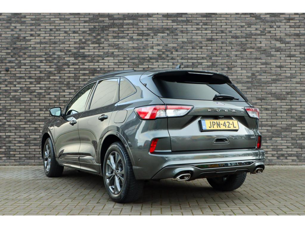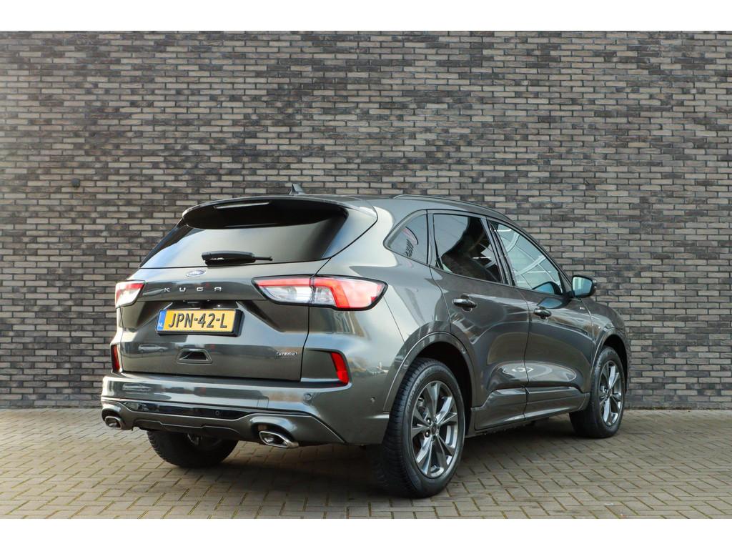 12.3 inch personaliseerbare Digital Cockpit (HCAAV), 18 inch lichtmetalen velgen 5x2-spaaks in Rock Metallic (D2UB3), Achterbank in 2 delen (60/40) neerklapbaar en verschuifbaar in lengte richting (BWGAD), Achterspoiler (BPFAJ), Active Braking/Pre-Collision Assist (voor auto's, voetgangers en fietsers) (FBFAB), Anti Blokkeer Systeem, Anti doorSlip Regeling, Apple Carplay/Android Auto, Automatisch dimmende binnenspiegel (BSBAF), Automatische airco met 3 zones en bediening voor achterpassagiers (AC G), Automatisch inschakelende dimlichten (JEDAC), Bandenreparatieset, Bandenspanningscontrole systeem (D19AG), Bang & Olufsen audiosysteem met 9 speakers en 1 subwoofer (ICFAL), Cruise Control incl. Adjustable Speed Limiting Device (ASLD) (GTDAJ), DAB ontvanger, Dakreling Zwart (BLYAZ), Draadloos laden mobiele telefoon (IEXAB), Driver Assistance Pack (AGKAM), Dubbele uitlaat achter - Sportief Design (F2AEJ), Elektrisch bedienbare portierramen rondom (B2CAF), Elektrische parkeerrem en Hill Start Assist (FAJAC), Elektrisch verstelbare, verwarmbare en inklapbare buitenspiegels met instapverlichting (BSHCZ), Elektrisch verwarmbare voorstoelen (BY1AB), Elektronisch Stabiliteits Programma, FordKeyless Entry op de voorportieren (incl. motion sensor in de sleutel) (CBGAL), FordPass Connect - Embedded Modem (HKSAD), FordPower startbutton (CBGAJ), Handsfree elektrisch bedienbare achterklep (CBGAR), In hoogte verstelbare bestuurdersstoel inclusief lendensteunverstelling (BYPAL), In hoogte verstelbare passagiersstoel (BYQAL), Instructieboekjes aanwezig, Isofix, LED achterlichten (JDAAB), LED dagrijverlichting (JBCAB), LED koplampen voor dimlicht en grootlicht (JBBAK), LED mistlampen voor - uniek design (JBKAN), Lane Departure Warning/Lane Keeping Aid en Road Edge Detection (HLNAC), Lederen stuurwiel in ST-Line design met afgeplatte onderkant (GTACW), Middenarmsteun achter met bekerhouders (BWFAE), Middenconsole met armsteun en 2 USB aansluitpunten op achterzijde (B5WAL), Navigatiesysteem met 8inch touchscreen, SYNC 3 Bluetooth®/Voice Control, DAB+ (ICFAH), Onderhoudsboekje (fysiek), Oplaadkabel voor laden aan thuisstopcontact 8-10A 1 fase (HTSAJ), Parkeersensoren voor en achter met achteruitrijcamera (J3KAB), Premium Metaallak: Magnetic (PN4DQ), Privacy Glass (B2GAE), Regensensor (CFFAN), Rookvrij, Sportieve unieke ST-Line zijskirts (BMDAG), Sportieve wielophanging: 10mm verlaagd (DWAAC), Sportstoelen voor (11UZH), Trekhaak afneembaar, Uitschakelbare passagiersairbag t.b.v. kinderzitje (CPQAB), Volledige dealeronderhoudshistorie beschikbaar, WiFi voorbereiding, Winter Pack (BY3AB), achterbank verwarmd, achteruitrij assistent, alarm klasse 1(startblokkering), autonome parkeerfunctie, bestuurdersairbag, boordcomputer, camera voor, chroom delen exterieur, cruise control adaptief met Stop&Go en stuurhulp, dodehoek detectie, geluidsisolerend glas, grootlichtassistent, hemelbekleding donker, hoofd airbag(s) achter, hoofd airbag(s) voor, knie airbag(s), koplampreiniging, lederen bekleding, lederen stuurwiel, multimedia-voorbereiding, parkeersensor achter, parkeersensor voor, stof/kunstlederen bekleding, stuurbekrachtiging snelheidsafhankelijk, stuur verstelbaar, stuurwiel multifunctioneel, stuurwiel verwarmd, verkeersbord detectie, vermoeidheids herkenning, vervolgbotsing preventie, verwarmde voorruit, zij airbag(s) voor
