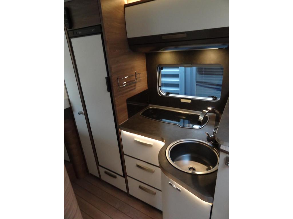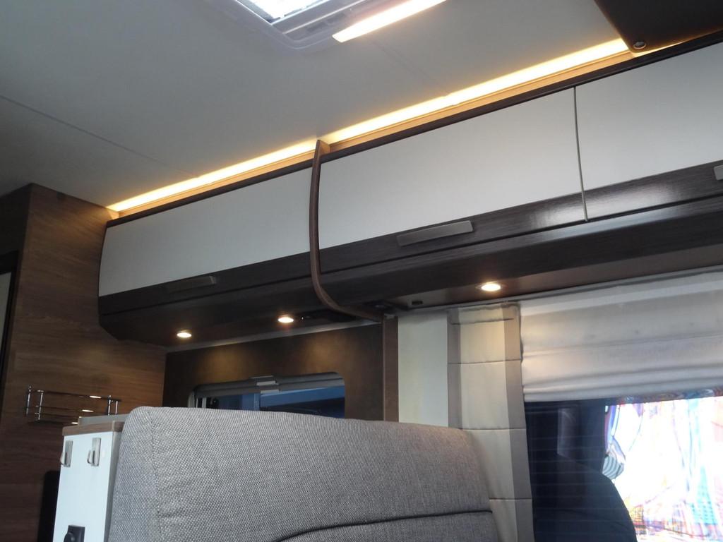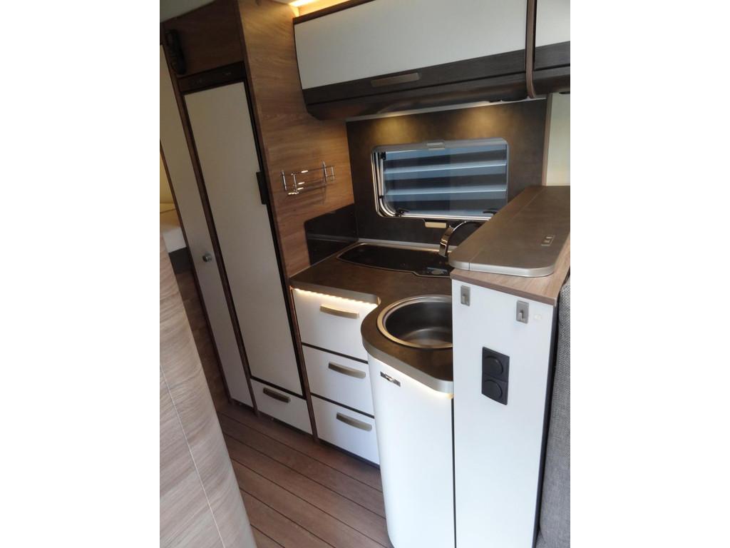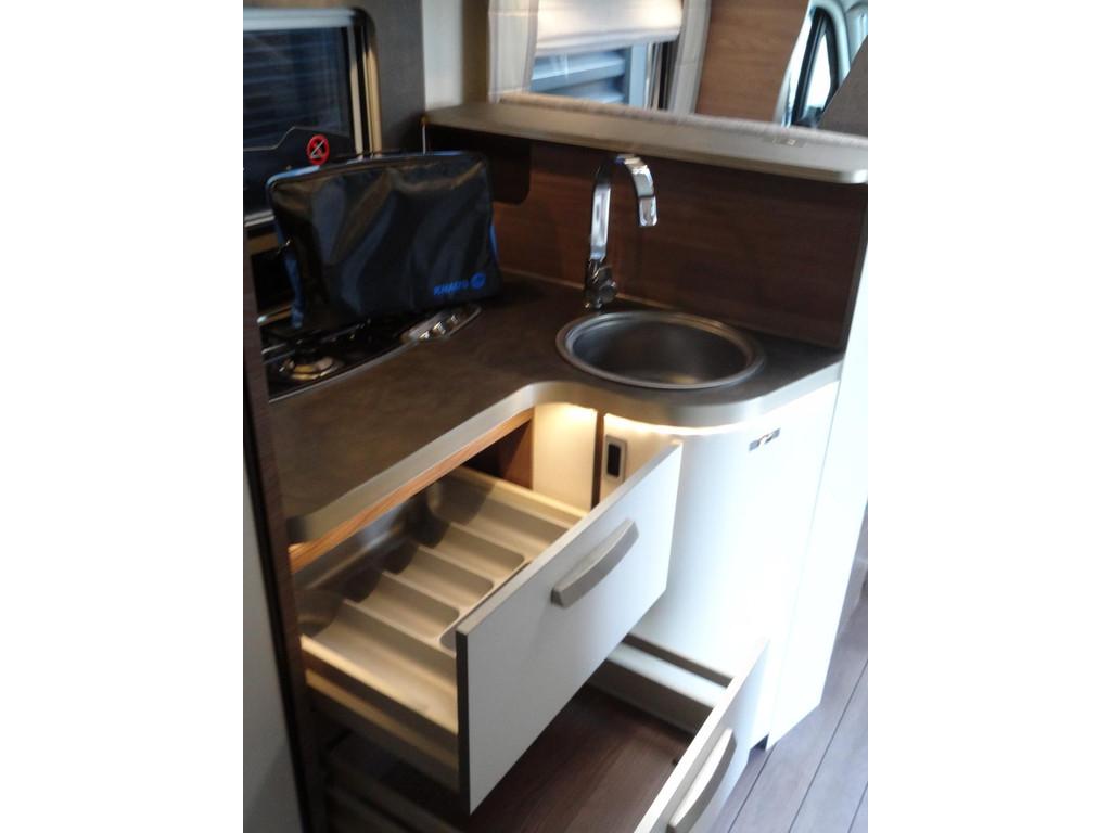 2 enkele bedden, 3 pits gasstel, 16 inch Lichtmetalen velgen, Accessoires accu groot, Achteruitrijcamera, Airbag, Airbag bestuurder, Airco, Alarm, Alle kunstofdelen in kleur gespoten, Anti Blokkeer Systeem (ABS), Armsteun voor, Audioinstallatie met CD-speler, Autotelefoonvoorbereiding, Bearlock op de versnellingsbak, Binnenverlichting laadruimte, Boordcomputer, Buitenspiegels elektrisch verstelbaar, Buitenspiegels met stoeprandfunctie, Centrale deurvergrendeling, Cruise control, Cruisecontrole, Dagrijverlichting, Dakluik 2X, Dakraam “skyroof” boven bestuurderscabine, Dometic cassette-luifel, Douche, Draaibare voorstoelen met armleuningen, beide in hoogte verstelbaar, Dubbele gasflessen, Eettafel met verschuif en inschuifbaar blad, Electronic Stability Program (ESP), Elektrische ramen, Extra slaapplaats te realiseren in het woongedeelte, Extra verlichting, Fullmap Dubbeldin navigatie systeem, Getint glas, Grote Garage met aan twee kanten een deur, Grote Koelkast met vriesvak 140 liter, Hagelbestendig dak, Hoofdsteunen voor, Hordeur bij instap woongedeelte, Keukenblok, Lichtmetalen velgen, Luifel, Multifunctioneel stuur, Navigatiesysteem, Opbergruimte-pakket, Openslaande ramen met hor en verduistering, Ringverwarming, Rondom raamverduistering/ plisse, Rondzit, Schoonwatertank 100 liter, Sfeerverlichting binnen en buitenzijde, Standverwarming, Startblokkering, Stoelen met armleuning en draaibaar, Stuurbekrachtiging, TV voorbereiding, Toilet, Toilet ruimte met kast wastafel en Spiegel, Tractie Controle Systeem (TCS), Verstelbare (in hoogte) bestuurders stoel, Verstelbare stuurkolom, Zenec Navigatie/ full map multimedia/radio etc.., Zonnedak, Zonnenpaneel met omvormer, truma Kachel "Trumatic" met boiler, vuilwatertank