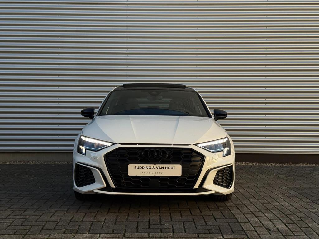 "Lichtmetalen velgen 5-spaaks 17""", "Lichtmetalen velgen 5-spaaks 18""", Accident Avoidance System, Achterbank in delen neerklapbaar, Achteruitrijcamera, Airbag(s) hoofd achter, Airbag(s) hoofd voor, Airbag(s) side achter, Airbag(s) side voor, Airbag bestuurder, Airbag passagier, Aluminium delen exterieur, Aluminium interieur afwerking, Android Auto, Anti Blokkeer Systeem (ABS), Apple Carplay, Armsteun voor, Audio installatie, Audio installatie premium, Bandenspanningscontrolesysteem, Bestuurdersstoel in hoogte verstelbaar, Binnenspiegel automatisch dimmend, Brake Assist System, Buitenspiegel(s) automatisch dimmend, Buitenspiegels elektrisch inklapbaar, Buitenspiegels elektrisch verstelbaar, Buitenspiegels verwarmbaar, Centrale deurvergrendeling met afstandsbediening, Connected services, Cruise control, DAB-ontvanger, Dakrails, Dakspoiler, Dimlichten automatisch, Dodehoek detector, Electronic Brake Distribution (EBD), Electronic Stability Program (ESP), Electronic climate controle, Elektrisch bedienbare achterklep met sensorsturing, Elektrisch glazen panorama-dak, Extra getint glas, Grootlicht-assistent, Hill hold-functie, Keyless entry, Keyless start, Kleur wit, Koplampen adaptief, Koplampreiniging, LED-lichtpakket, LED achterlichten, LED dagrijverlichting, Lederen stuurwiel, Matrix LED koplampen, Multimedia-voorbereiding, Navigatie full map, Oplaadmogelijkheid, Parkeer-assistent, Parkeer pakket, Parkeersensor achter, Parkeersensor voor, Passagiersstoel in hoogte verstelbaar, Radio, Regensensor, Rijstrooksensor, Ruitensproeiers verwarmbaar, S Line exterieur, Sonos audio, Sportstoelen, Sportstuur, Start/stop systeem, Startblokkering, Stof/kunstlederen bekleding, Stuurbekrachtiging, Stuurwiel multifunctioneel, Telefoonintegratie premium, Tractie Controle Systeem (TCS), Uitwijk assistent, Verkeersbord detectie, Verwarmde voorstoelen, Volledig digitaal instrumentenpaneel, Warmtewerende voorruit, WiFi voorbereiding, Wis-/was installatie voor koplampen, sfeerverlichting