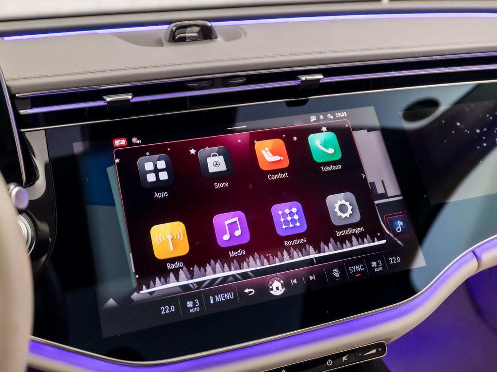 1e Eigenaar, 12Volt aansluiting, 19" tien-spaakse lichtmetalen velgen (R97), 20" multispaaks lichtmetalen velgen (RVQ), 360 Graden Camera, 360°-camera's: 4 camera's bieden beelden van de omgeving waardoor een weergave in vogelvlucht mogelijk is (501), Achterbank in delen neerklapbaar, Achterbankleuning neerklapbaar (287), Achteropkomend verkeer waarschuwing, Achteruitrijcamera, Actieve afstandsassistent DISTRONIC (207), Actieve parkeerassistent (235), Actieve spoorassistent (243), Active brake Assist (258), Adaptief demping systeem, Adaptive Cruise Control, Airbag(s) gordijn, Airbag(s) hoofd achter, Airbag(s) hoofd voor, Airbag(s) knie, Airbag(s) side achter, Airbag(s) side voor, Airbag(s) window, Airbag bestuurder, Airbag passagier, Airco, Airco (automatisch), Airco met elektronische regeling, Airco separaat achter, Alarm klasse 1(startblokkering), Alarmsysteem, Android Auto (17U), Android auto, Anti-verblindingsspiegels (binnen en buiten links) (249), Anti Blokkeer Systeem, Antidiefstalpakket GUARD 360° Plus (P82), Anti doorSlip Regeling, Apple CarPlay (16U), Apple Carplay/Android Auto, Apple carplay, Armsteun, Armsteun achter, Audio installatie, Audio installatie premium, Automatische Kofferklep, Automatische airconditioning THERMATIC (580), Autonomous Emergency Braking, Bandendruk-controlesysteem (475), Bandenspanningscontrolesysteem, Bestuurderdisplay met 12,3" LCD-display (464), Bestuurdersstoel in hoogte verstelbaar, Bestuurdersstoel met geheugenfunctie met 3 opslagmogelijkheden (241), Binnenspiegel automatisch dimmend, Bluetooth, Bluetooth telefoonvoorbereiding, Boordcomputer, Bots herkenning systeem, Buitenspiegel(s) automatisch dimmend, Buitenspiegels elektr. met geheugen, Buitenspiegels elektrisch inklapbaar, Buitenspiegels elektrisch verstel- en verwarmbaar, Buitenspiegels elektrisch verstelbaar, Buitenspiegels verwarmbaar, Bumpers in carrosseriekleur, Burmeister audio, Burmester surroundsound system (810), Centrale deurvergrendeling, Centrale deurvergrendeling met afstandsbediening, Chroom delen exterieur, Climate Control, Climatic, Comfortstoel(en), Communicatiemodule (5G) voor het gebruik van Mercedes me connect-services (382), Connected services, Cruise control, Cruisecontrol, Cruise control adaptief met stop&go en stuurhulp, DIGITAL LIGHT incl projectiefunctie (PAX), Dab, Dashboard in lederlook ARTICO (U34), Derde remlicht, Digitale Cockpit, Digitale radio (DAB) (537), Dimlichten automatisch, Dodehoekassistent (234), Dodehoek detector, Draadloos oplaadsysteem voor mobiele eindapparaten (897), Draadloze telefoonlader, ENERGIZING-pakket plus, Elek pakket, Elektrisch bedienbare achterklep, Elektrisch bedienbare achterklep met sensorsturing, Elektrische ramen voor en achter, Elektrisch glazen panorama-dak, Elektrisch inklapbare buitenspiegels (500), Elektrisch verstelb. bestuurdersstoel met geheugen, Elektrisch verstelb. passagiersstoel met geheugen, Elektrisch verstelbare bestuurdersstoel, Elektrisch verstelbare stoel(en) met geheugen, Elektronisch Stabiliteits Programma, Exclusive Line exterieur (P23), Exclusive Premium Plus Pack, File assistent, Gegalvaniseerde schakelpaddles aan het stuur in zilverchroom (431), Getint glas, Grootlichtassistent, Head-up Display, Head-up display, Hoofdsteunen achter, Isofix bevestiging voor kinderzitjes, KEYLESS-GO: Toegang-en startsysteem zonder sleutel (889), KEYLESS GO: Toegang-en startsysteem zonder sleutel (889), KEYLESS GO comfortpakket (P17), Keyless entry, Keyless start, Kneebag voor de bestuurder (294), LED Koplampen, LED achterlichten, LED dagrijverlichting, LED koplampen adaptief, Lederen Bekleding, Lederen bekleding, Lederen stuurwiel, Lichtmetalen velgen, Lichtmetalen velgen 20", Luchtvering, Luxe lederen bekleding, MBUX Hyperscreen (PAG), MBUX navigatie Premium (PBG), Matrix led koplampen, Metaalkleur, Multifunctioneel stuurwiel in nappaleder (L2B), Multimedia-voorbereiding, Multimedia systeem, Navigatie, Navigatie D.M.V. Apple Carplay, Navigatie Voorbereiding, Navigatie met harde schijf (365), Navigatiesysteem, Navigatiesysteem full map, Oplaadkabel voor wallbox en openbaar laadstations (type 2, driefasige stroom, 32A, 8m) (9B7), Oplaadmogelijkheid, PRESAFE, veiligheidssysteem (299), Panoramadak, Panoramaschuifdak (413), Parkeer assistent, Parkeerpakket inclusief 360°-camera (P47), Parkeersensor achter, Parkeersensoren achter, Parkeersensor voor, Parkeersensor voor en achter, Passagiersstoel in hoogte verstelbaar, Passagiersstoel vooraan met geheugenfunctie met 3 opslagmogelijkheden, elektrisch verstelbare stuurkolom en buitenspiegels met geheugenfunctie, elektrische afstelling van de zitafstand, elektrische afstelling van de hoofdsteunen (242), Radiovoorbereiding, Regensensor, Rijassistentiepakket Plus, Rijassistentiepakket plus (P20), Rijstrooksensor met correctie, Rondomzicht camera, Schakelmogelijkheid aan stuurwiel, Schuif-/kanteldak, Sfeerverlichting (891), Sierelementen in piano lak met vloeiende lijnen (H17), Smartphone-integratie (14U), Snelheids limiet assistent (513), Sportstoelen, Spraakbediening, Start/stop systeem, Stoelventilatie/-verwarming voor (401), Stoel ventilatie voor, Stoelverw, Stoelverwarming, Stoelverwarming voor (873), Stuurbekrachtiging, Stuur verstelbaar, Stuurwiel multifunctioneel, Techniekpakket (PAD), Technologie-pakket, USB Pakket (75B), Verkeersbord detectie, Verlichte radiator grill (5B6), Vermoeidheids herkenning, Viervoudig verstelbare lendensteun voor stoelen vooraan (U22), Volledig digitaal instrumentenpaneel, Voorstoelen in hoogte verstelbaar, Voorstoelen verwarmd, Warmtewerend, donkergetint glas (840), Warmtewerend donkergetint glas rondom vanaf de B-stijlen (840), Warmtewerend glas, Wegsleepbeveiliging met visuele en hoorbare waarschuwingen (882), WiFi, Xenon verlichting, Zijdelingse airbags achteraan (293), achterasbesturing, alarmsysteem uitgebreid, automatische snelheidsbegrenzing ISA, dodehoekdetectie met correctie, electronic climate control, extra getint glas achter, geluids
