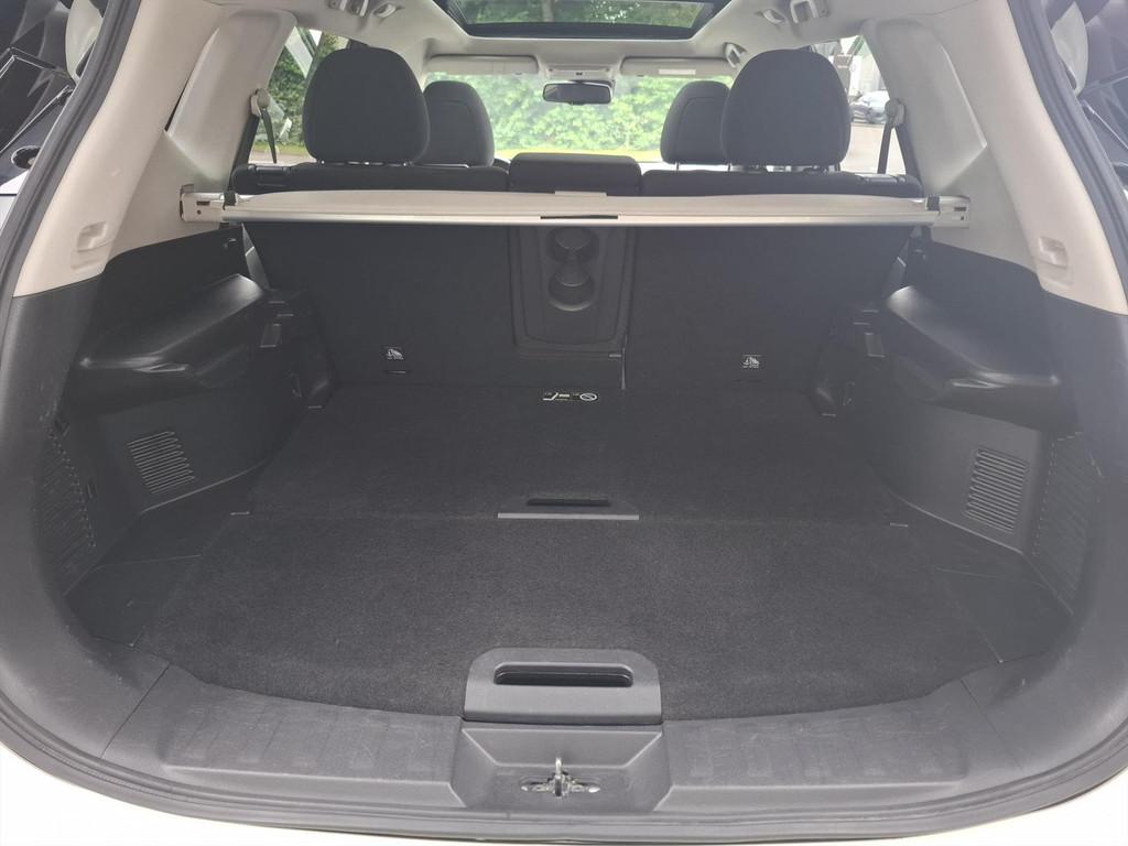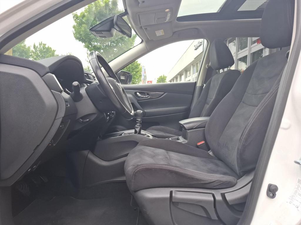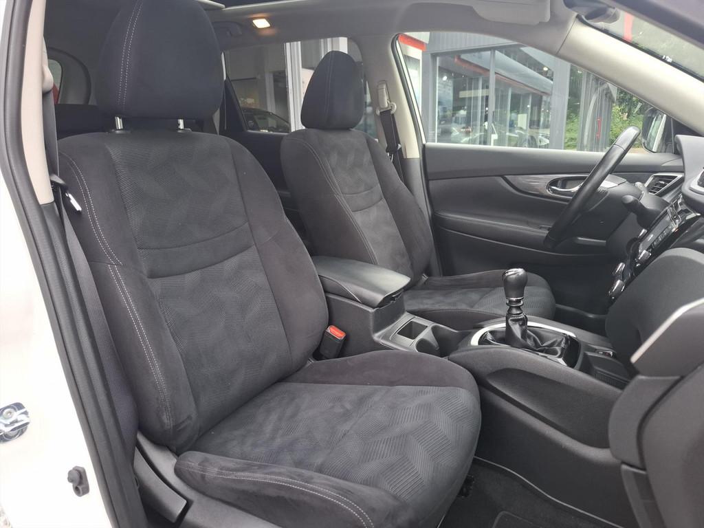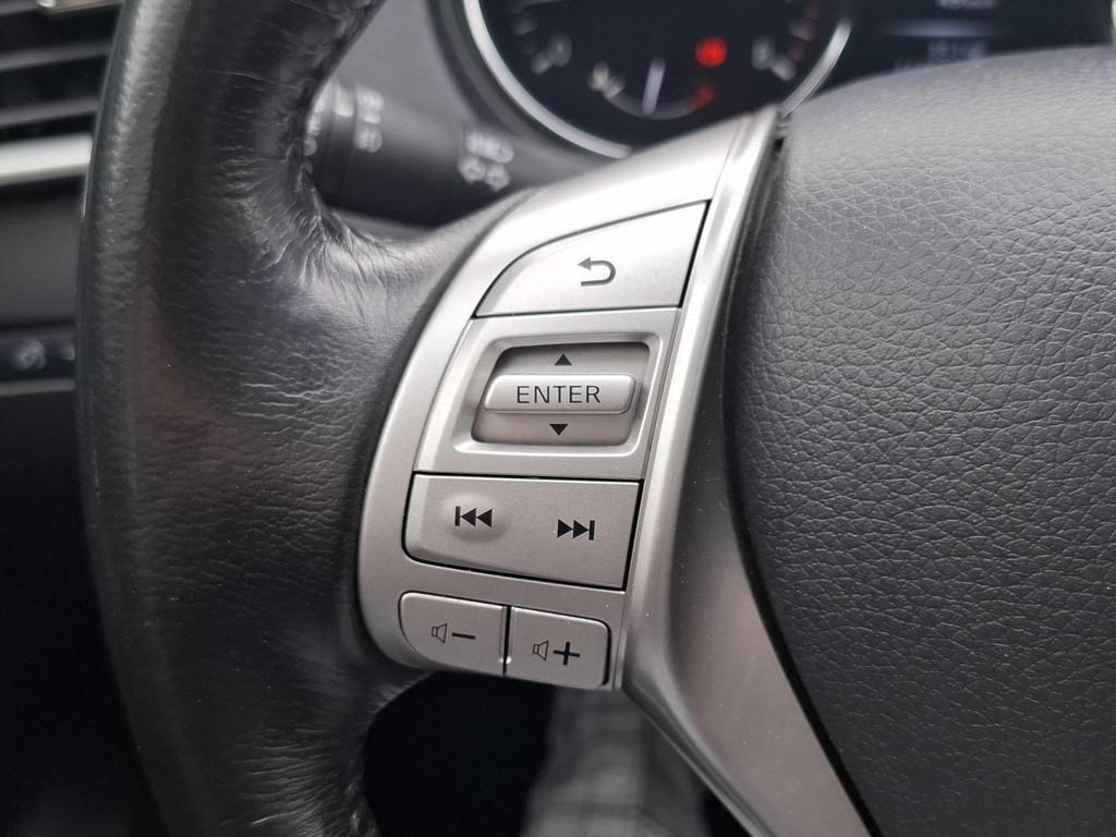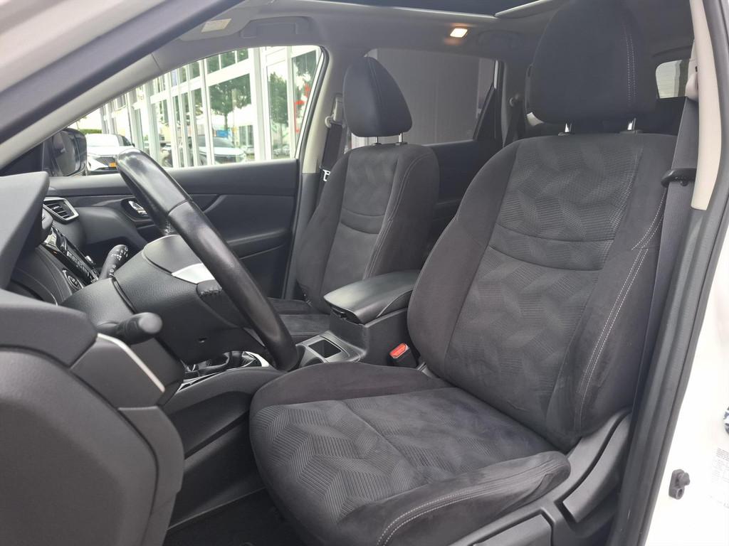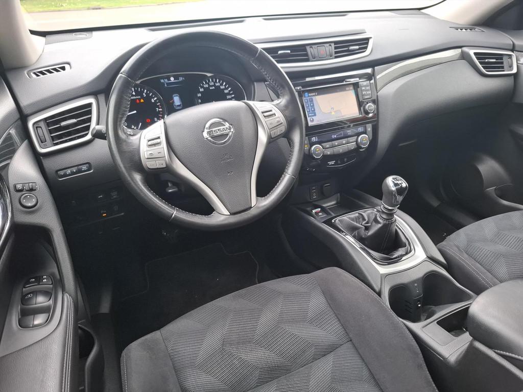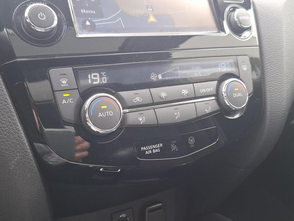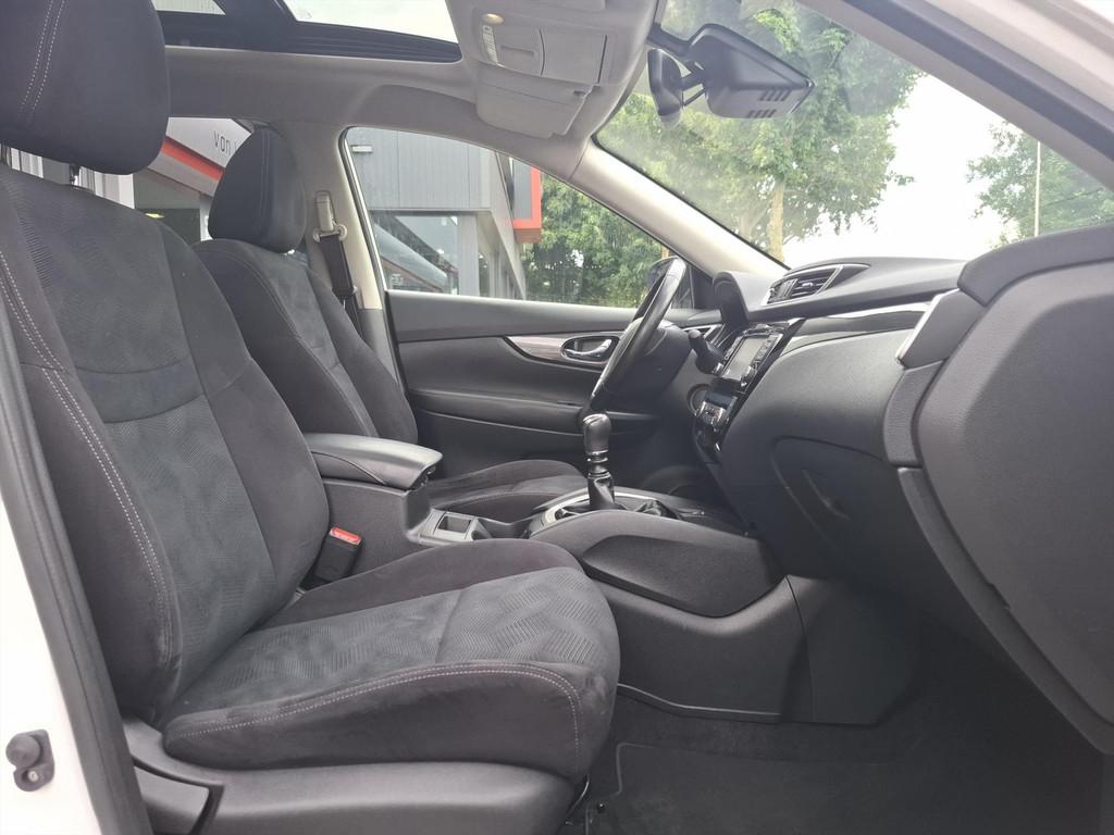 3-punts veiligheidsgordels achter, 3-punts veiligheidsgordels voor met gordelspanner, 5'' Kleuren TFT instrumentenpaneel, 7" TFT navigatiesysteem met verkeersinformatie en touchscreen in kleur met 3D kaarten voor Europa, 19'' Lichtmetalen velgen, ABS (Anti-blokkeersysteem), Achterbankleuning in delen neerklapbaar (60/40), Achteruitrijcamera, Airbag voorpassagier uitschakelbaar, Airco, Armsteun bestuurdersstoel, Automatische achterklep, Automatisch in-/uitschakelende koplampen, Bandenspanningscontrolesysteem, Binnenspiegel met automatische dimmer, Bluetooth - voor handsfree bellen, Centrale armsteun achterin met bekerhouder, Centrale portiervergrendeling, Chassis Control Systeem (Active Trace Control, Active Ride Control, Xtronic Active Engine Brake), Chromen portiergrepen, Chromen raam omlijsting, Climate control, Cruise control, Cruise control en speedlimiter met stuurwielbediening, Digital Audio Broadcasting (DAB+), Internet radio, Upgradable apps, ESP met deactivatieschakelaar, Elektrisch bedienbare ramen voor en achter, Elektrische handrem, Elektrisch inklapbare buitenspiegels, Elektrisch verstelbare en verwarmbare buitenspiegels, Elektronische Remkracht verdeling (EBD), Ergonomische voorstoelen, Extra getint glas (achterste zijramen en achterklep), Flexibele bagageruimte indeling, Geblindeerde ruiten achter, Gescheiden automatische airconditioning (2 zones), Halogeen koplampen, Hellingproef, ISOFIX-bevestigingspunten voor 2 kinderzitjes, In hoogte verstelbare bestuurdersstoel, Intelligent Key, Keyless entry, LED dagrijverlichting, Lederen stuurwiel en versnellingspookknop, Metallic lak, Mistlampen voor, NBAS (Nissan Brake Assist), Navigatie, Nissan Around View Monitor, Panoramisch glazen dak met electrische zonnewering, Parkeercamera achter, Parkeersensoren (voor/achter), Parkeersensoren achter, Parkeersensoren voor & achter, Radio/CD-speler met stuurwielbediening, 6 luidsprekers en MP3 en WMA ondersteuning, Radio/CD speler met USB-aansluiting, stuurwielbediening en 6 luidsprekers, Regensensor, Reservewiel, Richtingaanwijzers in de buitenspiegels, Safety Shield, Startonderbreking, Stoffen bekleding, Stuurwiel in hoogte en diepte verstelbaar, Verchroomde inleg op de bumper voor, Voor, Zij en Gordijn airbags, Zilverkleurige dakrails, Zonnekleppen met make-up spiegel