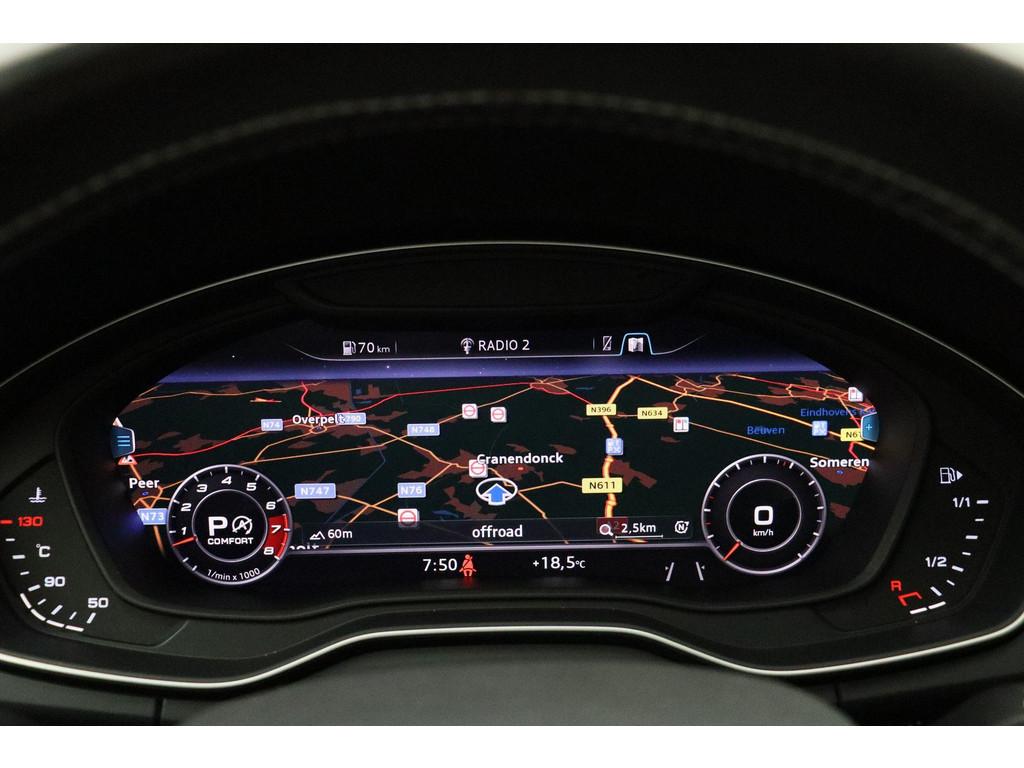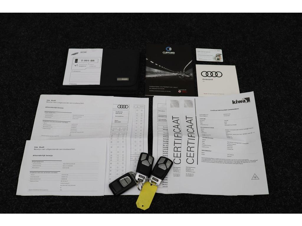 Achterbank plus (3NS), Achteruitrijcamera (KA2), Adaptive air suspension (2MB), Airconditioning, volautomatisch comfort 3-zone (9AQ), Anti Blokkeer Systeem, Assistentiepakket 'City en Parking' (PCZ), Assistentiepakket Tour (PCN), Audi Connect diensten (IT3), Audi phone box (9ZE), Audi side assist inclusief Audi pre sense rear (PCH), Audi smartphone interface (UI2), Audi virtual cockpit (9S8), Autonomous Emergency Braking, Bang & Olufsen 3D soundsystem (9VS), Bluetooth telefoonvoorbereiding, Buitenspiegelbuizing in carroseriekleur (6FA), Buitenspiegels, elektrisch inklapbaar en automatisch dimmend (6XK), Comfortsleutel (PGC), Digitale radio ontvangst (QV3), Elektronisch Sper Differentieel, Elektronisch Stabiliteits Programma, Getint glas vanaf de b-stijl inclusief akoestisch glas in voorportieren (VW4), Head-up Display (KS1), Interieurvoorverwarming (9M9), Koplampreinigingsinstallatie (8X1), LED achterlichten, LED dagrijverlichting, Lendesteunen vóór, elektrisch verstelbaar (7P1), MMI navigatie plus (PNQ), Matrix LED-koplampen (PXC), Panoramadak, glas, elektrisch bedienbaar (3FU), Parkeerassistent (7X5), Parkeerhulp plus (7X2), Raamlijsten, aluminium (4ZB), S line exterieur (PQD), Sportonderstel (1BV), Sportstoelen voor (Q1D), Sportstuurwiel, driespaaks multifunctioneel in leder, afgevlakt (2PF), Stoelen en achterbank, verwarmbaar (4A4), Stoelen vóór, elektrisch verstelbaar (3L5), Verkeerstekenherkenning d.m.v. camera (QR9), Wegrijassistent (UH2), Zij-airbags achter (4X4), achterbank in delen neerklapbaar, achteropkomend verkeer waarschuwing, achteruitrij assistent, airco (automatisch), alarm klasse 1(startblokkering), armsteun achter, armsteun voor, bagage-scheidingsnet, bandenspanningscontrolesysteem, bestuurdersairbag, binnenspiegel automatisch dimmend, boordcomputer, bots waarschuwing systeem, centrale deurvergrendeling met afstandsbediening, cruise control adaptief met Stop&Go, dakrails, dakspoiler, dimlichten automatisch, elektrische ramen voor en achter, elektronische remkrachtverdeling, file assistent, hoofd airbag(s) achter, hoofd airbag(s) voor, lederen stuurwiel, lichtmetalen velgen 21", multimedia-voorbereiding, passagiersairbag, radio, regensensor, rijstrooksensor met correctie, rondomzicht camera, ruitensproeiers verwarmbaar, schakelmogelijkheid aan stuurwiel, sportstuur, start/stop systeem, stuur verstelbaar, stuurwiel multifunctioneel, uitstap waarschuwing, vervolgbotsing preventie, warmtewerend glas, zij airbag(s) voor
