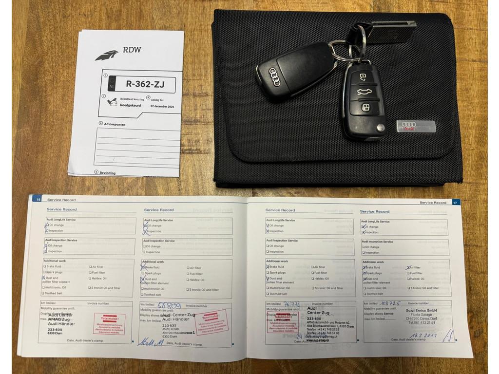 "Lichtmetalen velgen 18""", Achteruitrijcamera, Airbag(s) hoofd achter, Airbag(s) hoofd voor, Airbag(s) side achter, Airbag(s) side voor, Airbag bestuurder, Airbag passagier, Airco automatisch, Alarm klasse 3, Anti Blokkeer Systeem (ABS), Armsteun achter, Armsteun voor, Audio-navigatie full map, Bi-xenon koplampen, Binnenspiegel automatisch dimmend, Boordcomputer, Buitenspiegels elektrisch verstelbaar, Buitenspiegels verwarmbaar, Centrale deurvergrendeling met afstandsbediening, Cruise control, Dimlichten automatisch, Electronic Brake Distribution (EBD), Electronic Stability Program (ESP), Elektrisch bedienbare achterklep, Elektrische ramen voor, Elektrisch glazen schuif-/kanteldak, Elektrisch verstelbare stoel(en) met geheugen, Hoofdsteunen actief, Houtafwerking interieur, Koplampreiniging, Lederen stuurwiel, Lendesteunen (verstelbaar), Mistlampen voor, Parkeer pakket, Parkeersensor achter, Parkeersensor voor, Regensensor, S Line exterieur, Sportonderstel, Sportstoelen, Tractie Controle Systeem (TCS), Verwarmde voorstoelen, lederen stoelbekleding, onderhoudsboekjes aanwezig