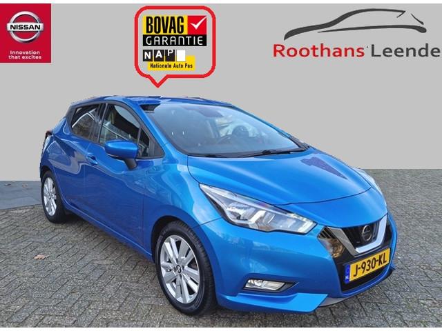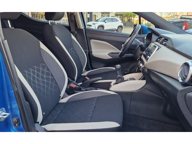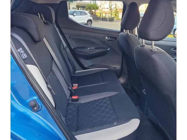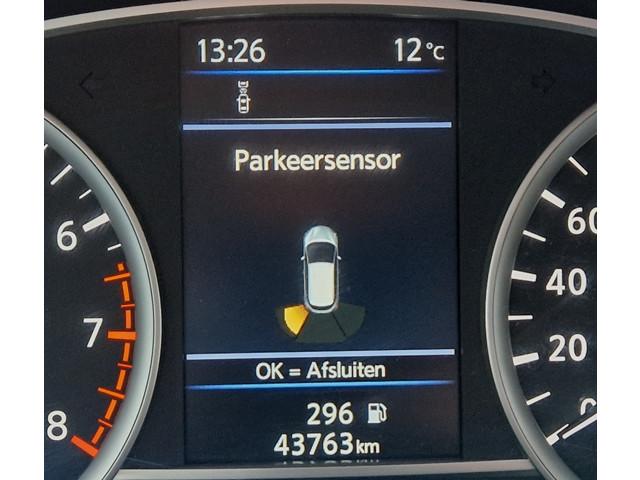2 hoofdsteunen achter, 3-punts veiligheidsgordels achter (automatische oprolfunctie) (x3), 5'' Kleuren TFT instrumentenpaneel, 12V aansluiting, 16'' Lichtmetalen velgen, 60/40 neerklapbare achterbank, ABS (antiblokkeerremsysteem), Achterspoiler, Android Auto, Apple CarPlay, Armsteun voorportieren met grijze inzetstukken, Automatische inschakeling van de ruitenwisser achteraan bij het inschakelen van de achteruitversnelling, Automatisch in-/uitschakelende koplampen, Bandenreparatieset, Bekerhouders (2 voor en 1 achter), Bekleding stof 'modern' zwart met grijze inzetstukken en stiksels, Binnendeurengrepen in chroom, Bovenste deel van het dashboard in soft-touch materialen, Buitenspiegels in carrosseriekleur, Centrale deurvergrendeling met afstandsbediening, Chassis Control Systeem (Active Trace Control, Active Ride Control), Cruise Control en snelheidsbegrenzer, Deurgrepen achteraan geïntegreerd in de achterstijl, Deurgrepen vooraan carrosseriekleur, EBD (elektronische remkrachtverdeler), ESP (Electronic Stability Program), Elektrische ruiten vooraan en achteraan, Frontale airbags (uitschakelbare passagiersairbag), Getint glas, Gordelwaarschuwing, Gordijn airbags, Halogeen koplampen met lichtsignatuur, Hill start assist, ISOFIX kinderstoel bevestigingspunten passagierszijde en achter, In hoogte en diepte verstelbaar stuurwiel, In hoogte verstelbare bestuurdersstoel, Intelligente noodremhulp (AEB), Interieurverlichting en verlichting bedieningsknoppen elektrische ruiten, Kindersloten op de achterportieren, LED dagrijverlichting, Lederen stuurwiel met stiksels, Manuele airconditioning, Metaalkleur, NBAS (Nissan Brake Assist), Nissan Connect, Opbergbakken in de binnenportieren voor en achter met flessenhouders, Opbergvak op de rugleuning van de passagiersstoel, Parkeersensoren achter, Schakelindicator, Snelheidsafhankelijke stuurbekrachtiging, Start & Stop systeem, Startonderbreking, Stuurwielbedieningen: boordcomputer, audio, telefoon, snelheidsbegrenzer / cruise control, TPMS (bandenspanning controlesysteem), Traction Control System (TCS), Uitneembare bagage-afdekking, Veiligheidsgordels voor en achter met gordelspanners en spankrachtbegrenzers, Verstelbare hoofdsteunen voor, Verwarmde buitenspiegels, Zachte kniesteunen met stiksels, Zijdelingse airbags vooraan, Zonneklep voor bestuurder en passagier met make-up spiegeltje, kofferbakverlichting