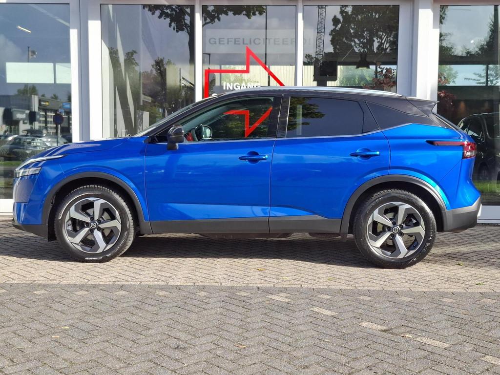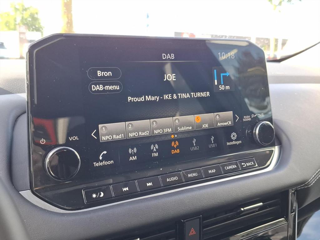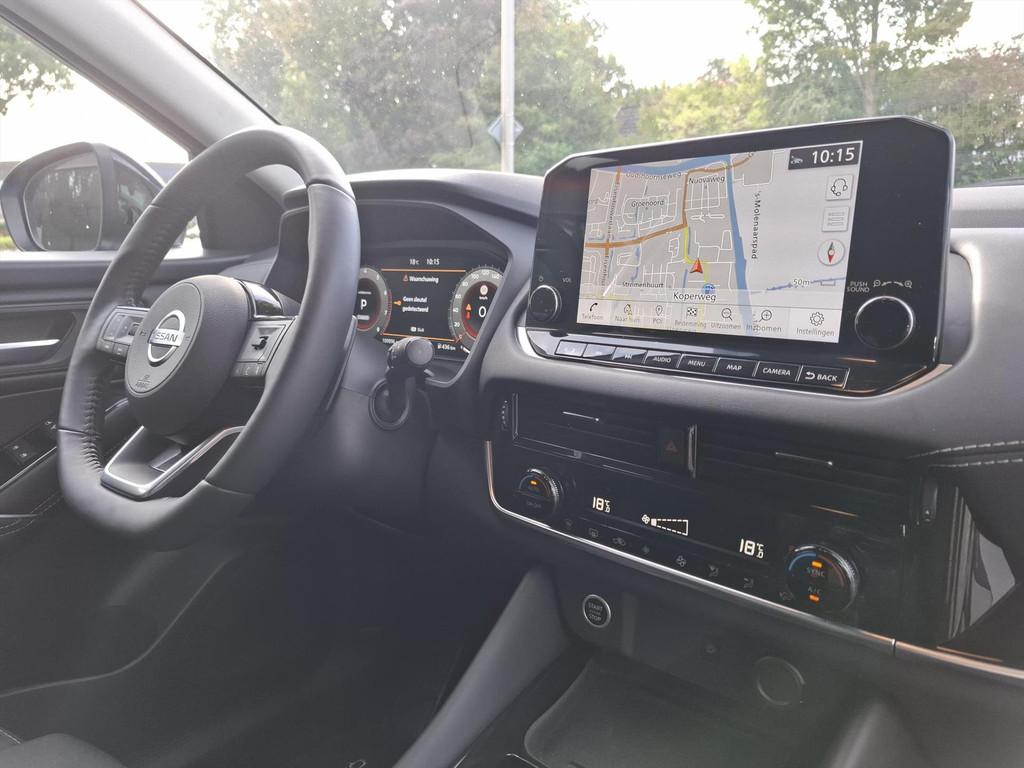 2x USB laadpoorten achter (1x type A, 1x type C), 2x USB laadpoorten voor, 3-punts veiligheidsgordels voor en achter, 12,3'' TFT digitaal instrumentenpaneel, 12V aansluitingen voor en in de bagageruimte, 18'' lichtmetalen velgen, A-IVC CRM toepassingen, over-the-air (OTA) updates, A-IVC Navigatie services, A-IVC Remote Control diensten en meldingen (3 jaar gratis), A-IVI NissanConnect Navigatiesysteem (9'' TFT touchscreen), ABS (Anti-blokkeersysteem), Achterbankleuning in delen neerklapbaar (60/40), Achteruitrijcamera met dynamische afstandsmarkering, Adaptive Front Lighting System (AFS), All season banden, Android Auto, Apple Car Play, Apple Carplay® & Android Auto® met kabel, Around View Monitor (AVM), Audiosysteem met Apple Carplay® & Android Auto®, USB-aansluiting, stuurwielbediening, 6 luidsprekers, Auto Speed Control Device (ASCD), Auto Speed Limit (ASL), Automatisch dimmende binnenspiegel, Automatisch in- / uitschakelende koplampen, Back-up Collission intervention (BCI), Bandenreparatieset, Bandenspanningscontrolesysteem (TPMS), Bekerhouder achter (2x), Bekerhouder voor (2x), Blind Junction View (BJV), Blind Spot Warning & Intervention (BSW + BSI), Bluetooth® (telefoon en audio), Buitenspiegelbehuizing en deurgrepen in carrosseriekleur, Buitenspiegels elektrisch inklapbaar, Buitenspiegels elektrisch verstelbaar en verwarmbaar, Centrale deurvergrendeling met afstandsbediening, Chromen raamomlijsting, Chromen sierstrip achterbumper, Chromen strip achterklep, Cross Traffic Alert (CTA), Dak in contrastkleur (2 Tone), Dakrails, Digitale radio-ontvangst (DAB+), Draadloos Apple Carplay®, Draadloze smartphone oplader (15w), Drive modus functie (3 modi), Driver Attention Alert (DAA), EBD (Elektronische Remkrachtverdeler), ESP (Electronic Stability Program), Elektrische lendensteunverstelling bestuurdersstoel (2-way), Elektronische handrem, Elektronische stuurbekrachtiging, Emergency Stop Signal (Autohazard), Extra getint glas (achterste zijruiten en achterruit), Flexibele bagageruimte indeling (2 scheidingsplanken), Frontal Collision Warning (FCW), Gescheiden automatische airconditioning (2 zones), Gordelspanners en melding voor veiligheidsgordels, Haaienvin-antenne, Haken in de bagageruimte (4 op de bodem, 2 aan de zijkanten), Head-up display (10.8'' projectie), High Beam Assist (HBA), Hill Start Assist (HSA), Hill Start Assist + AutoHold functie, Hoedenplank, I-Key (starten met startknop en easy access), ISOFIX-bevestigingspunten achter (2x), In hoogte en diepte verstelbaar stuurwiel, In hoogte verstelbare bestuurdersstoel (manueel), In hoogte verstelbare passagiersstoel, Intelligent Cruise Control (ICC), Interieur ambianceverlichting (middenconsole), Interieurlijsten type A, LED achterlichten, LED achteruitrijlicht en knipperlicht achter, LED matrix koplampen met LED dagrijverlichting en geintegreerd knipperlicht, Lane Departure Warning & Prevention (LDW + LDP), Lane Side Support (LSS), Lichtsensor, Limited Slip Differential (LSD), Metallic lak, Middenarmsteun achter, Middenarmsteun vóór met opbergvak, Middenconsole en armsteunen in PVC, Moving Object Detection (MOD), NBAS (Nissan Brake Assist System), Panoramisch glazen dak met elektrisch bedienbare zonwering, Parkeersensoren voor- en achterzijde, Portiergrepen met ontgrendelknop (Easy Access), Predictive Forward Collision Warning (PFCW), Predictive Front Emergency Braking met voetgangers- en fietsersherkenning (P-FEB), ProPILOT, Regensensor, START/STOP-systeem, Schakelflippers achter stuurwiel, Stoffen stoelbekleding (zwart/grijs), Stuurwielbediening, Stuurwiel en versnellingspookknop met leder bekleed, Tankdeksel zonder dop, Traffic Sign Recognition (TSR), Vehicle Dynamic Control (VDC), Verlichting aan beide kanten in de bagageruimte, Volledig automatische ruiten voor en achter met i-Key link, Voor-, zij- en gordijnairbags (uitschakelbare passagiersairbag), Wi-Fi hotspot (betaalde dienst), Zachte kniesteun (PVC), Zonnebrillenhouder in hemelbekleding, Zonnekleppen met make-up spiegel, verlicht, eCall